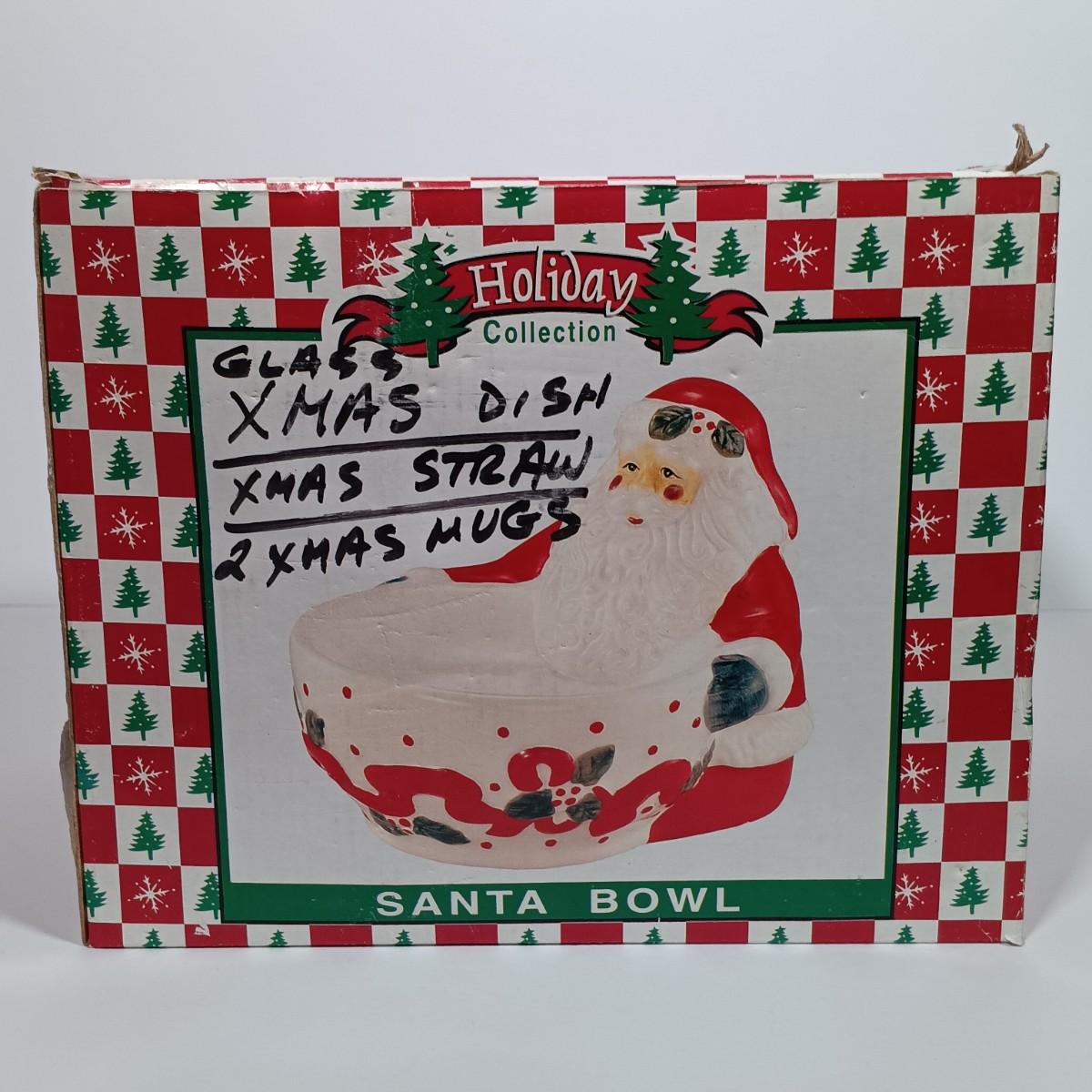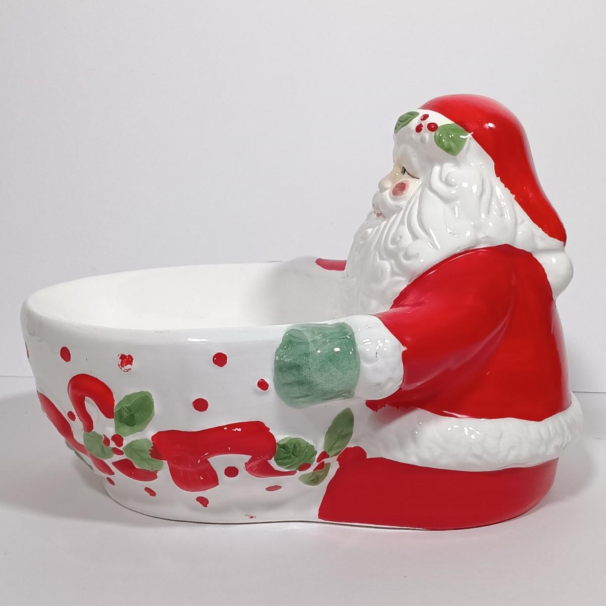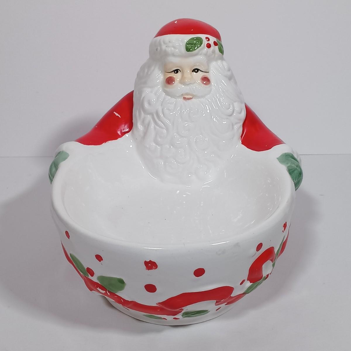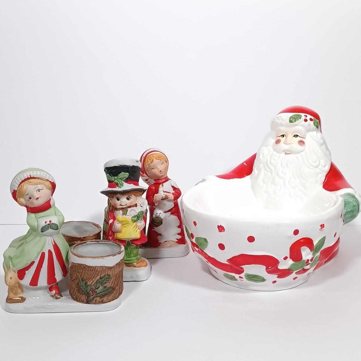 LOT 131L: Vintage World Bazaar Ceramic Santa Bowl with (3) Jasco Candle Holders