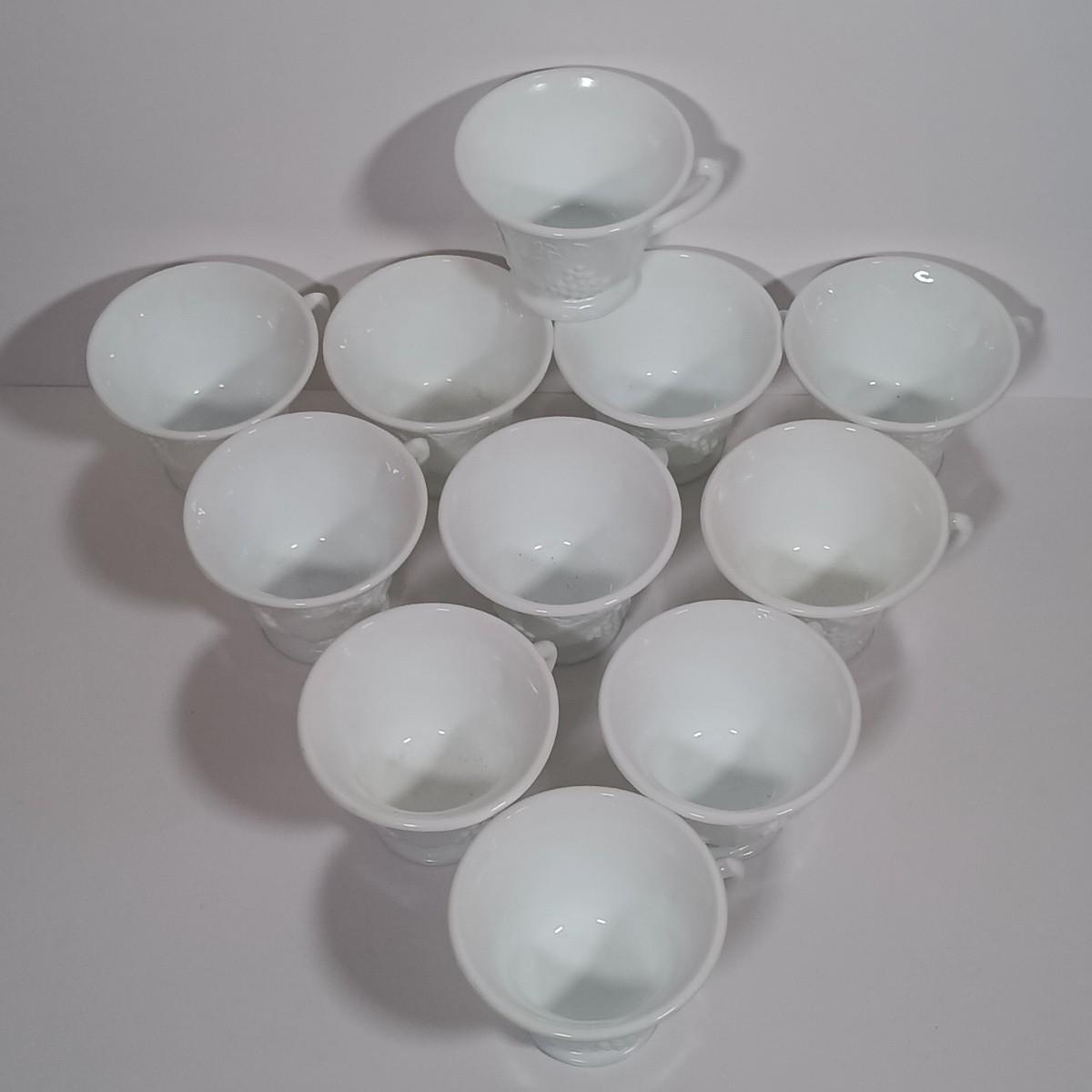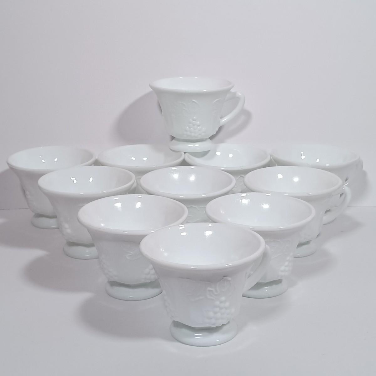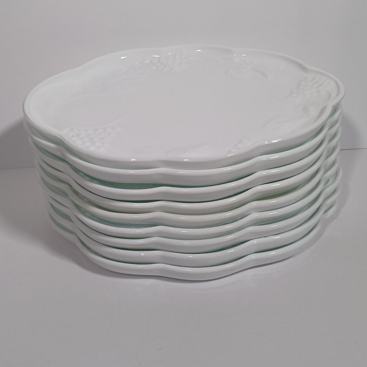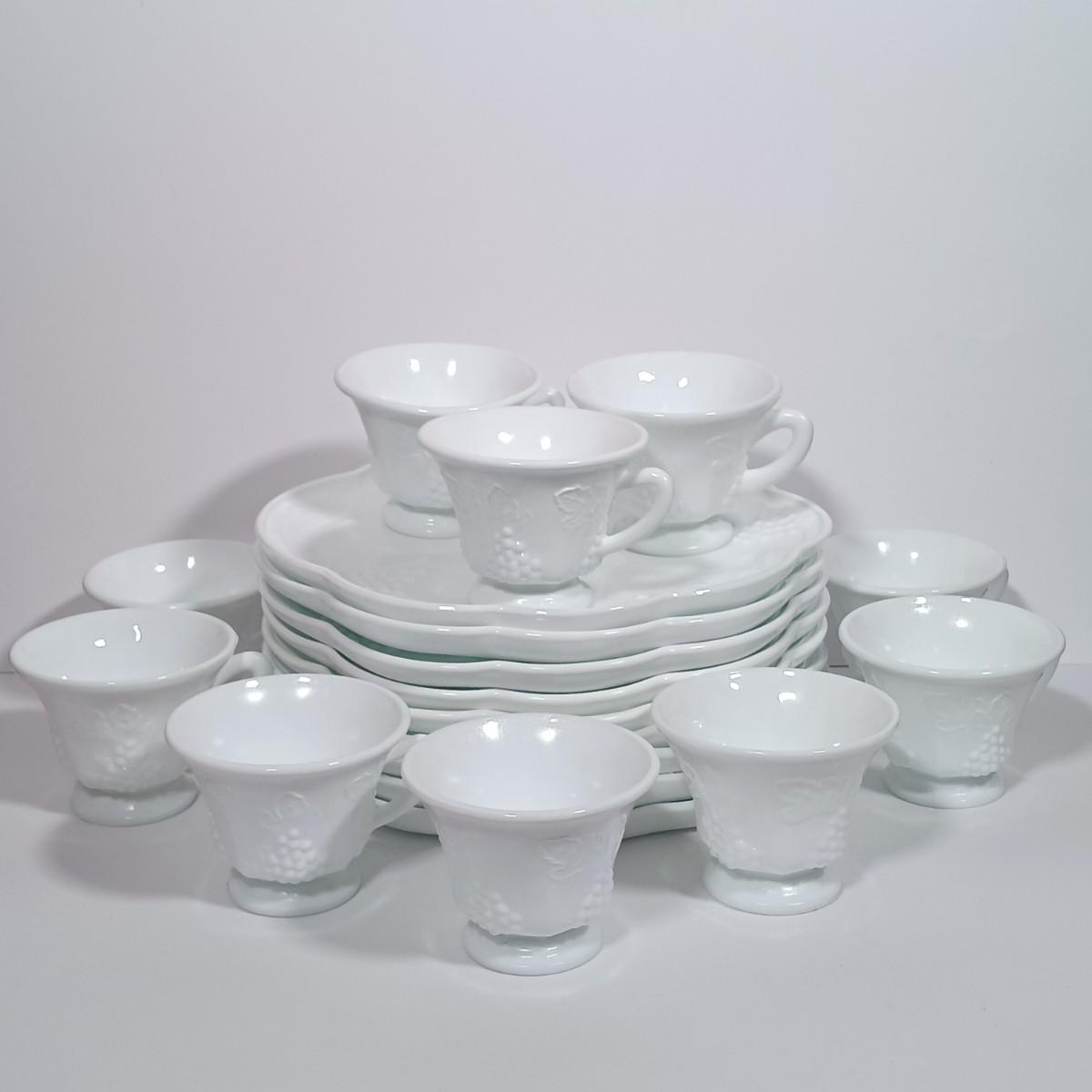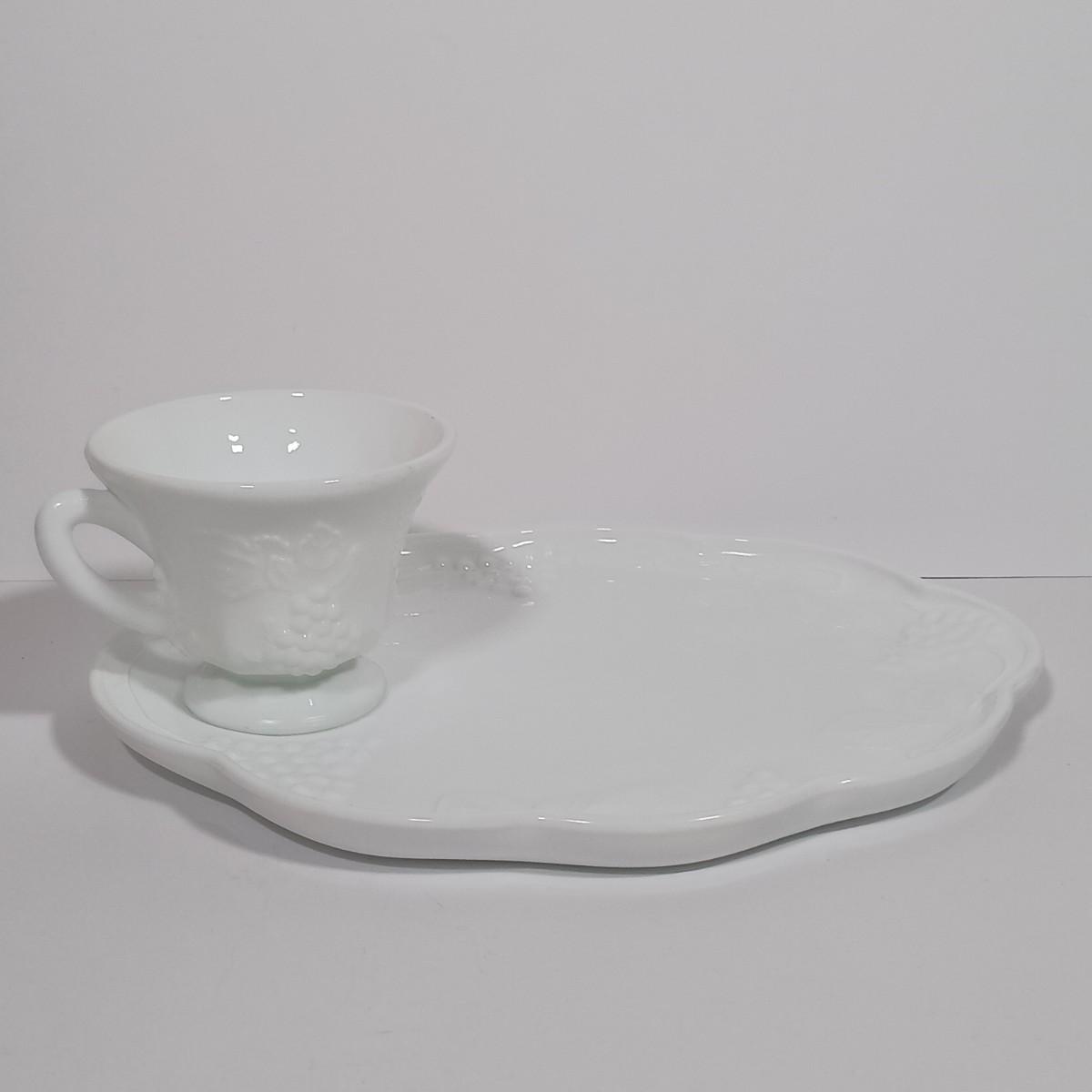 LOT 134L: MCM Indiana Colony Milk Glass Grape Patterned Snack / Luncheon Sets