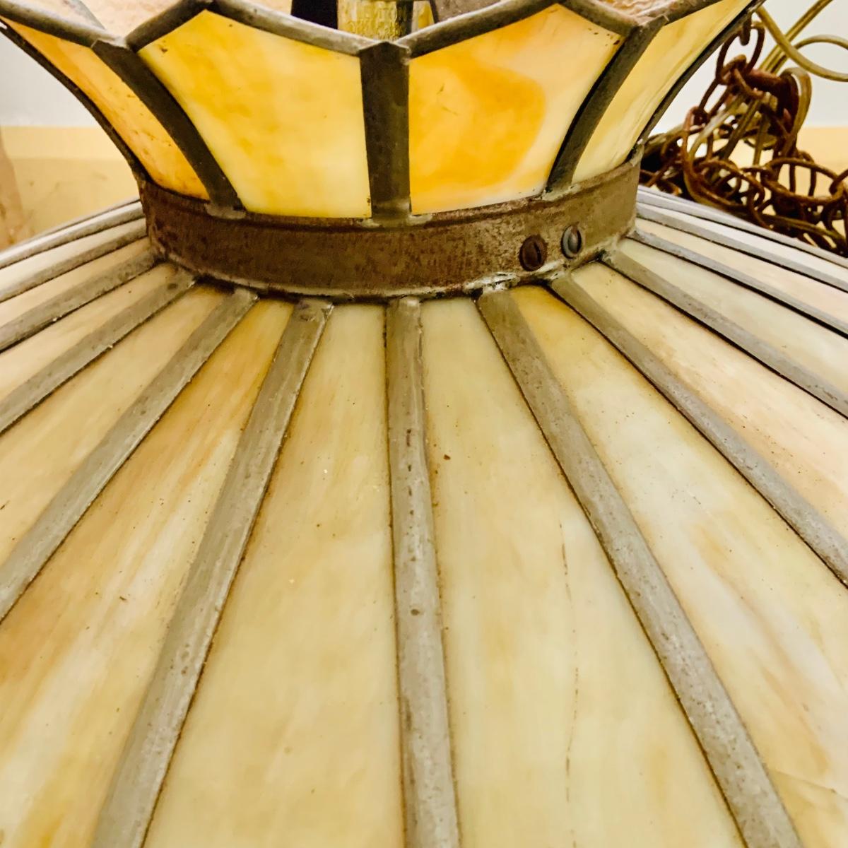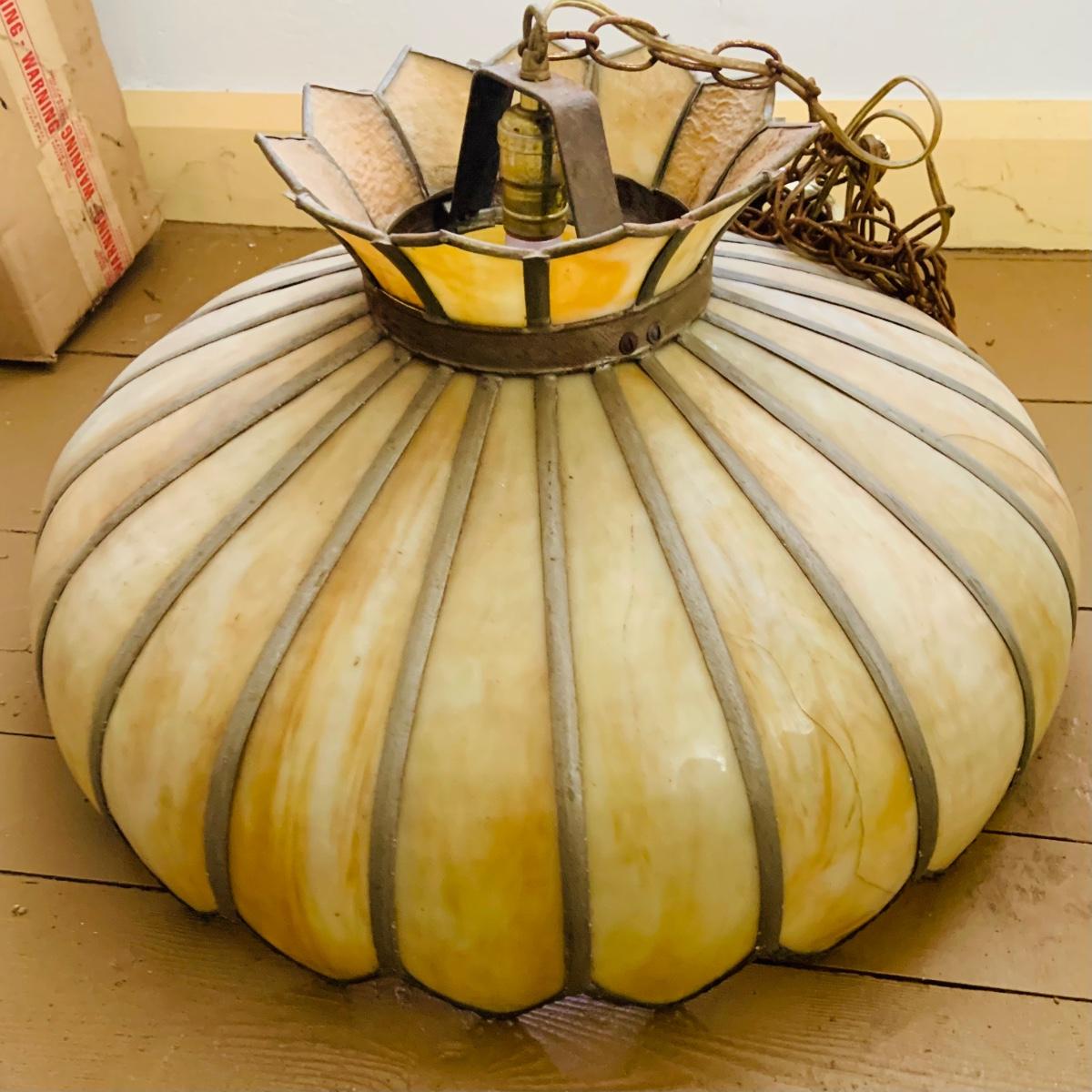 LOT 529: Vintage Slage Glass Hanging Lamp
