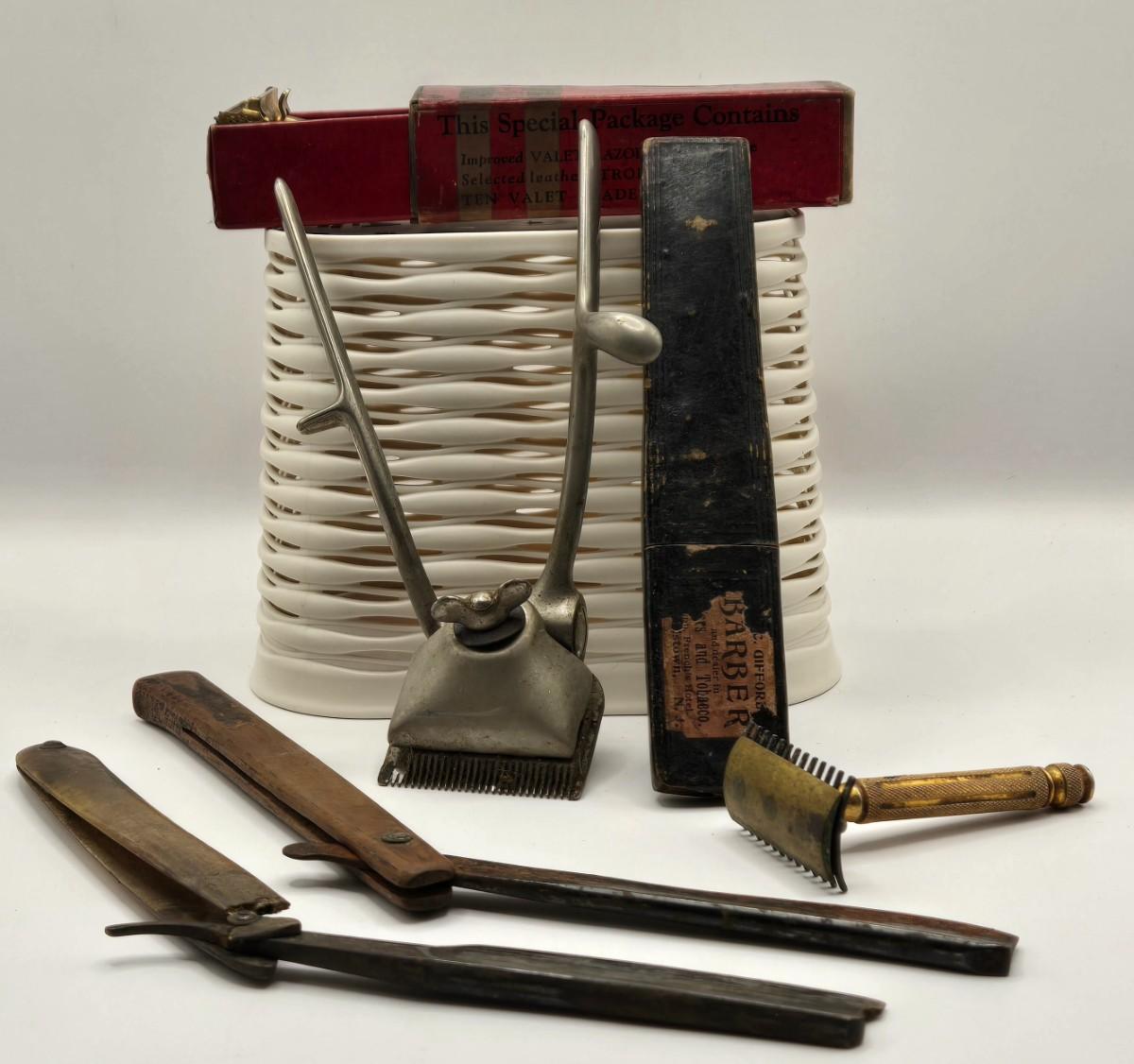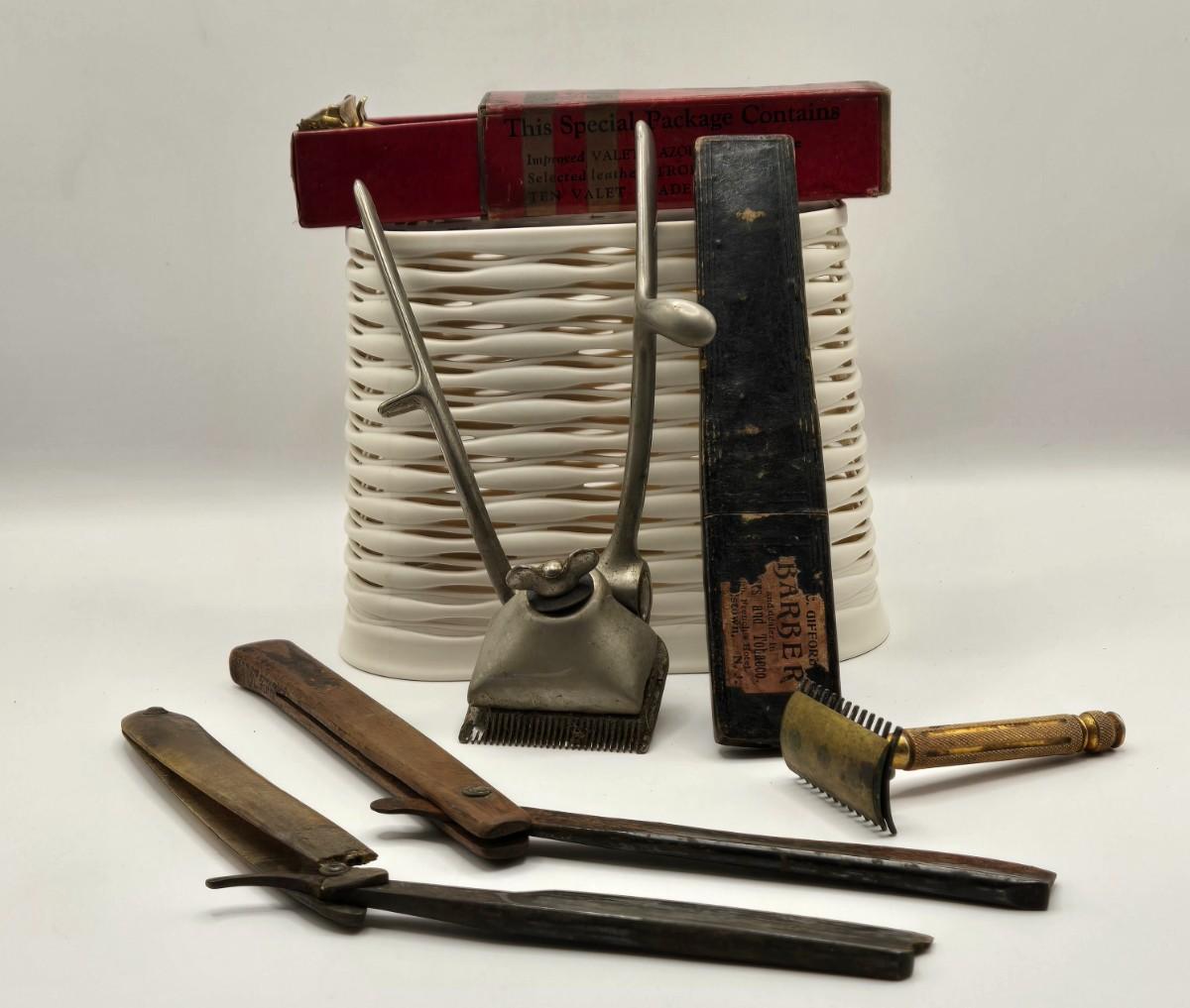 LOT 540: Shave & A Haircut, 2 Bits/ Antique Straight Razors & Clippers