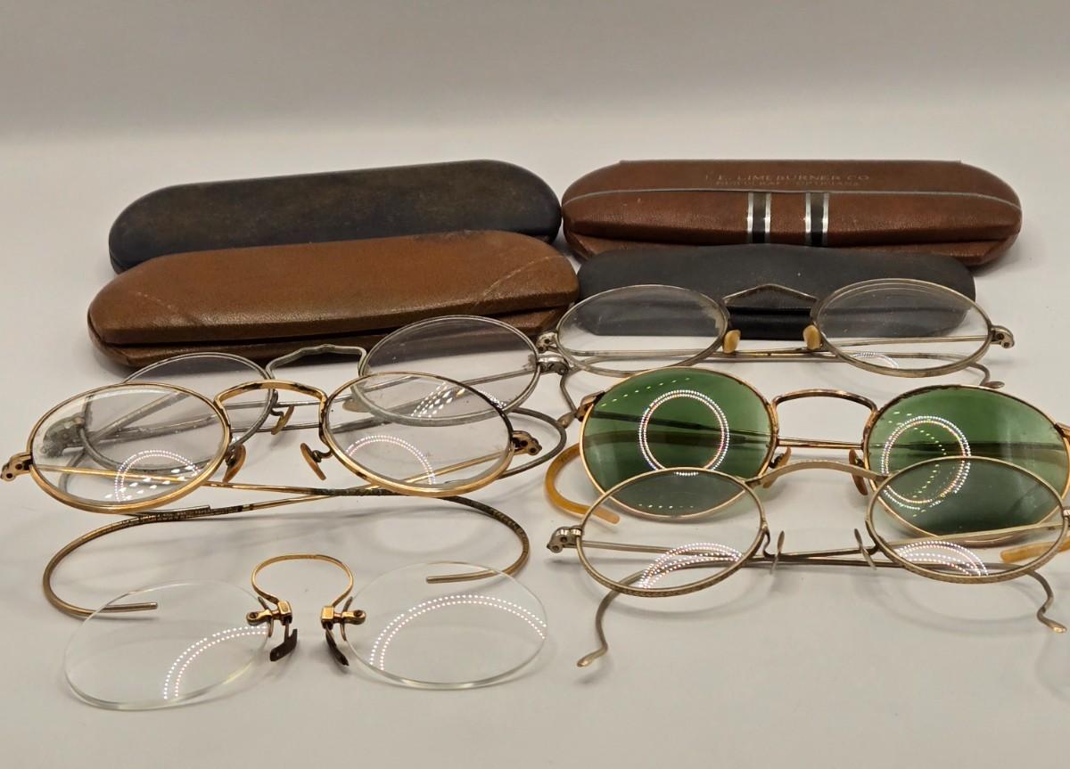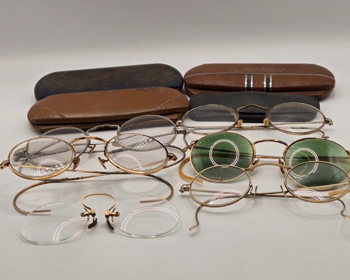 LOT 545: Antique Rimless Eyeglasses, Pince-Nez, & Cases