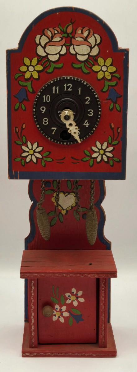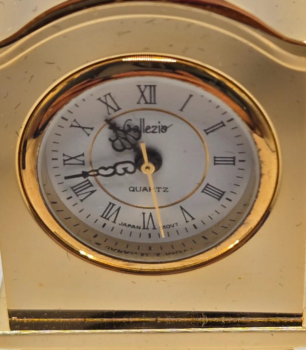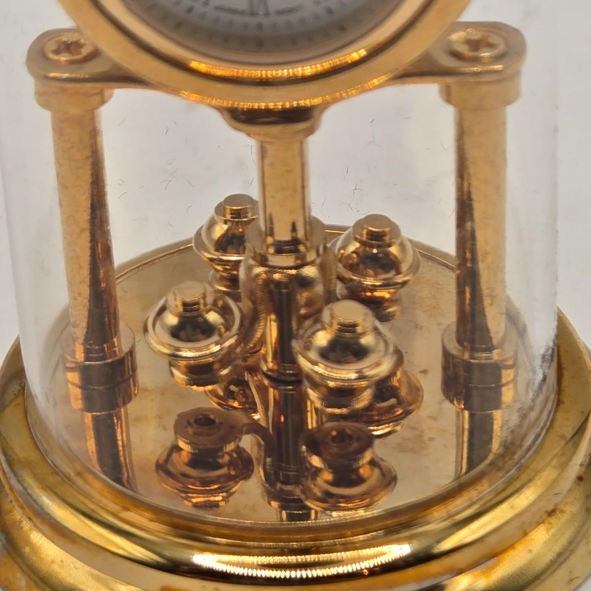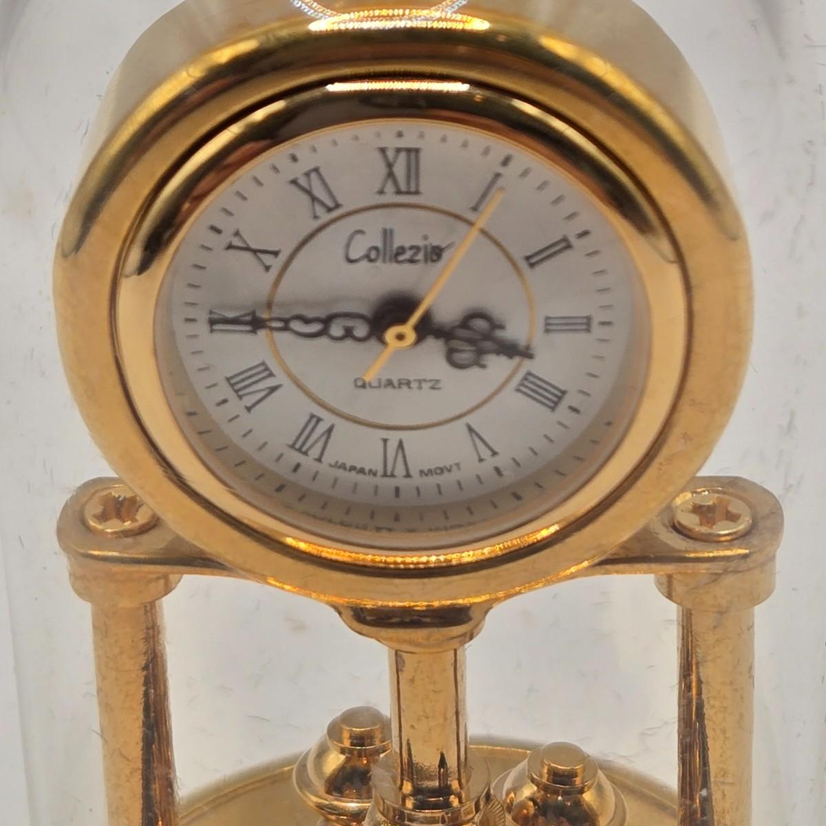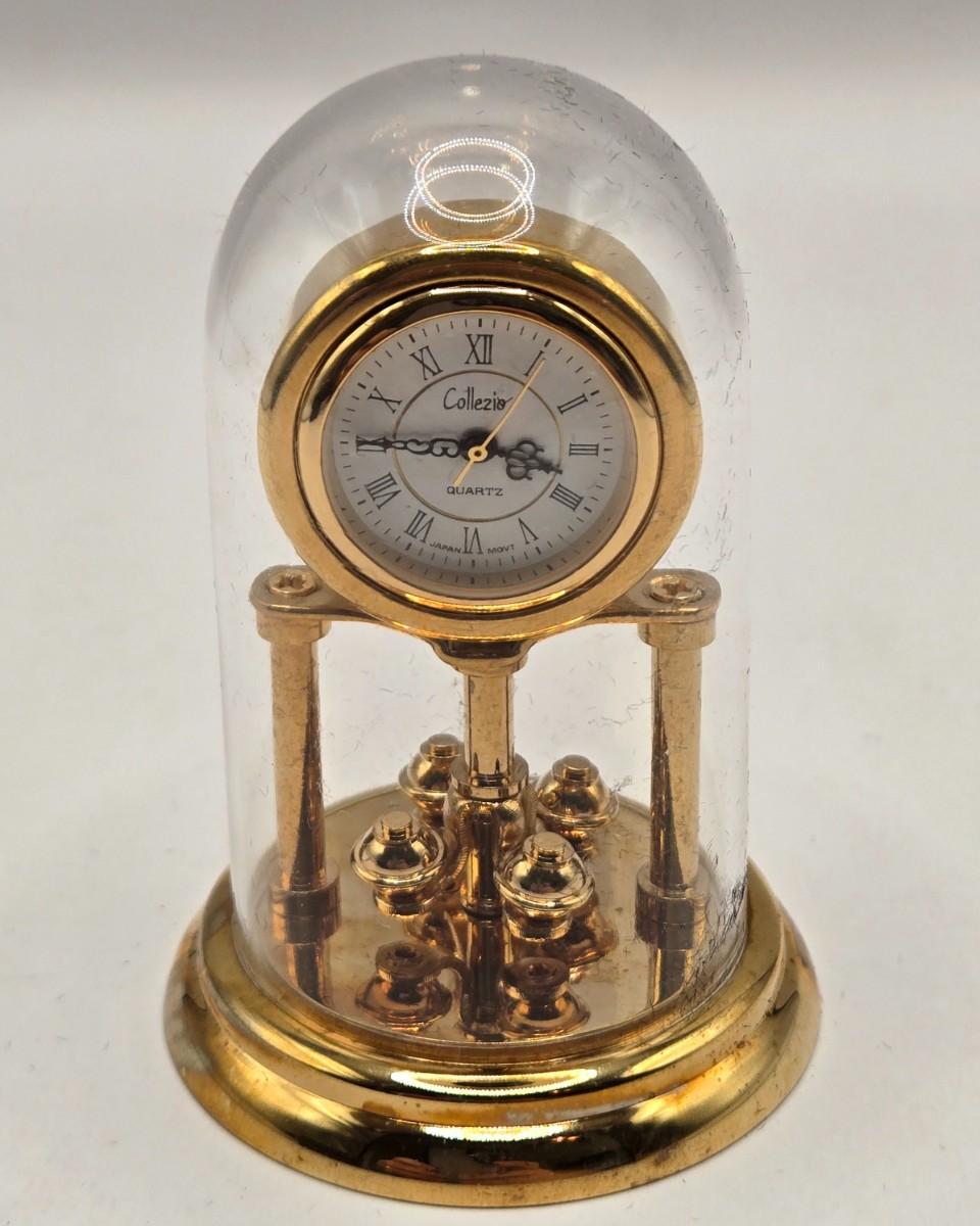 LOT 546: Vintage German Wooden Miniature Grandfather Clock, Miniature Gold Tone Grandfather Clock, & Miniature Gold Tone Mantle Clock