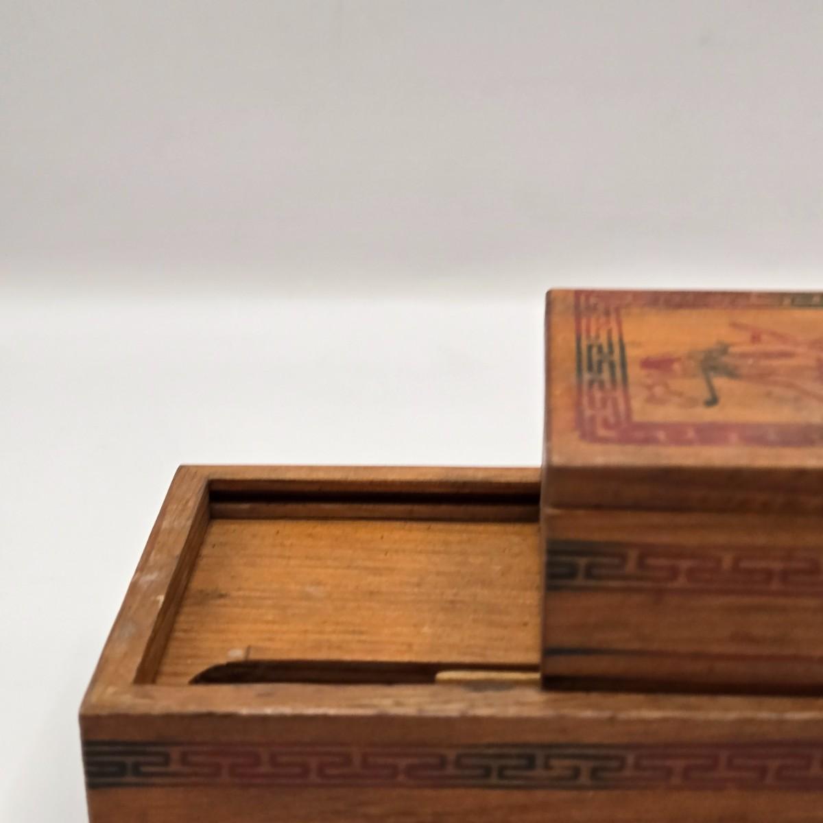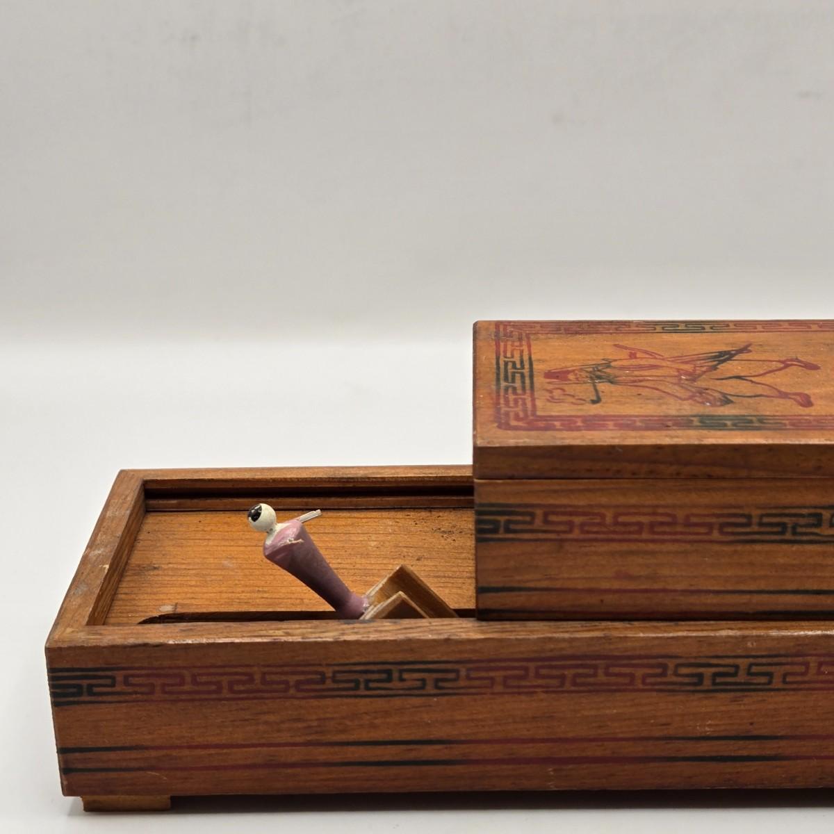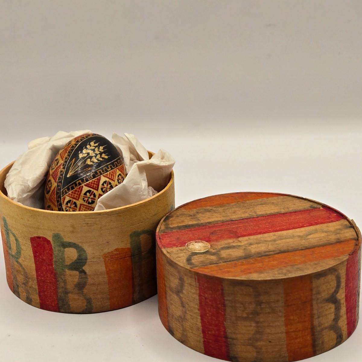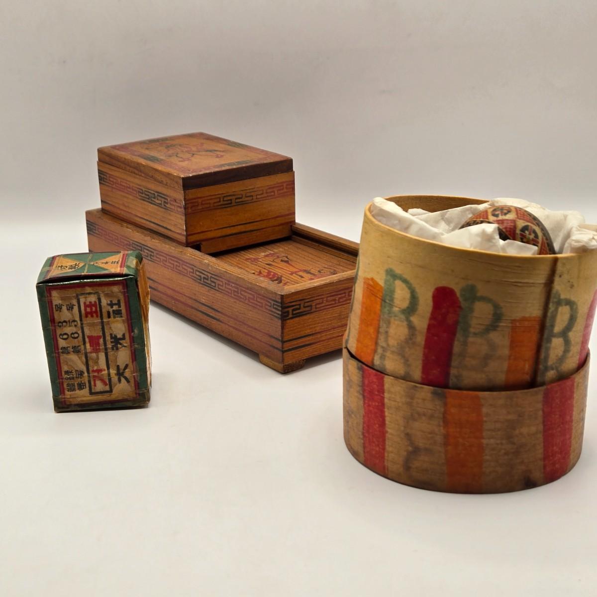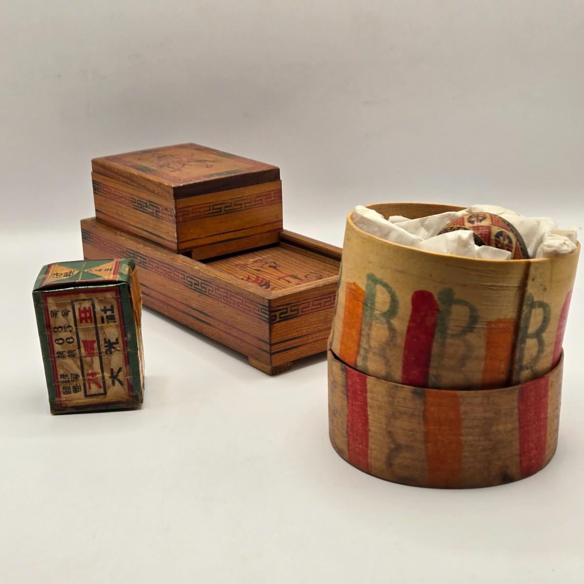 LOT 547: Vintage Mechanical Japanese Wooden Cigarette Box, Bent Wood Box, Appears to Be Hand Made, Hand Decorated Easter Egg, & Small Japanese Box, Possibly a Medicine Box