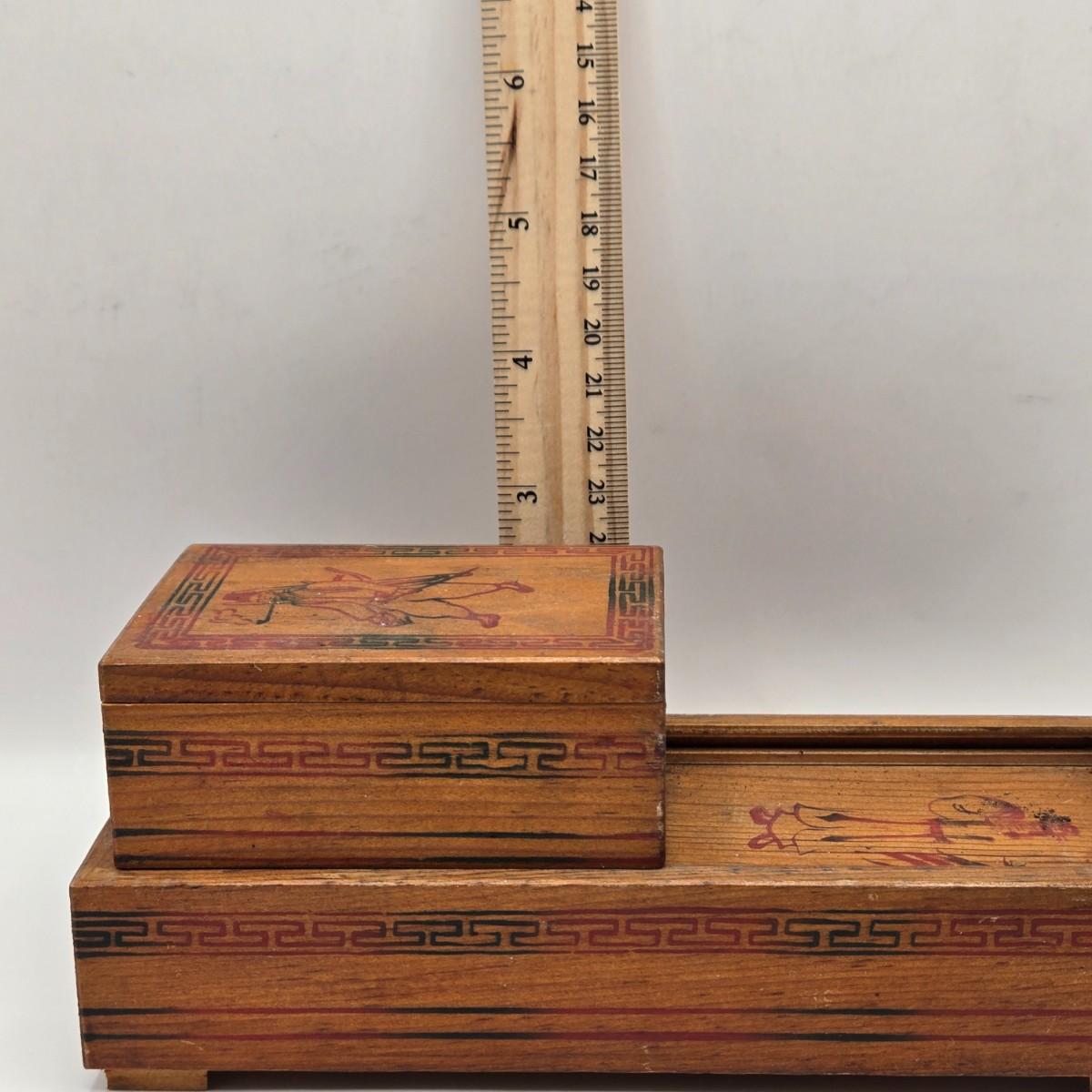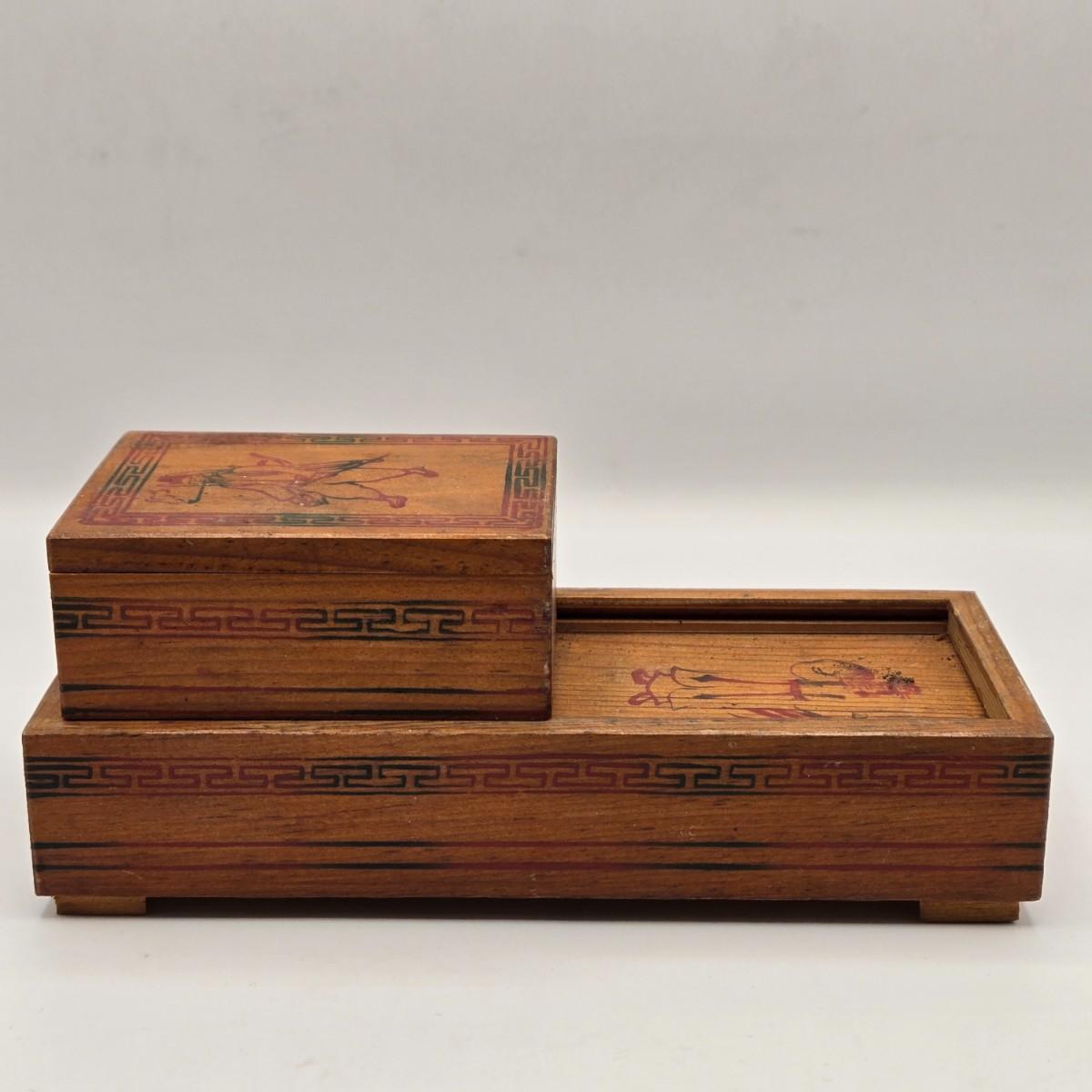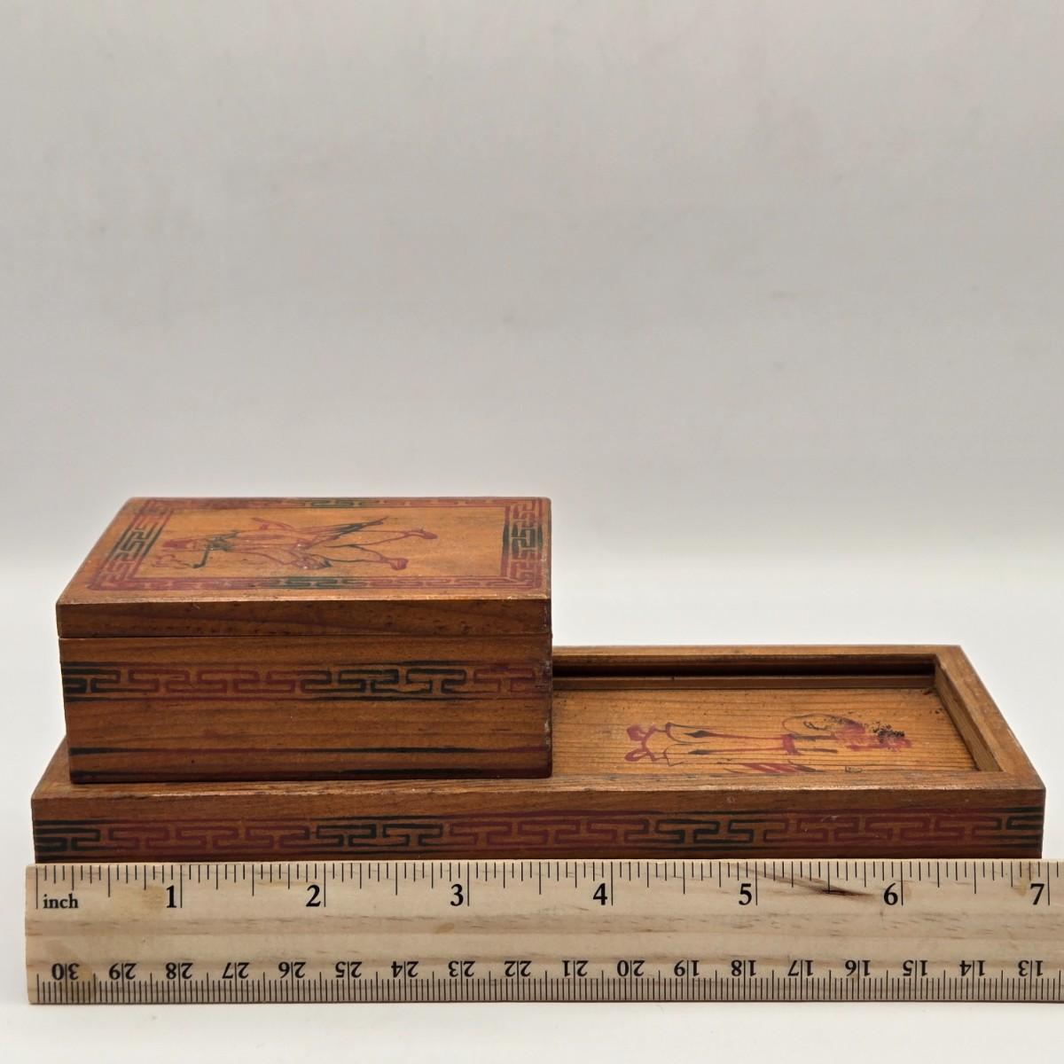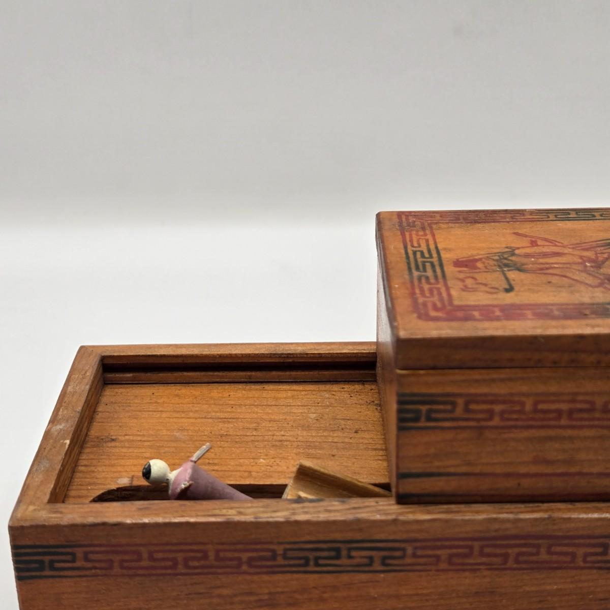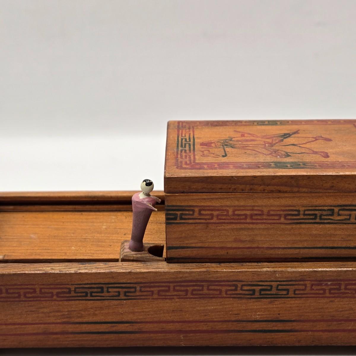LOT 547: Vintage Mechanical Japanese Wooden Cigarette Box, Bent Wood Box, Appears to Be Hand Made, Hand Decorated Easter Egg, & Small Japanese Box, Possibly a Medicine Box
