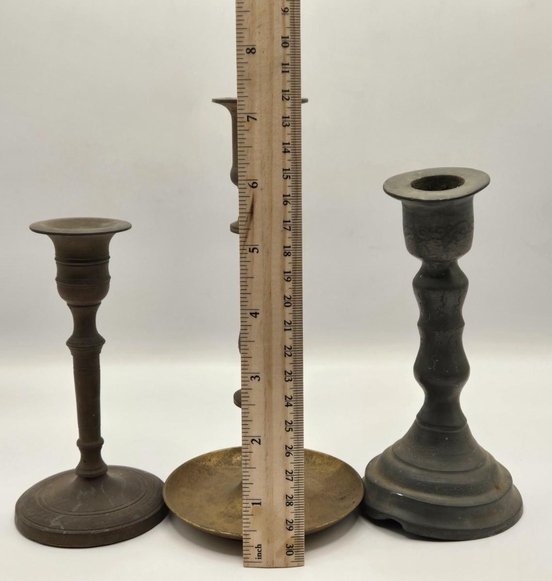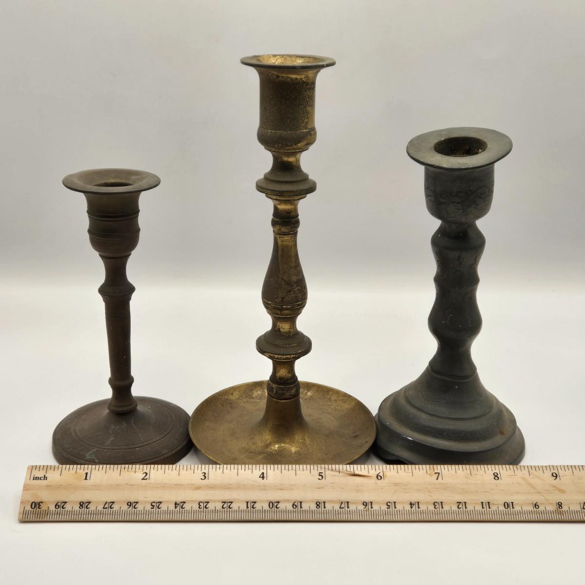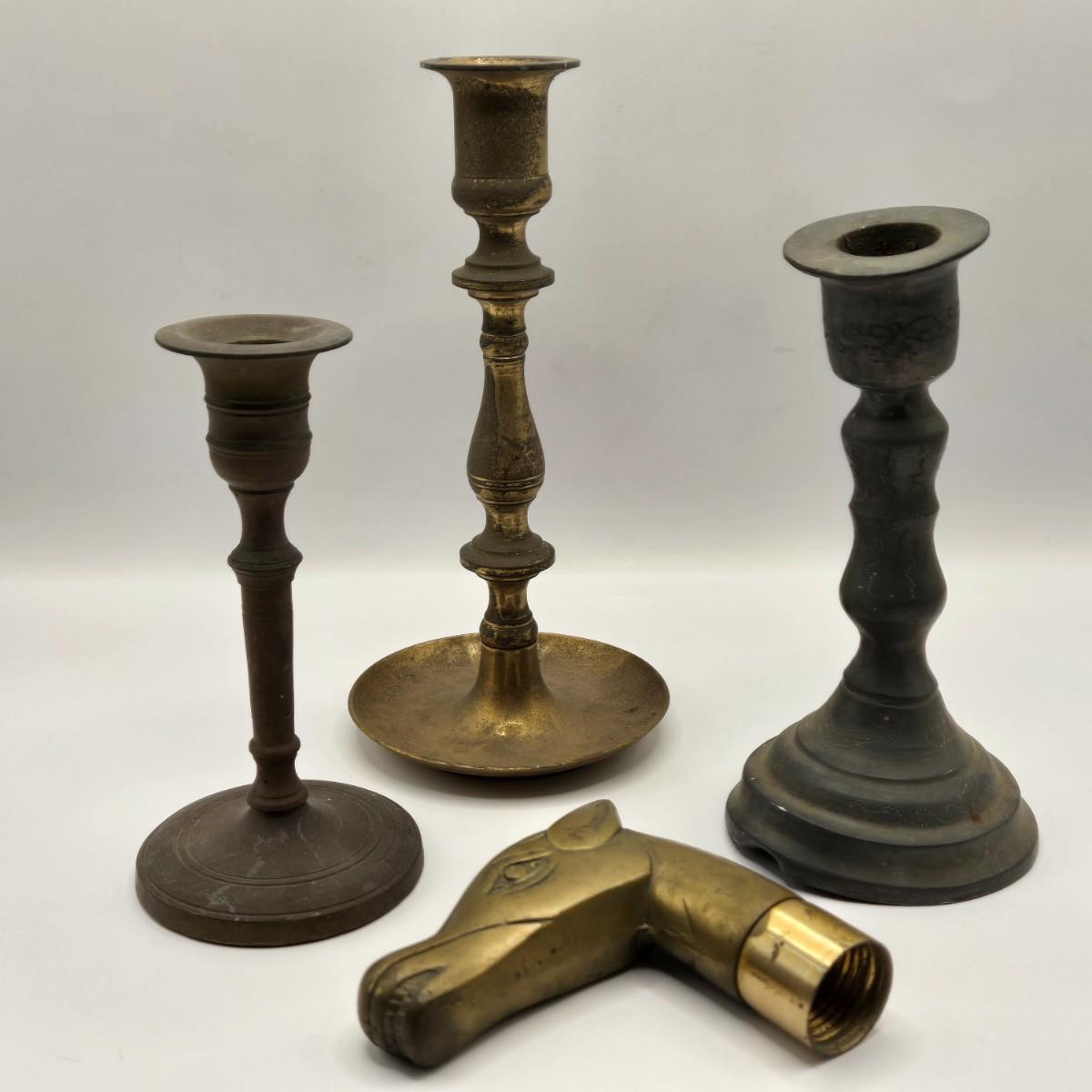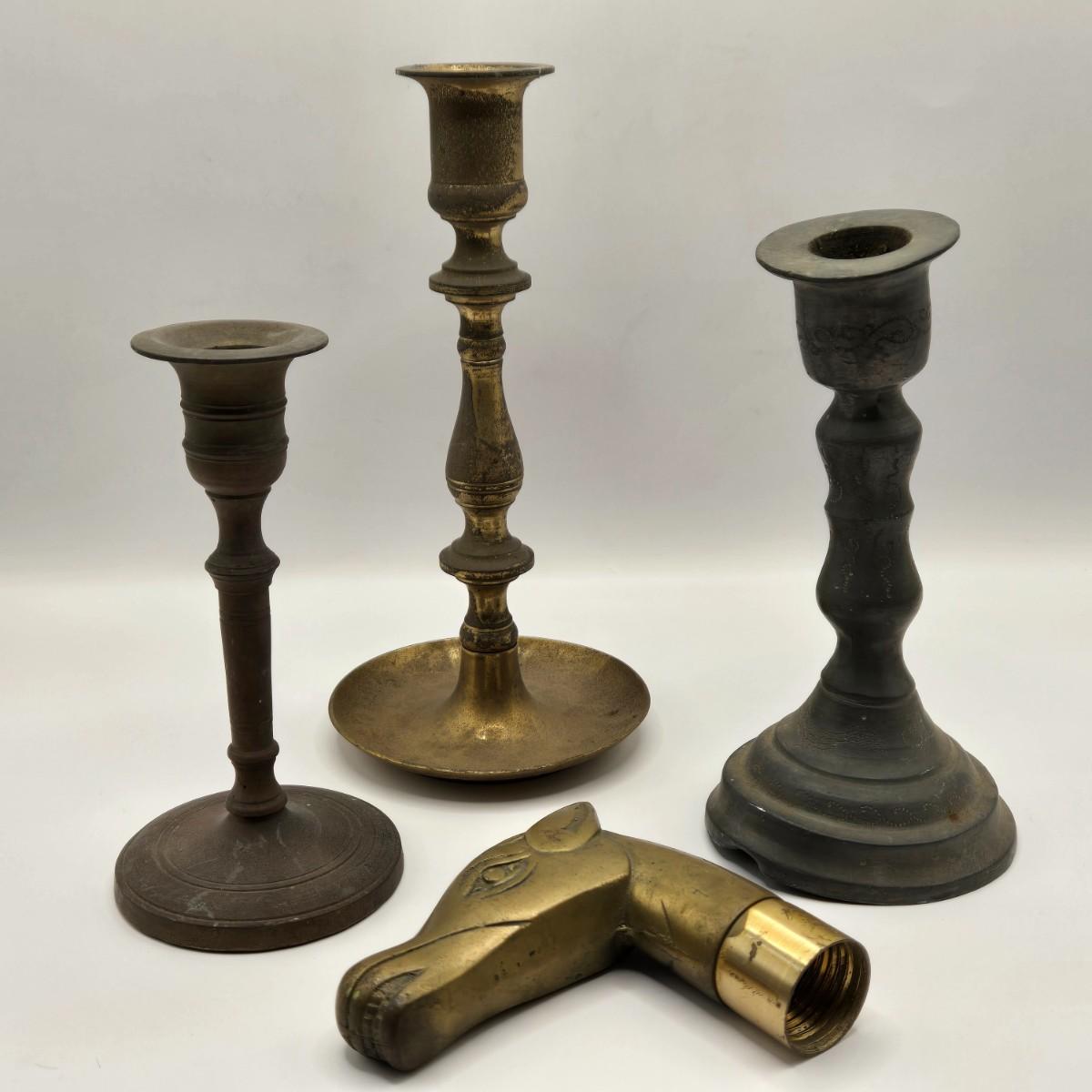 LOT 550: Metal Candle Stick Holders & Cane Topper