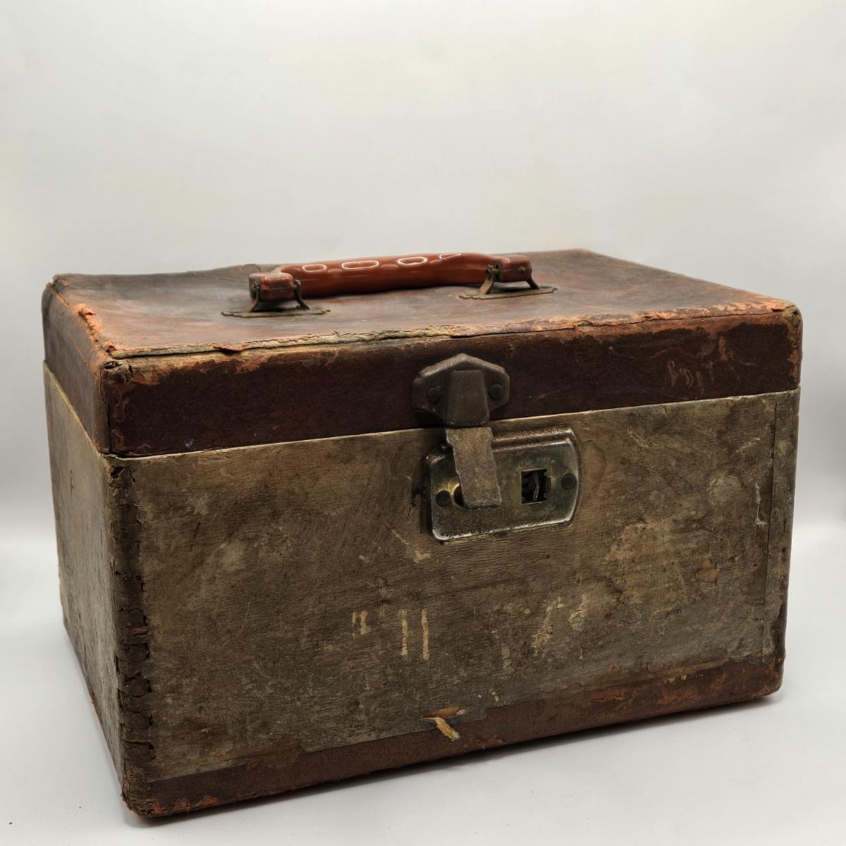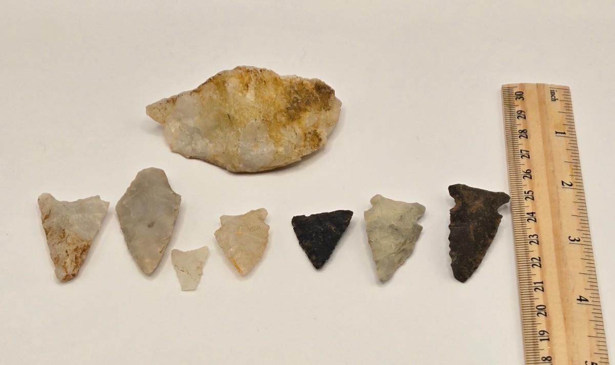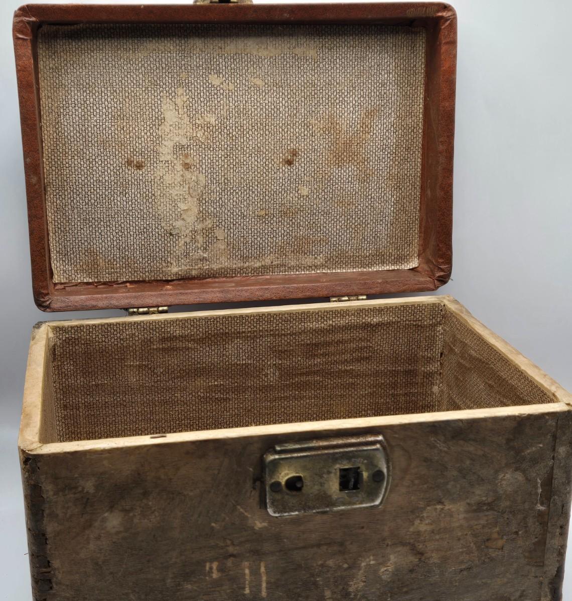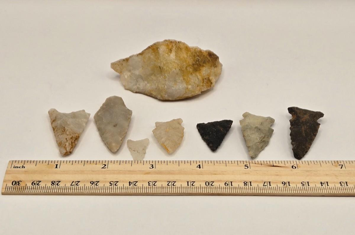 LOT 551: United Lead Co. Wooden Box, Small Train Case, Glass Jar, Victorian Pencil Box, Beaded American Indian Band, With Box of Extra Beads, Carved arrow Shaped Rocks, Neckerchief Slides, & More