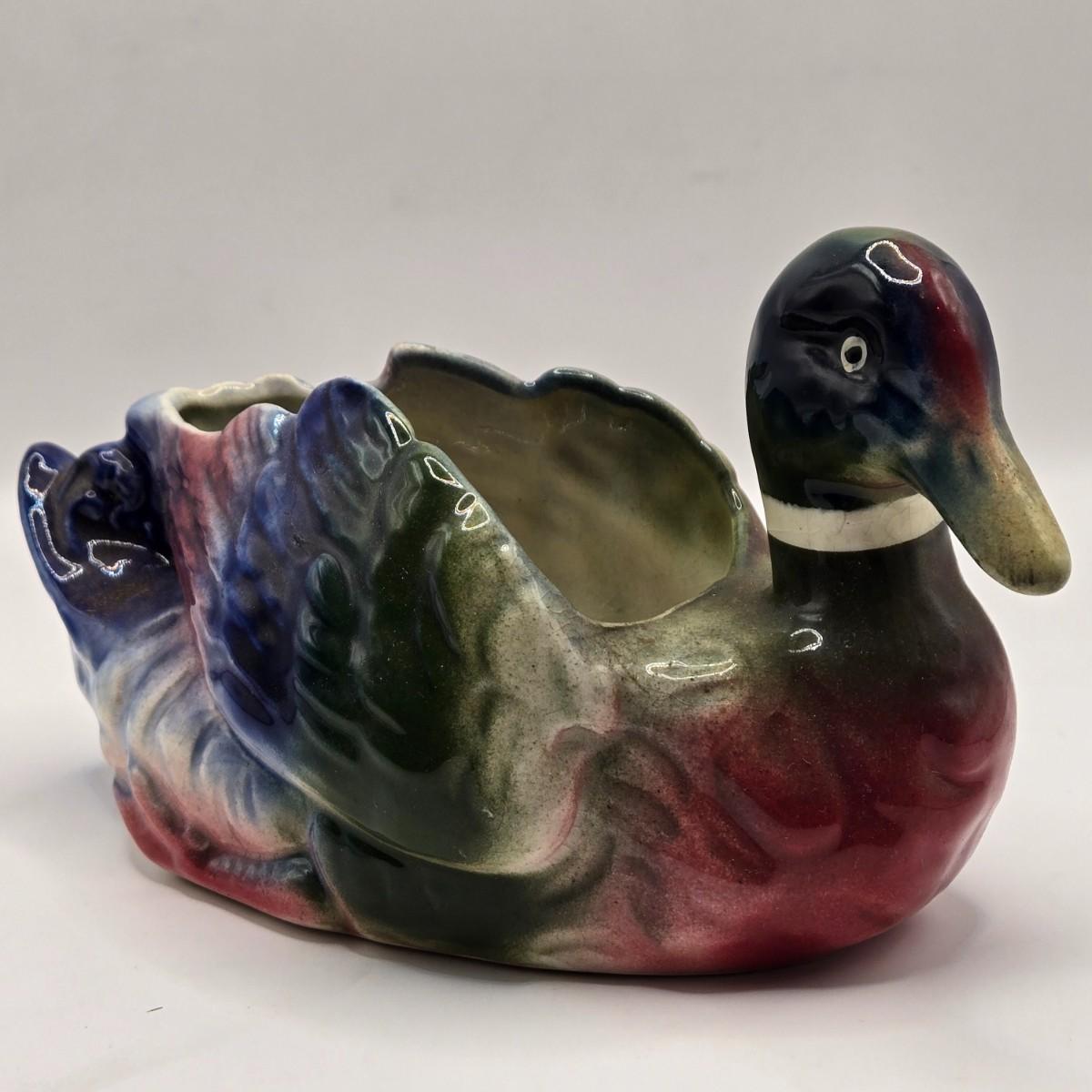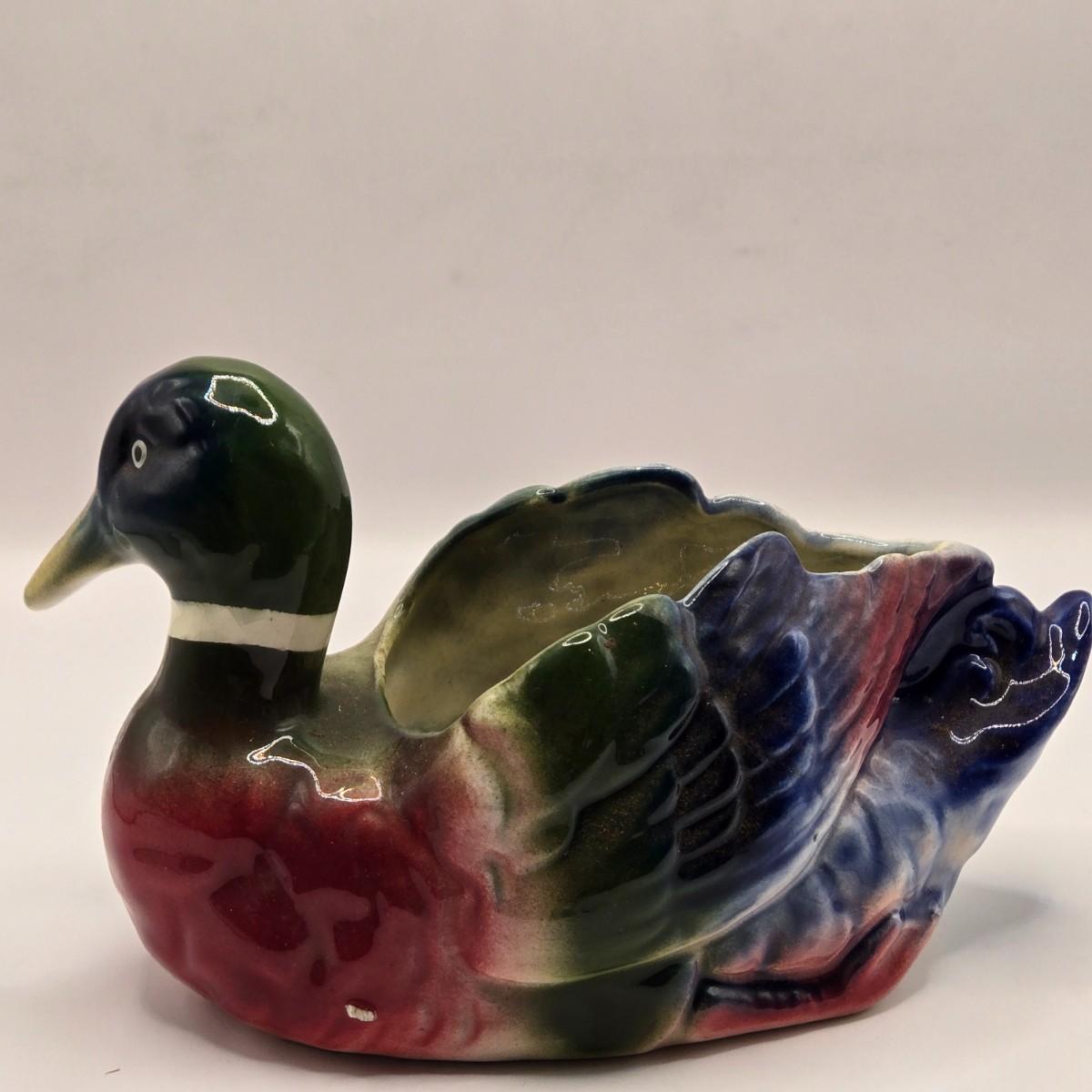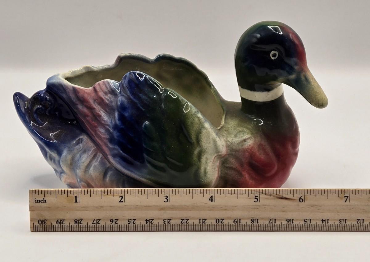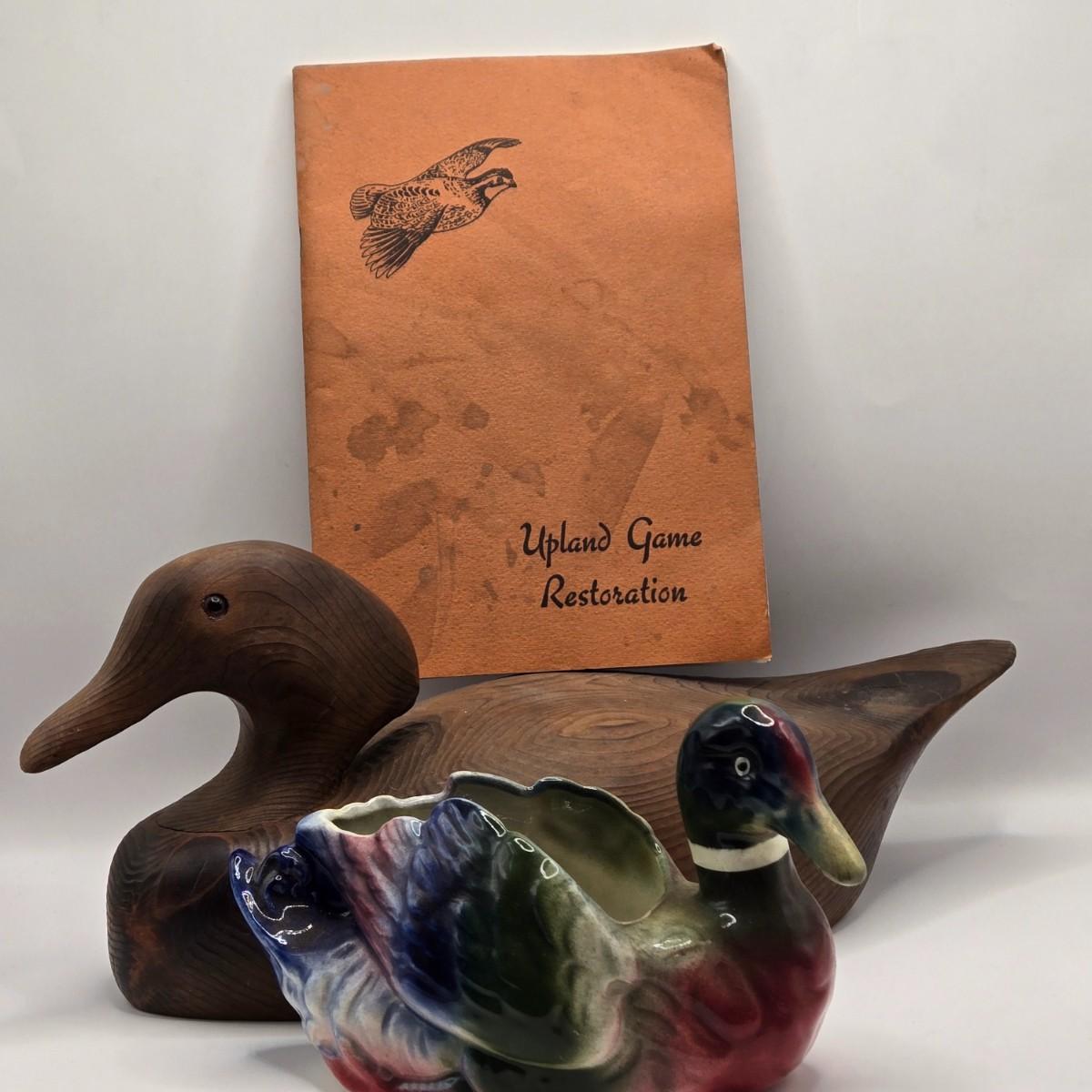LOT 552: Carved Wooden Duck, Duck Planter, & Upland Game Restoration Book