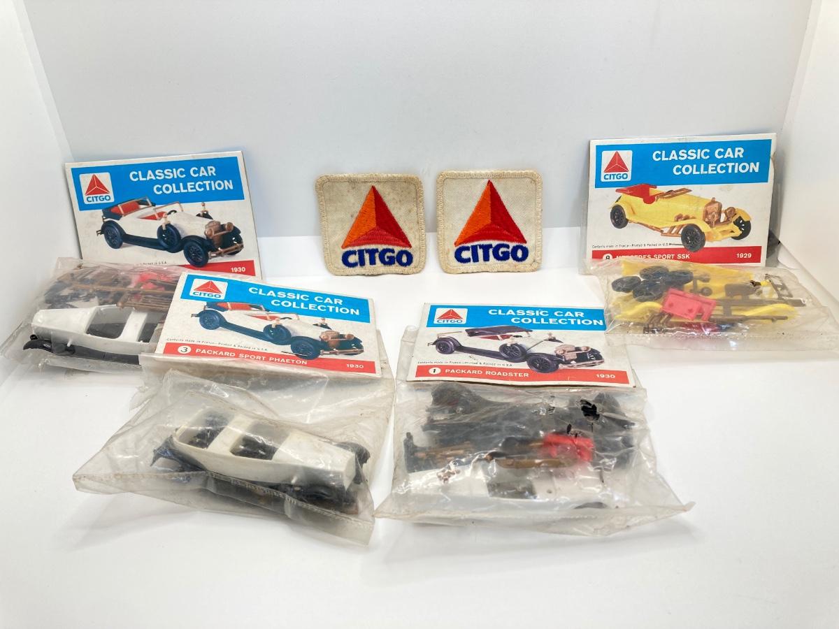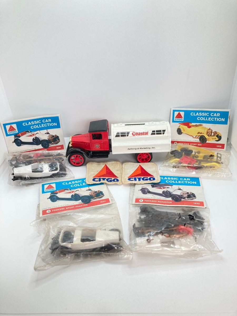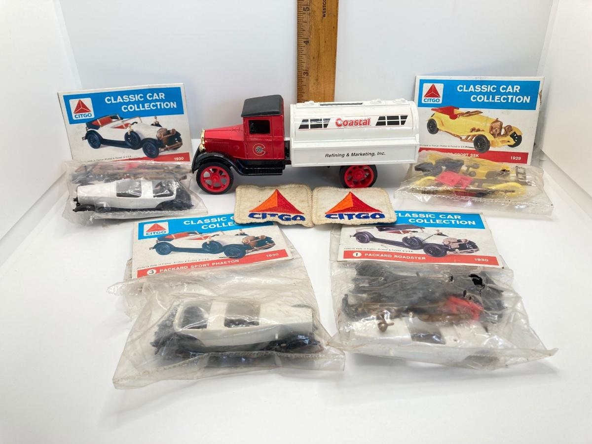 LOT 557: Coastal Ertl Die Cast Coin Bank, Citgo Patches and Vintage Classic Car Collection Models