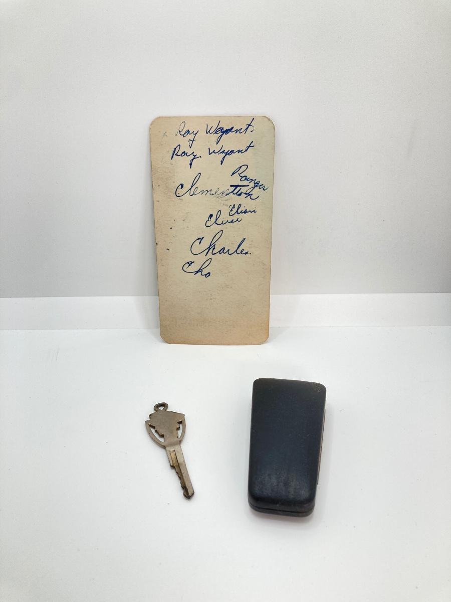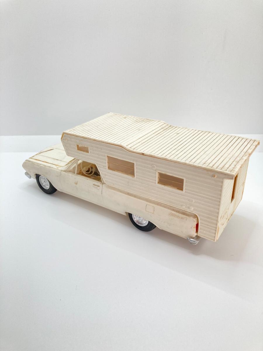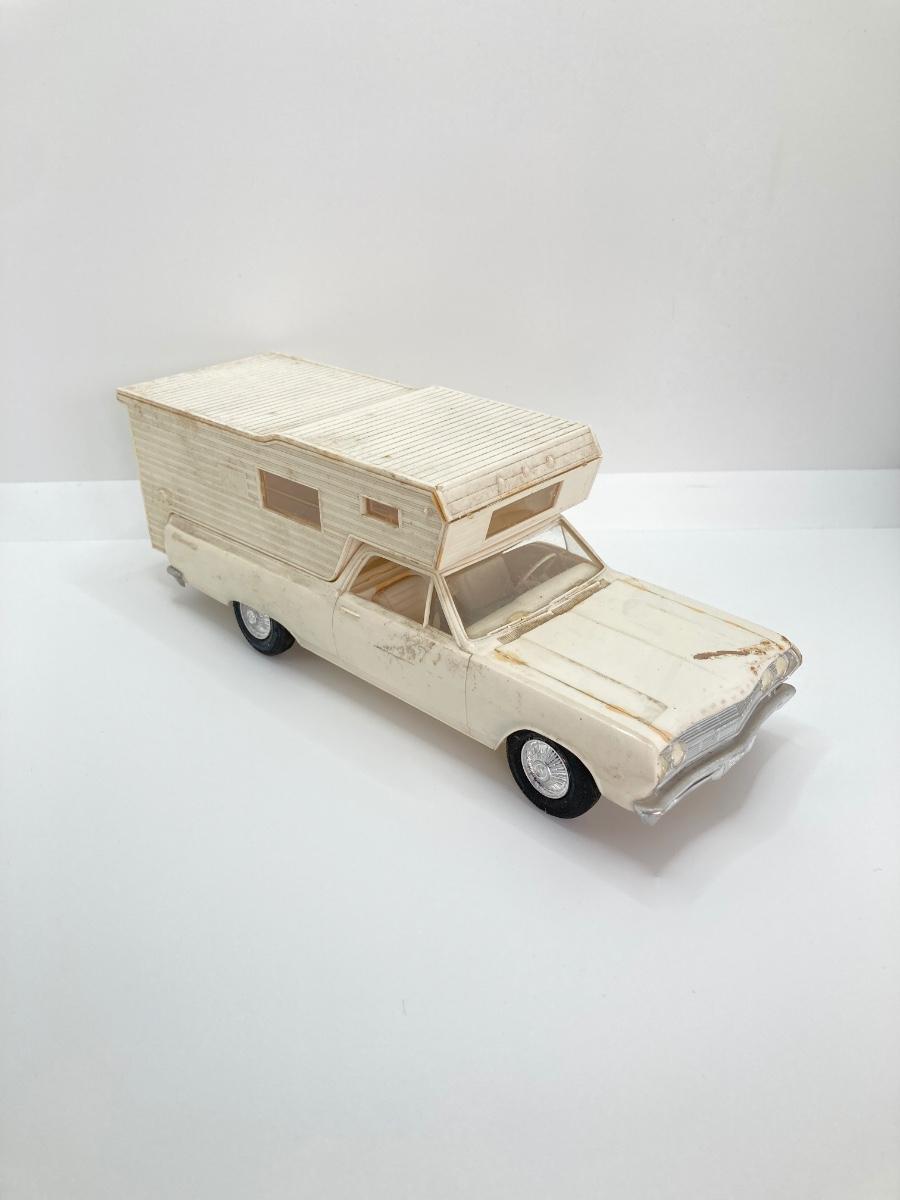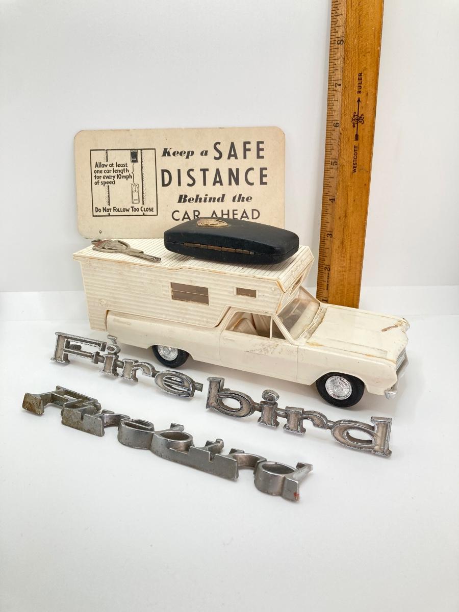 LOT 560: Vintage El Camino Camper Car, Metal Firebird Car Badge / Emblem, Mercury Key with Key Holder and More