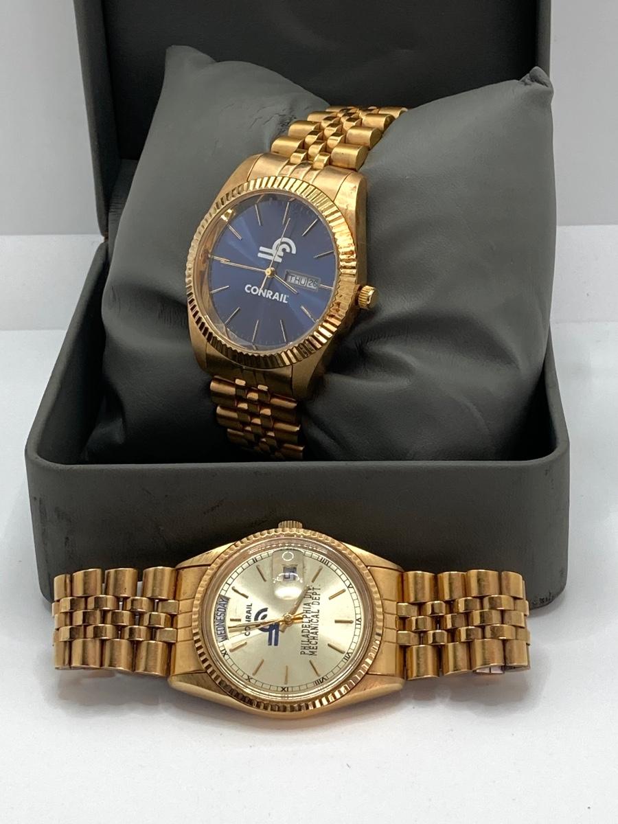 LOT 565: Pair of Vintage Conrail Calendar Watches - Helbros and More