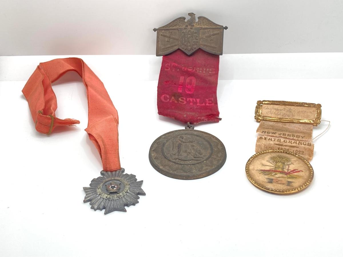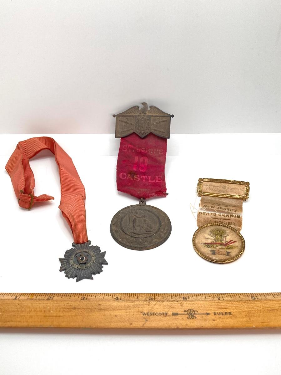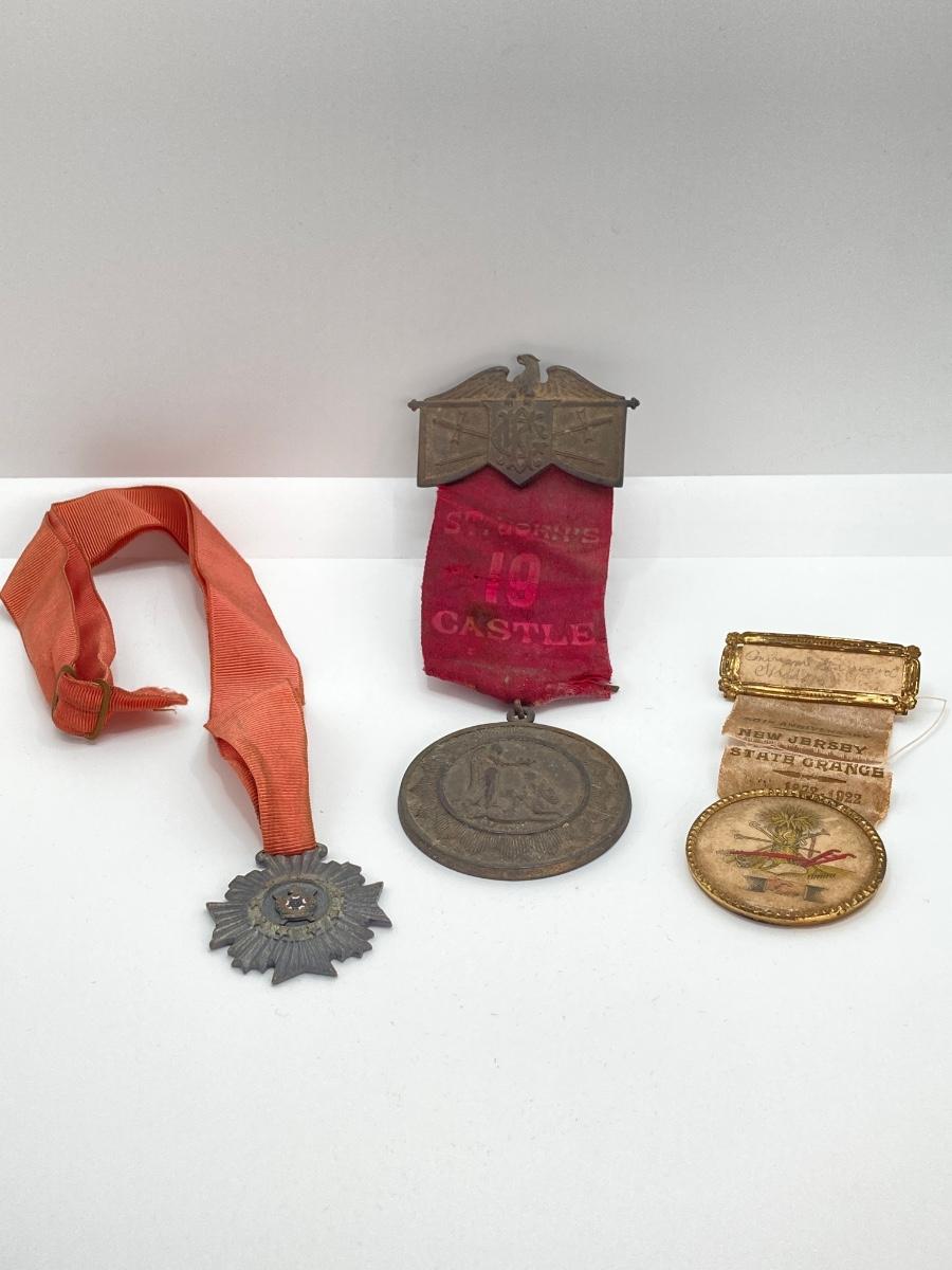 LOT 570: Antique Medals - St. John's 19 Castle, DeMolay Knight's and New Jersey State Grange