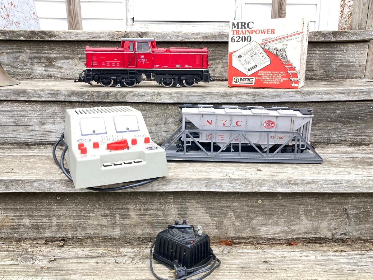 LOT 583: Vintage Trains and Accessories - Jumbo LGB 50101 Transformer, Locomotive, MRC Trainpower 6200 and More