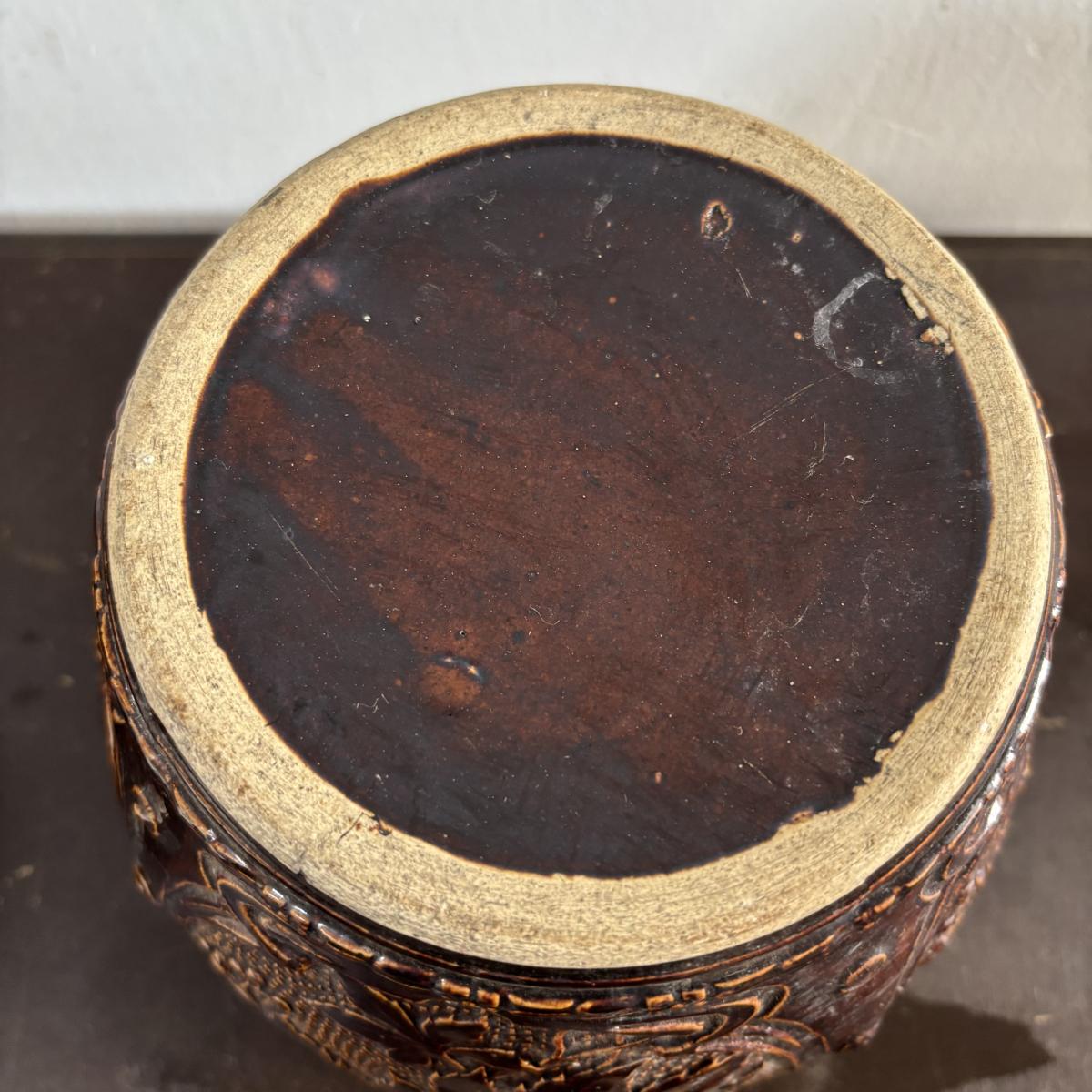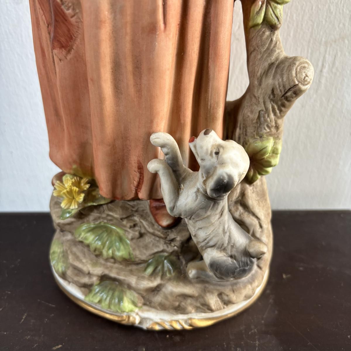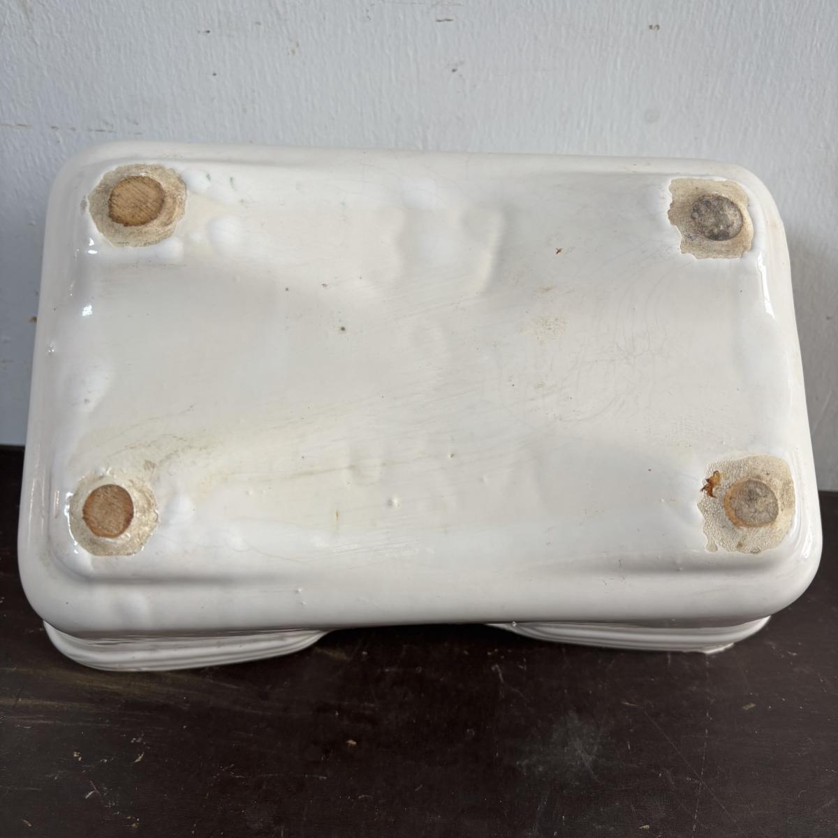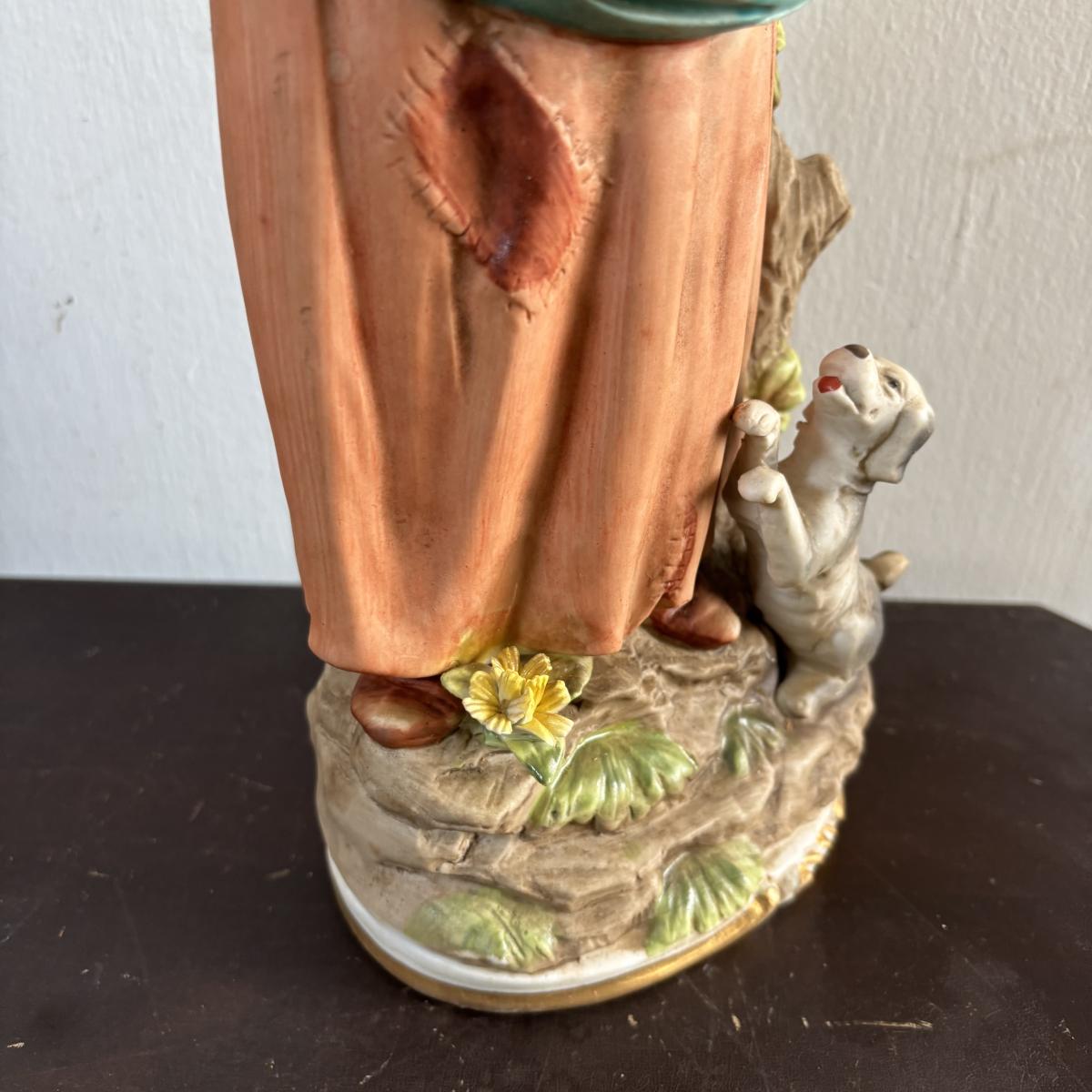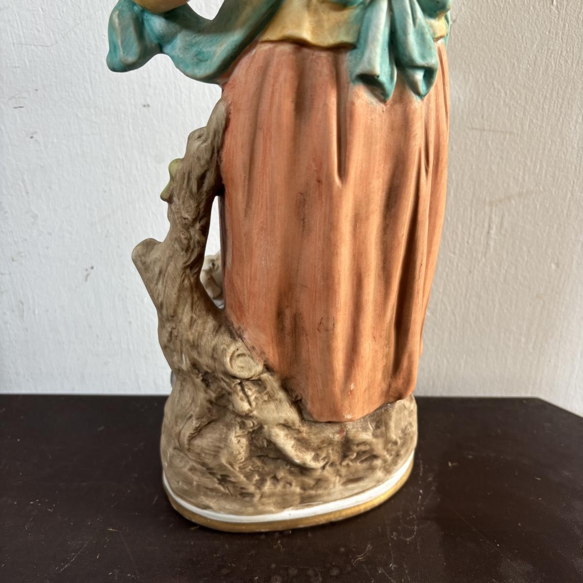 LOT 586: Vintage Brown Glazed Planter, Made in USA Planter & "Gathering Granny" Figurine