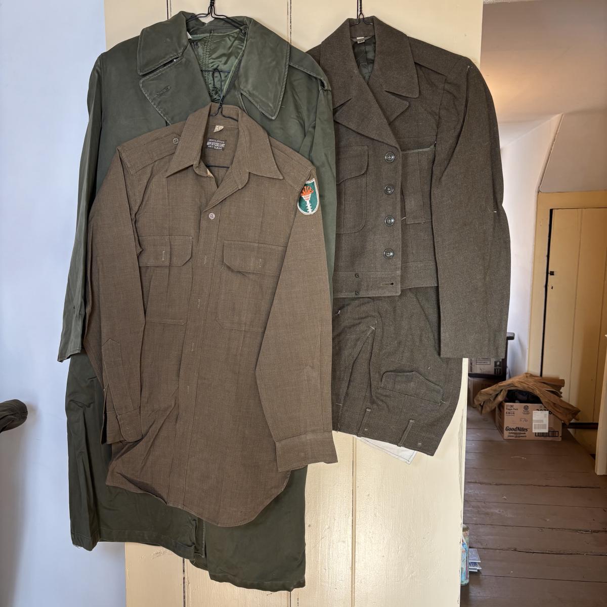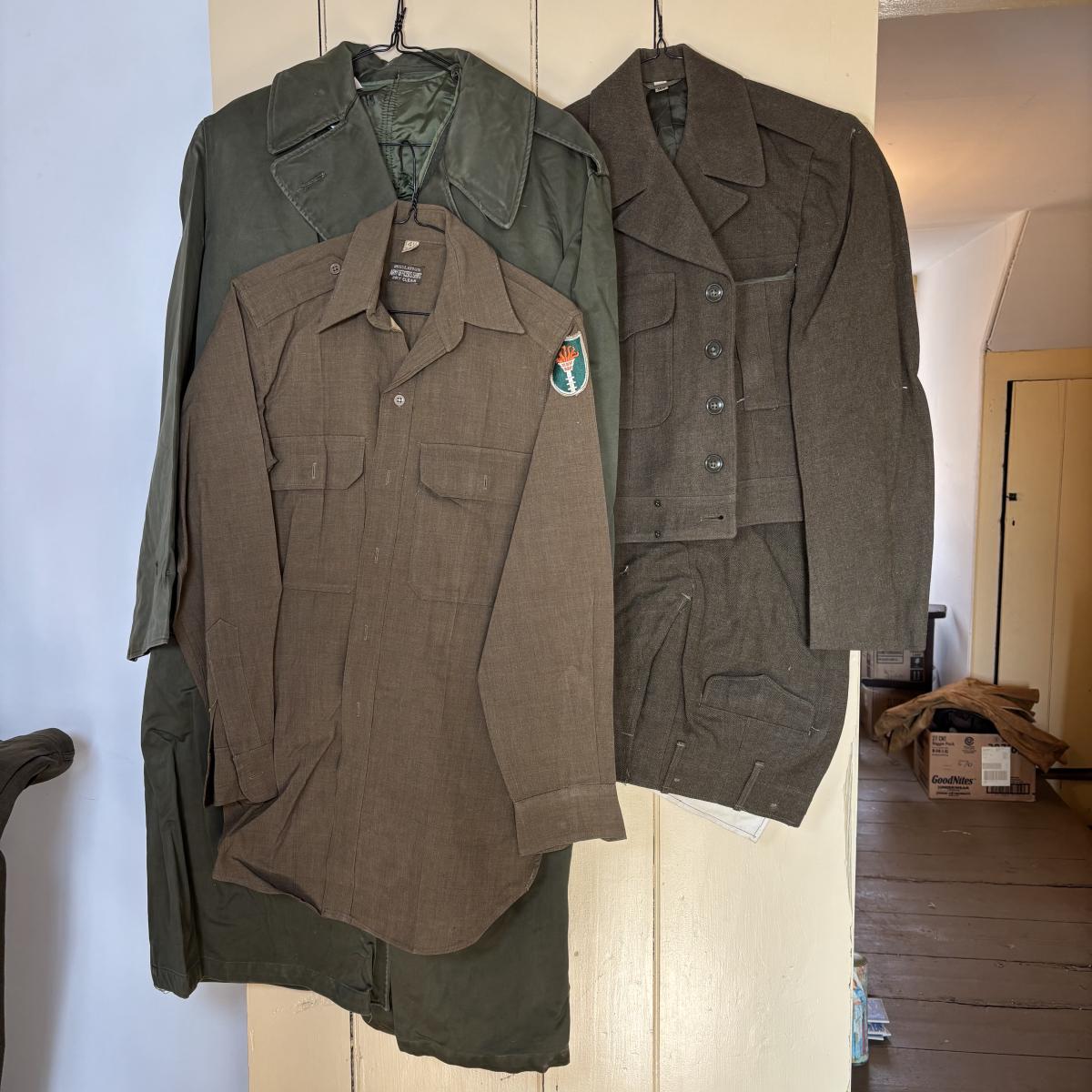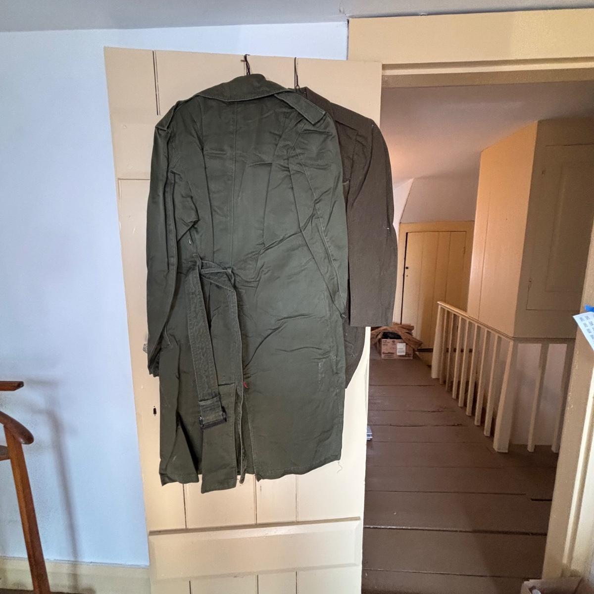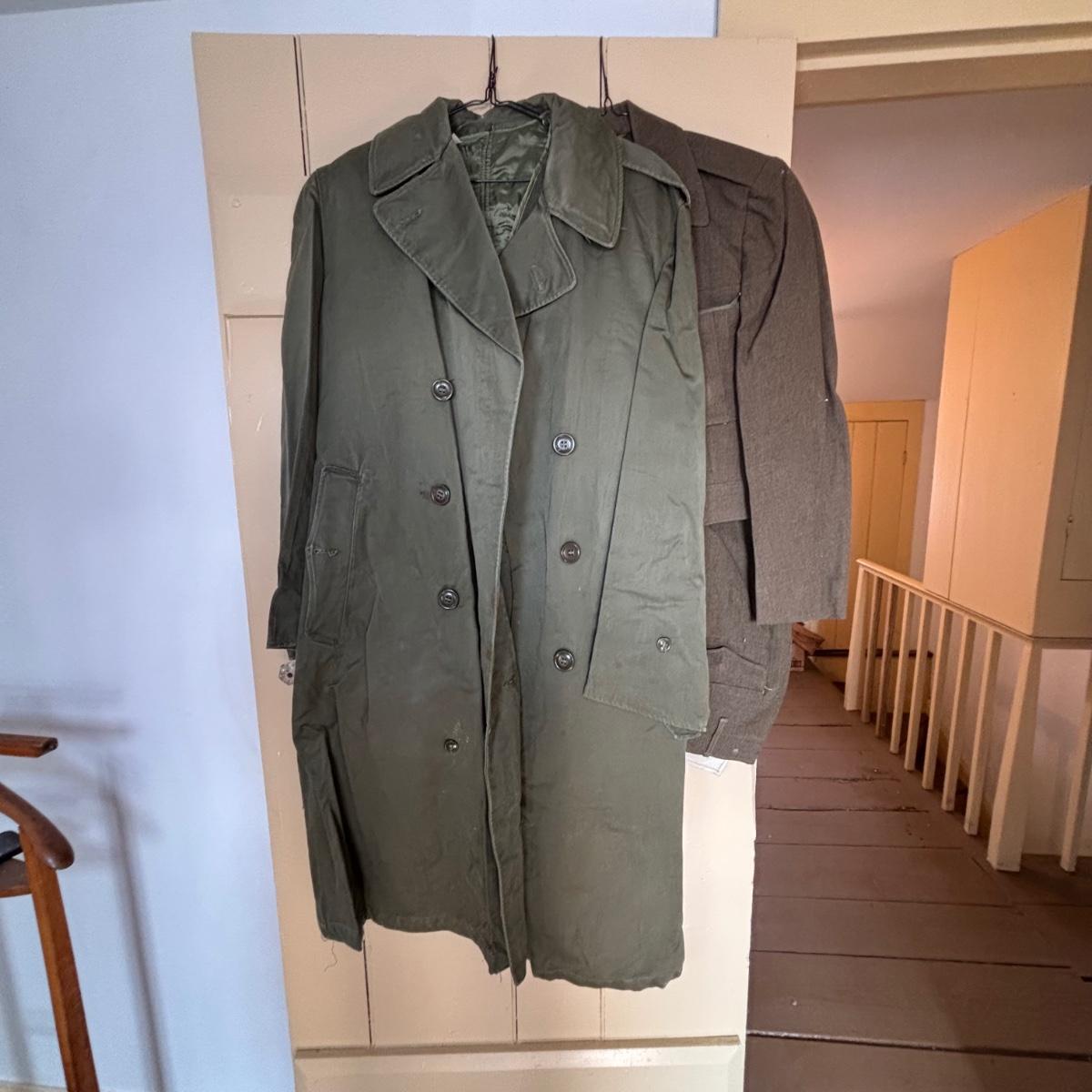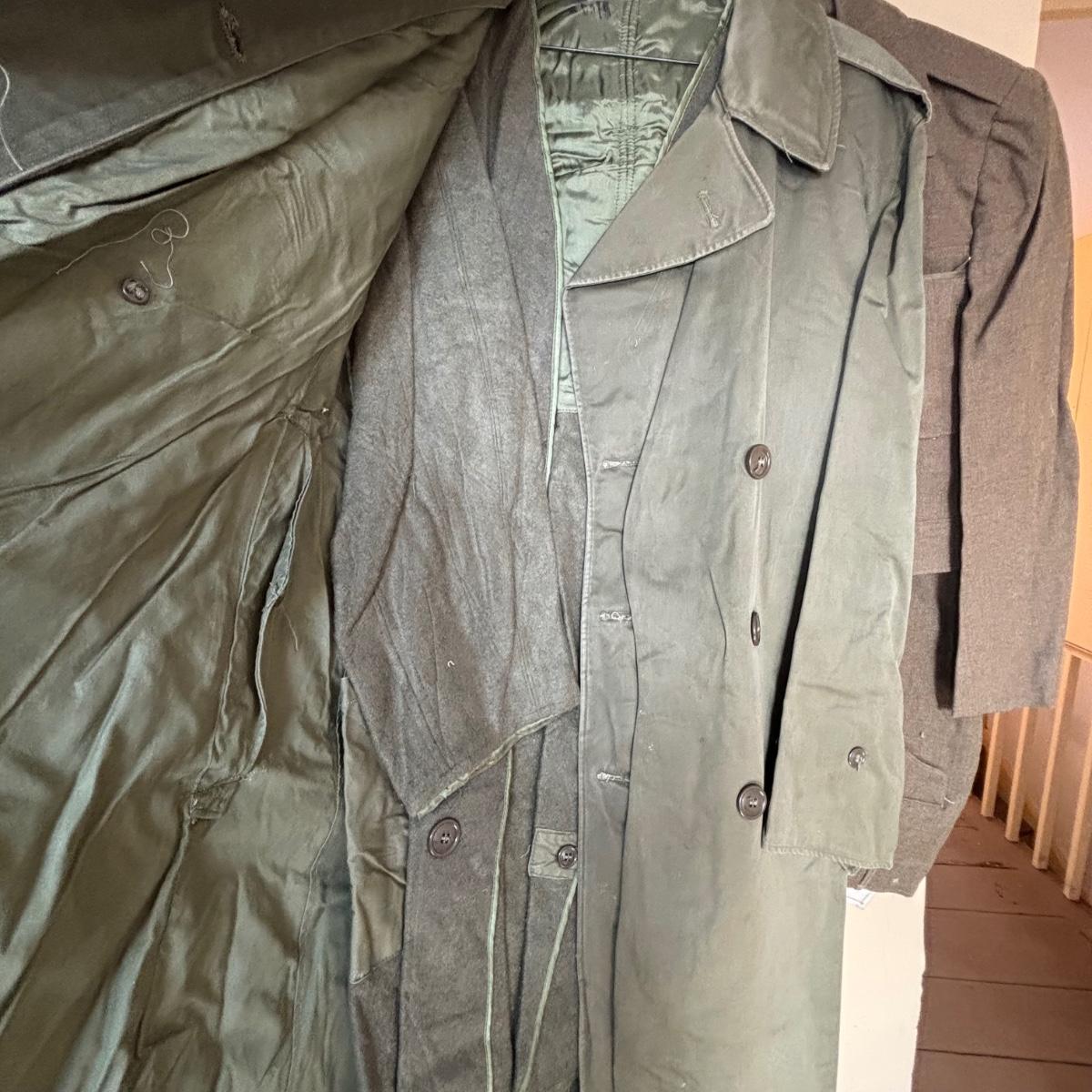 LOT 593: Military Issued Clothing: Officers Shirt, Uniform Jacket & Trousers & Trench Coat