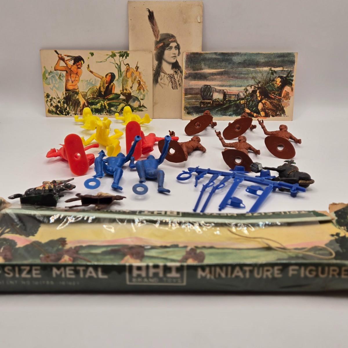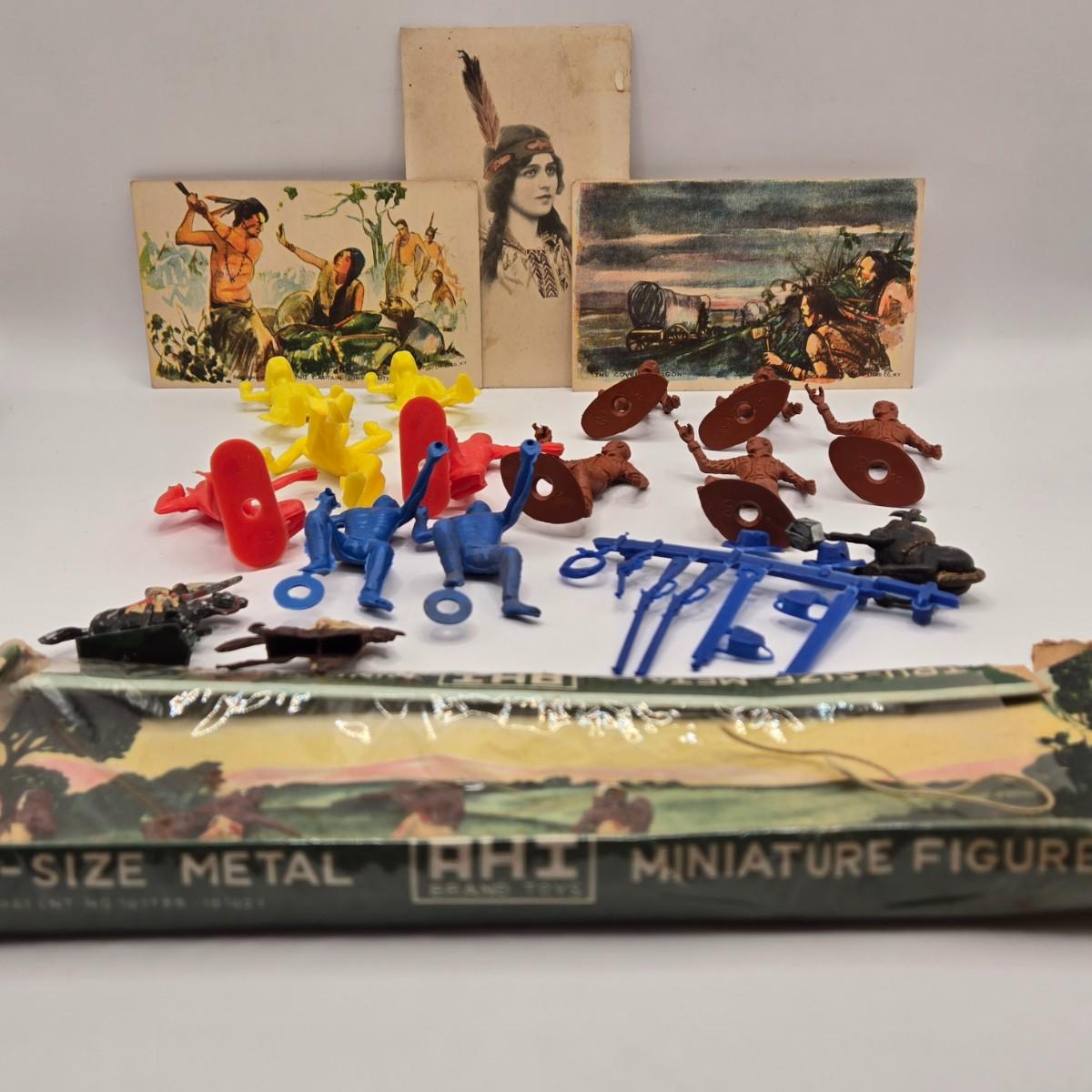 LOT 598: Vintage Postcards, Plastic Toy Figures, & Metal Miniatures