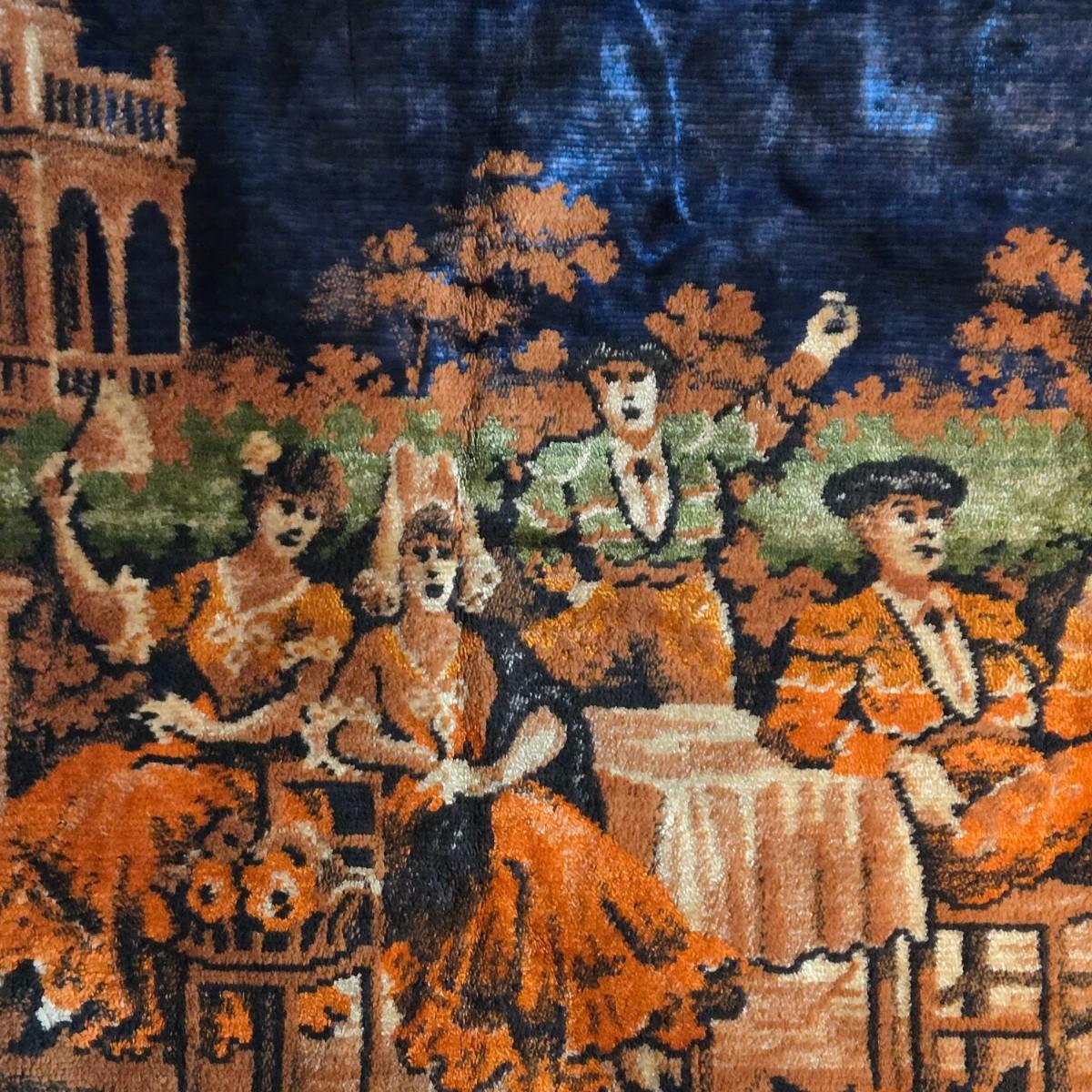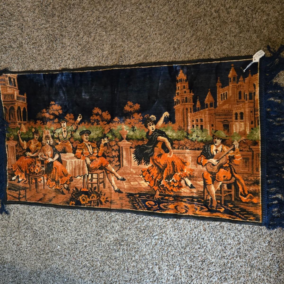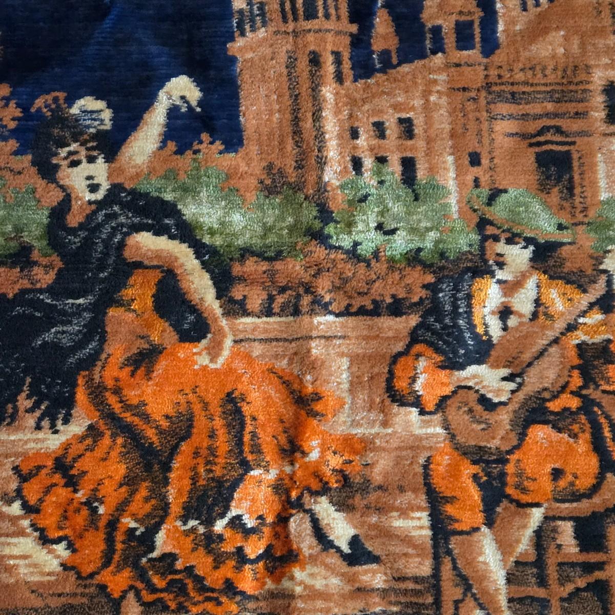 LOT 607: Antique Spanish Dancing Music Velour Colosseum Towers Wall Art Tapestry & Prayer Rug/Wall Art Tapestry