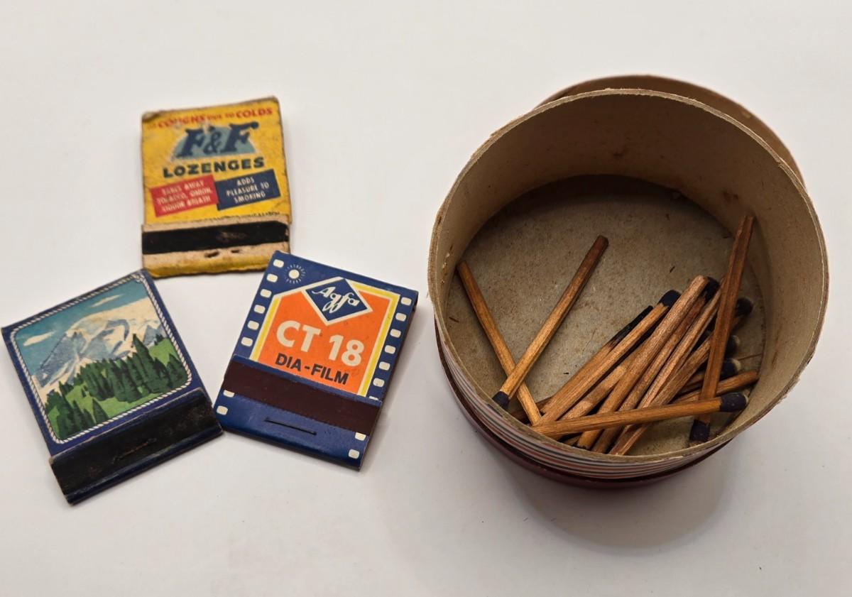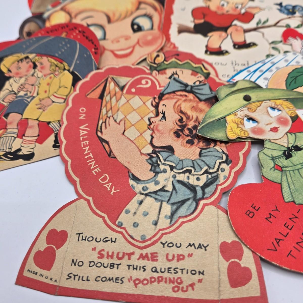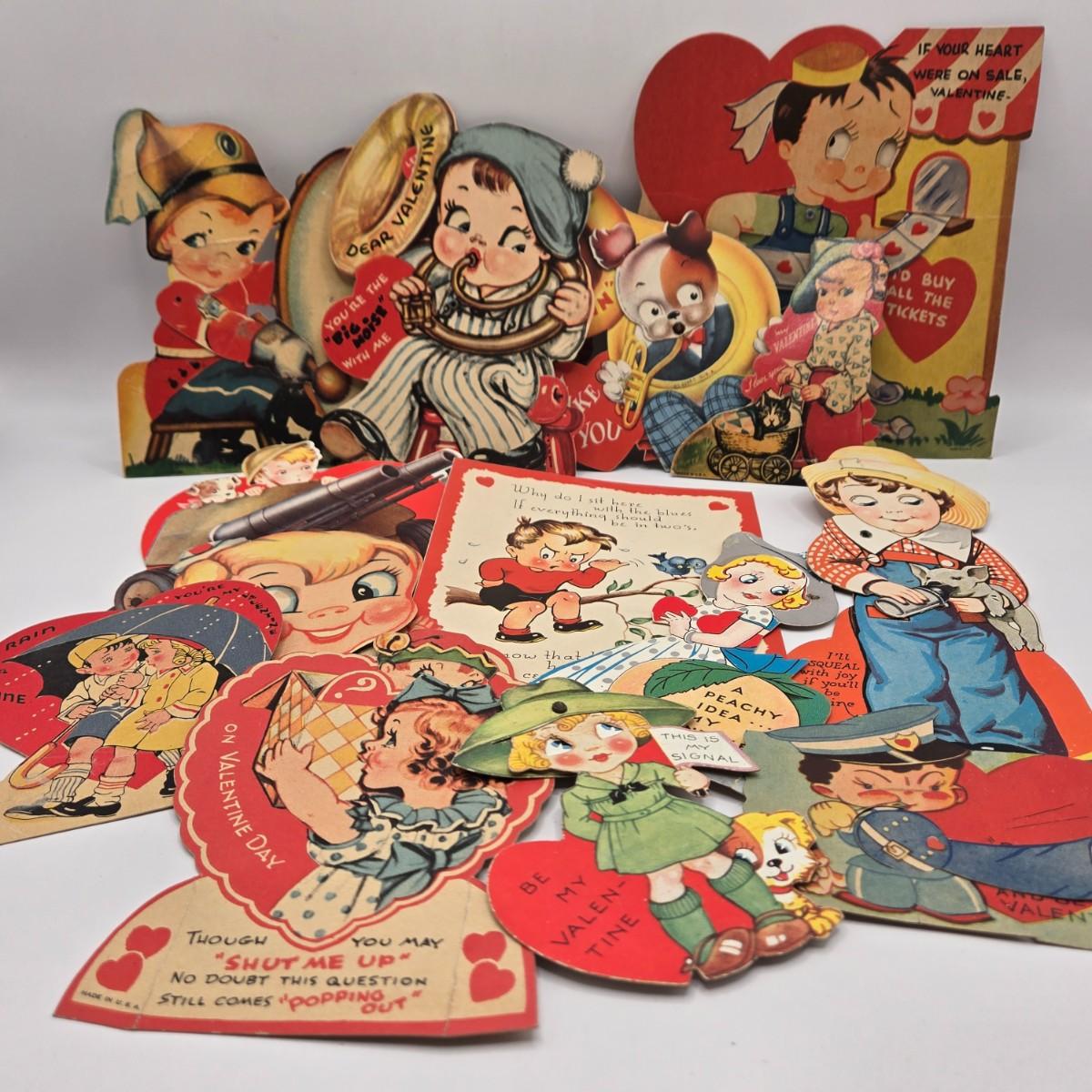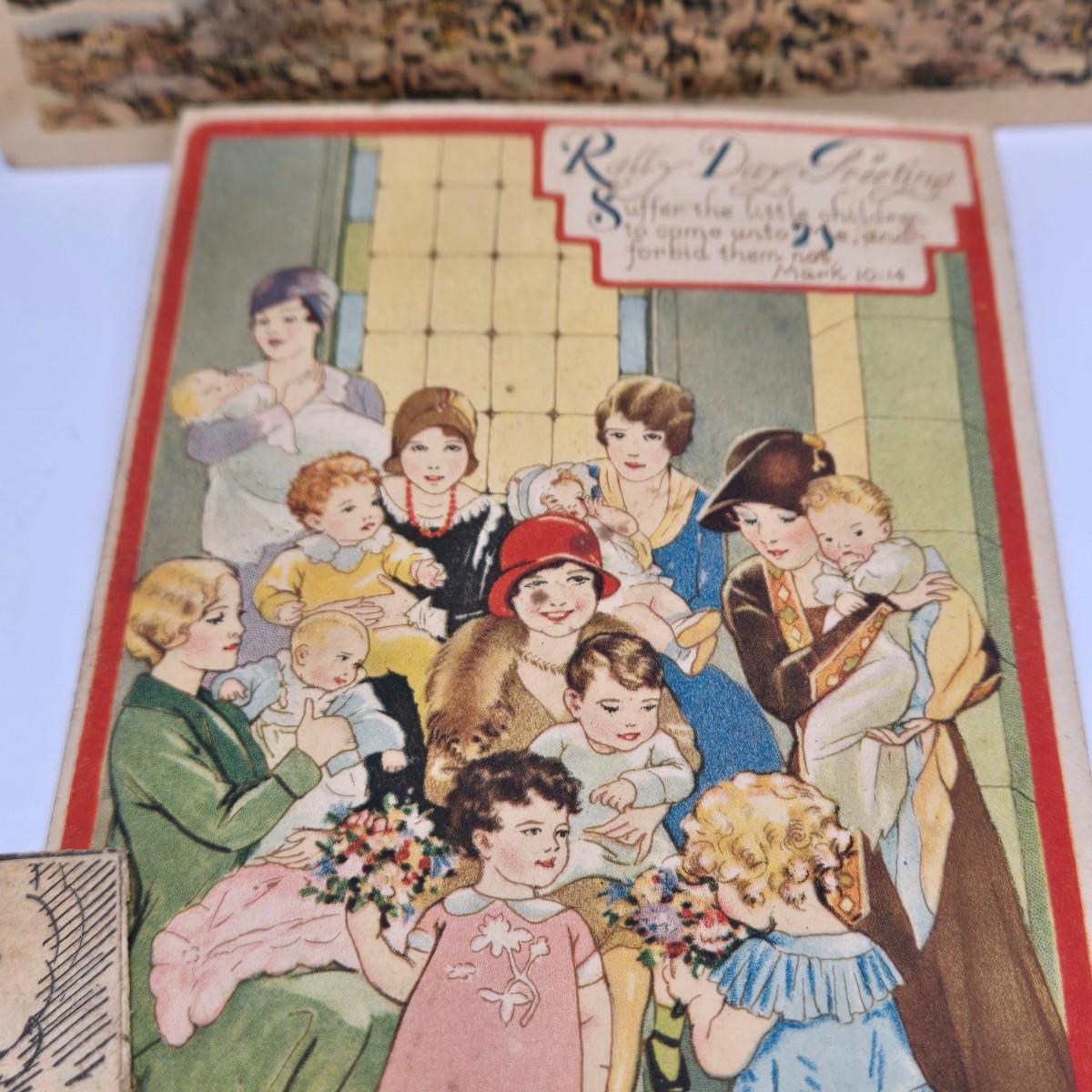 LOT 619: Various Postcards, Greeting Cards, Comic Strips, Matches, Stamps, & Coin Trick Block Puzzle Instructions