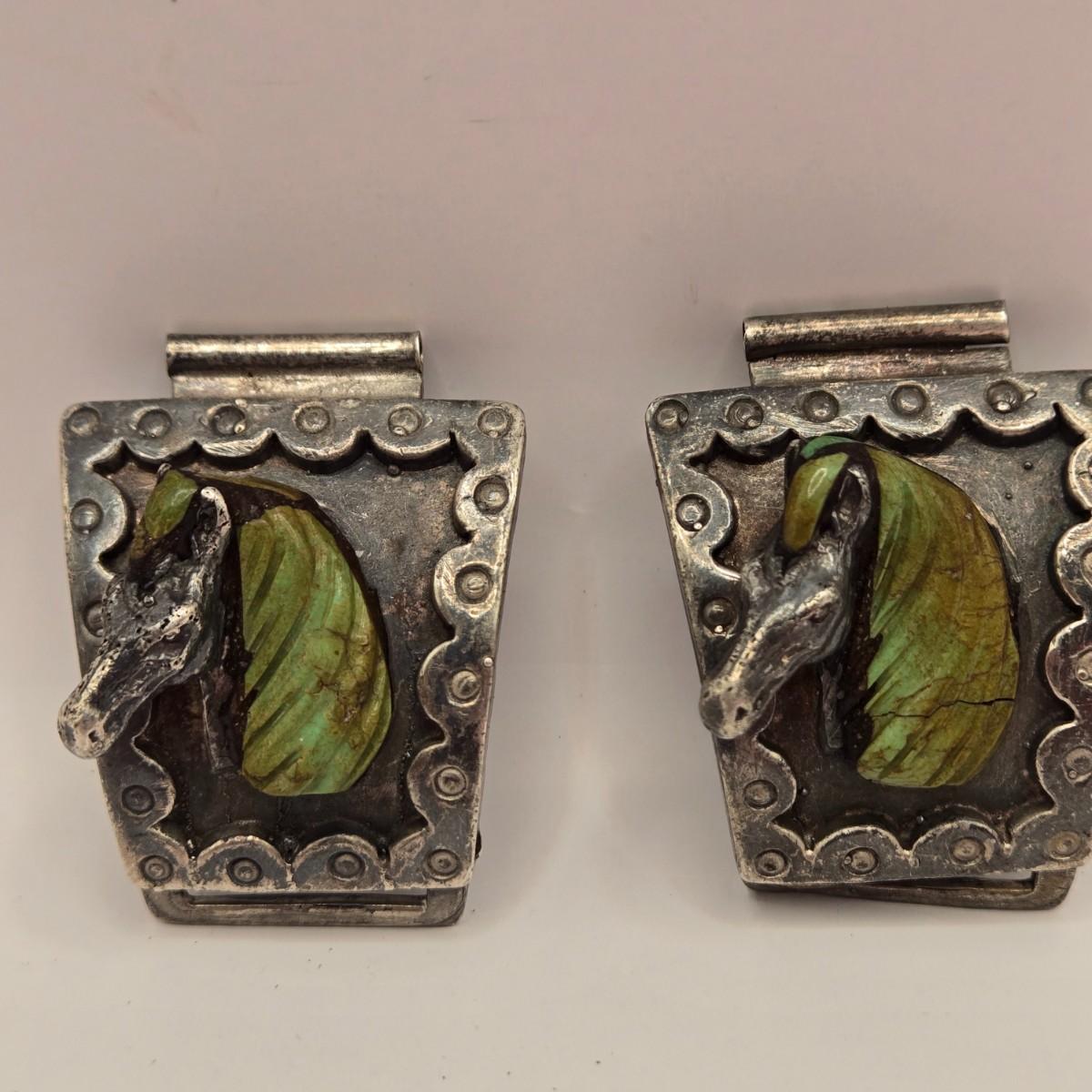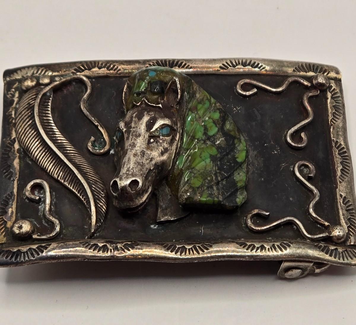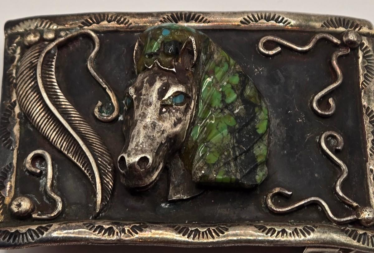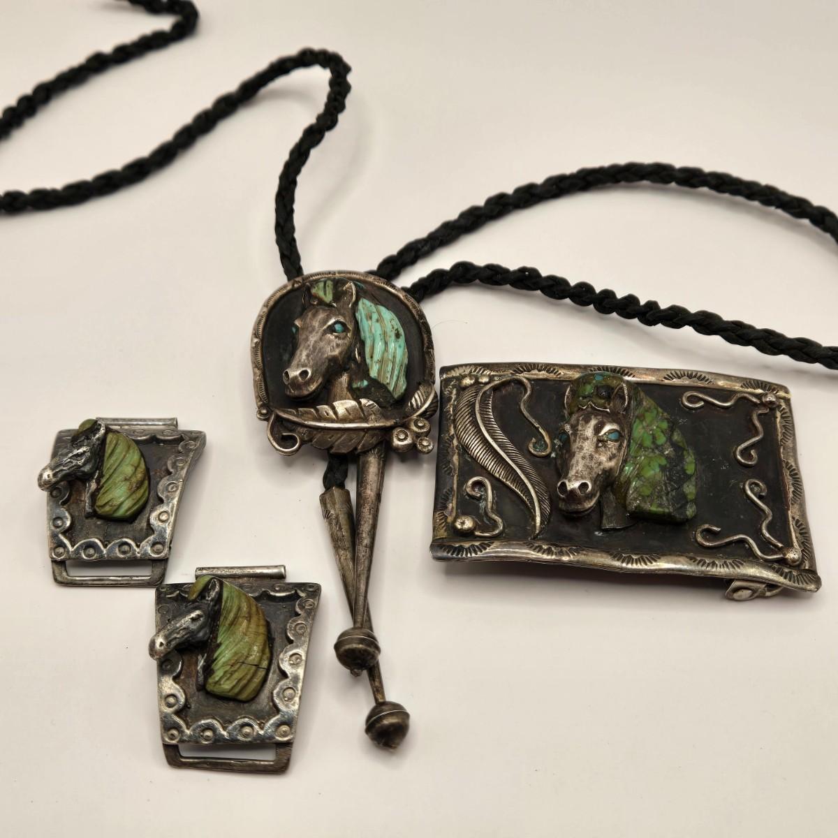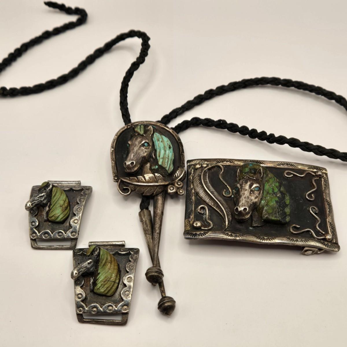 LOT 620: Silver Toned Belt Buckle, Bolo Tie, & Watch Band Parts