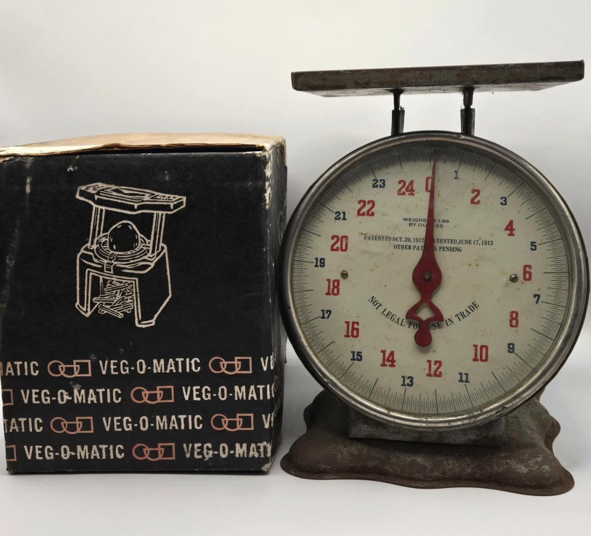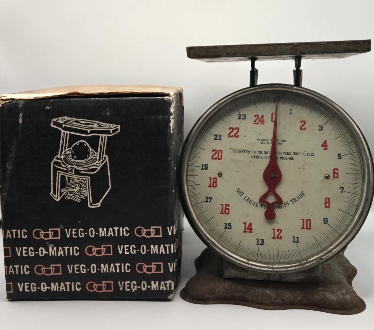 LOT 624:Antique Kitchen Scale, & Veg-O-Matic Food Preparer