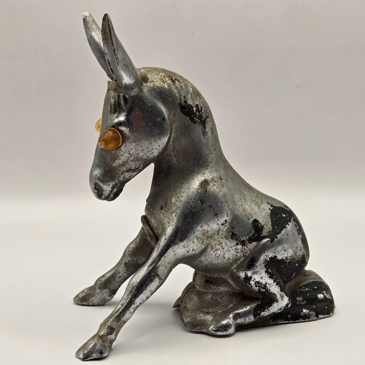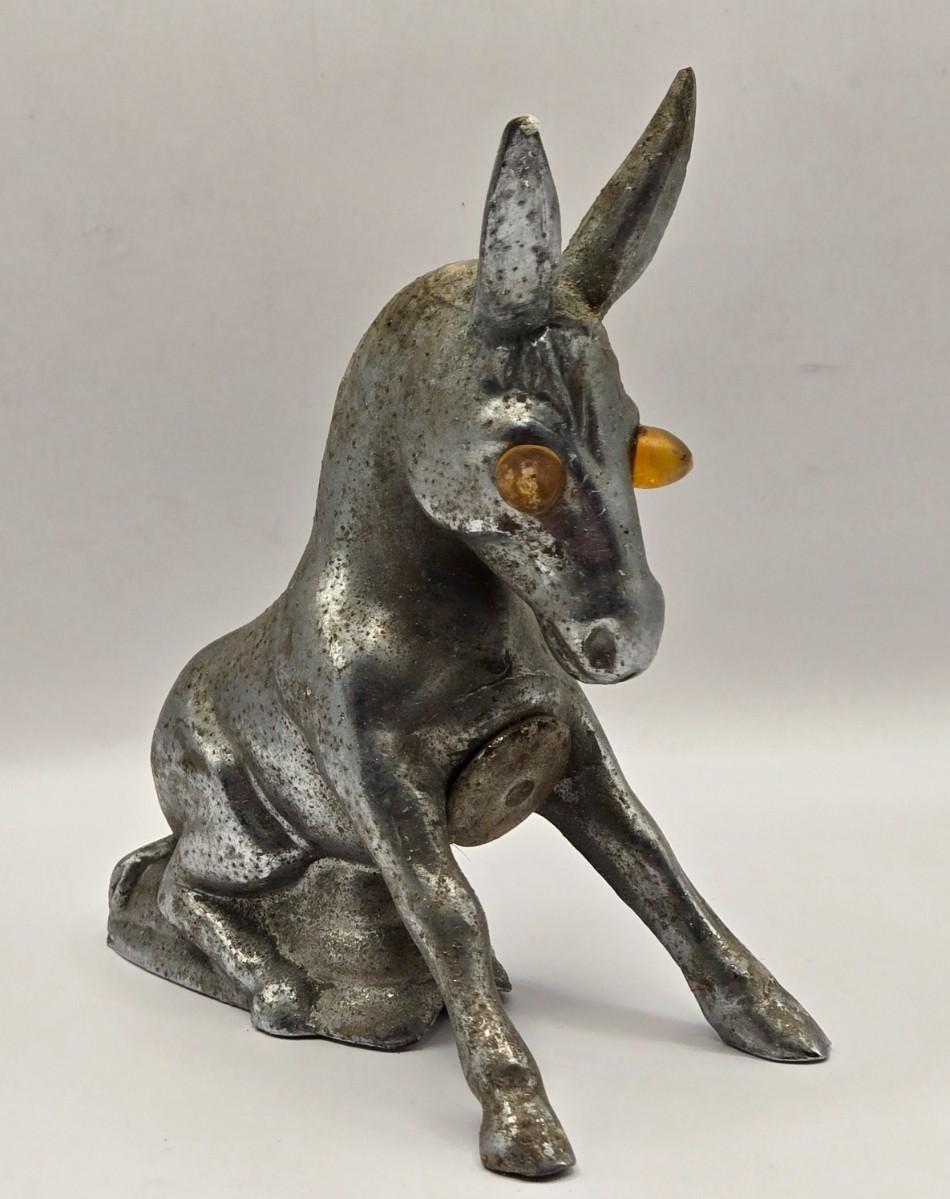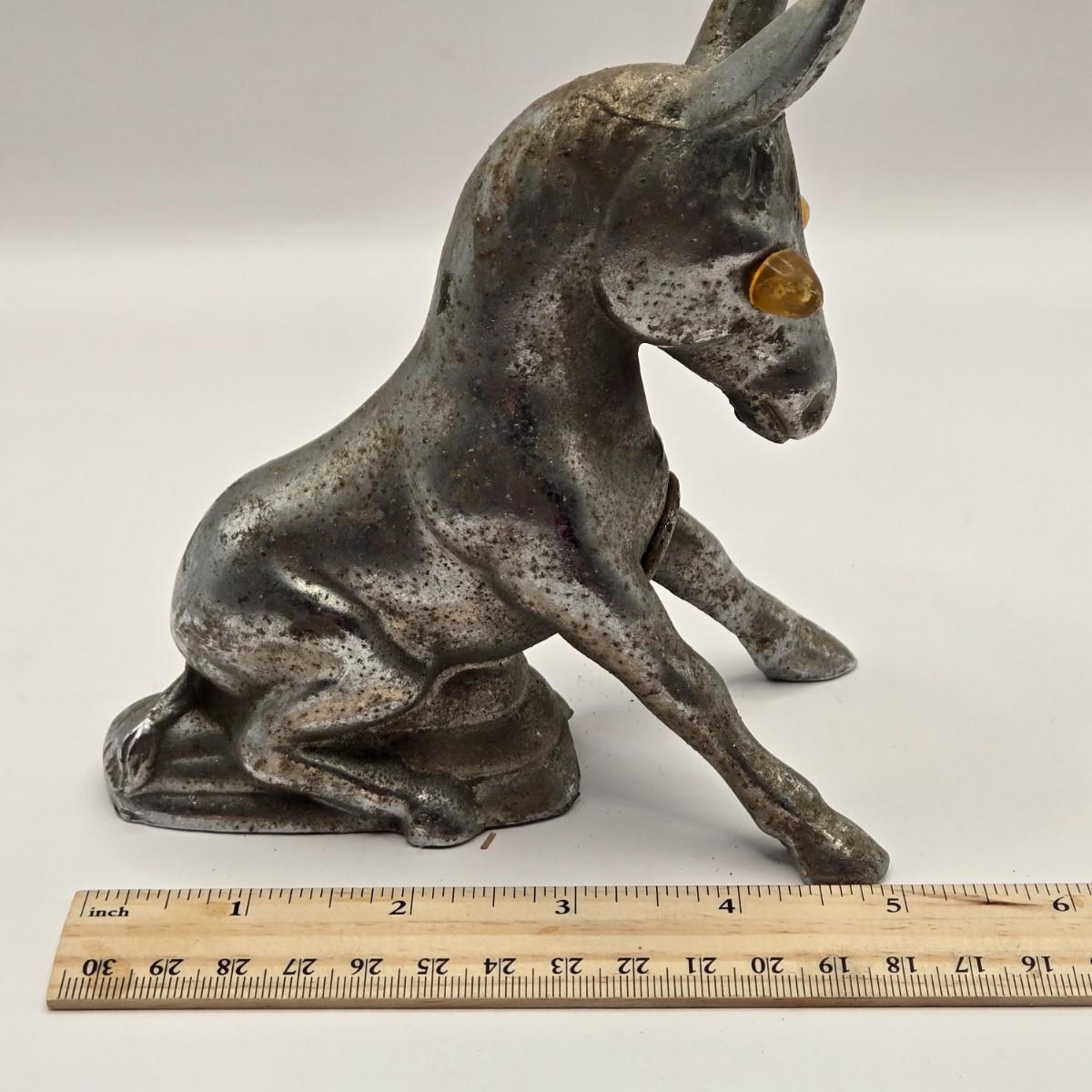 LOT 625: Vintage Metal Donkey Hood Ornament with Illuminated Amber Eyes