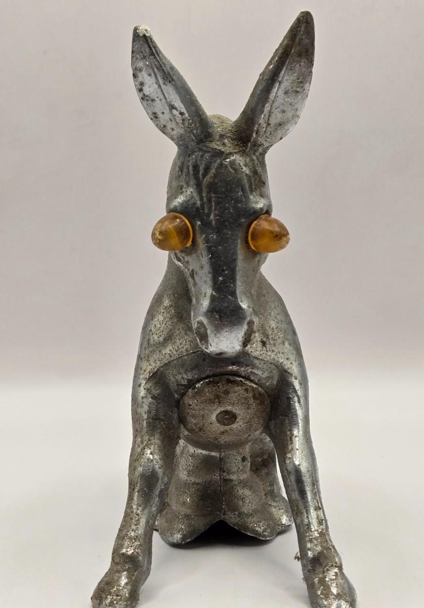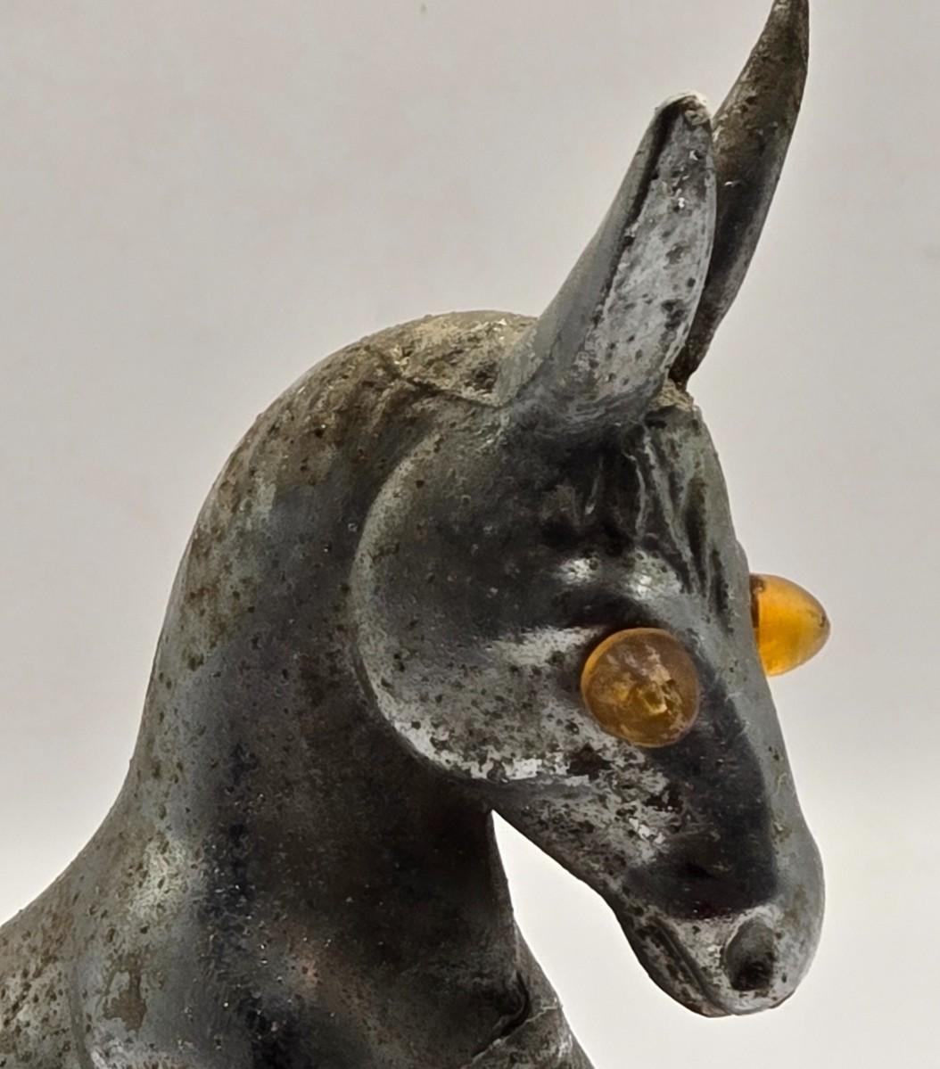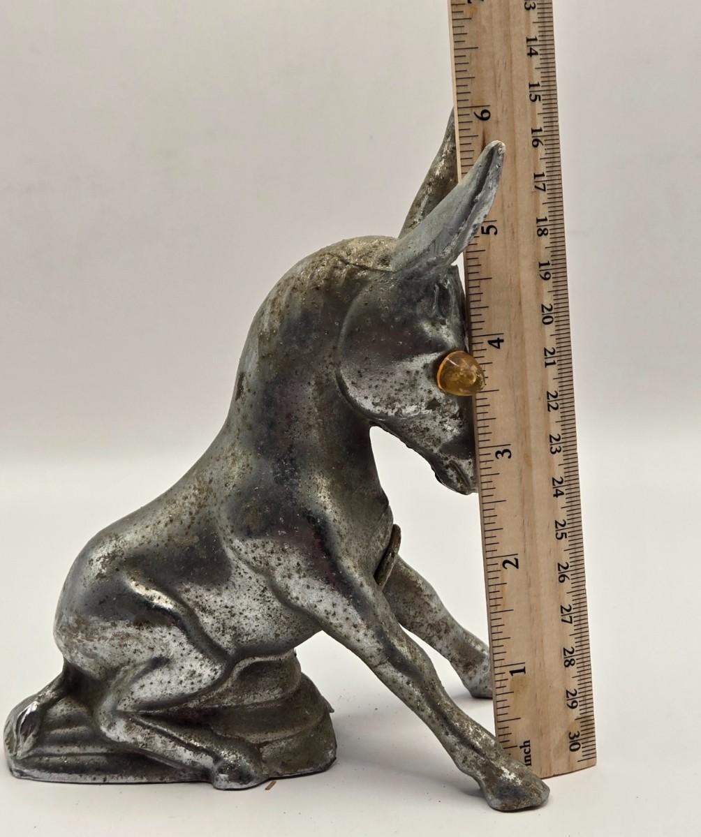 LOT 625: Vintage Metal Donkey Hood Ornament with Illuminated Amber Eyes
