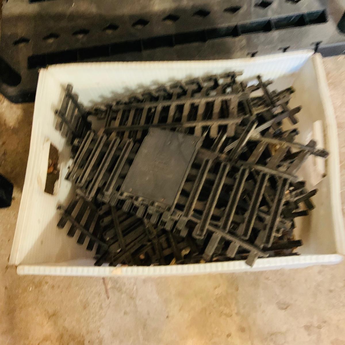 LOT 639: Bin Full of Plastic Miniature Rail Road Train Track - As Is