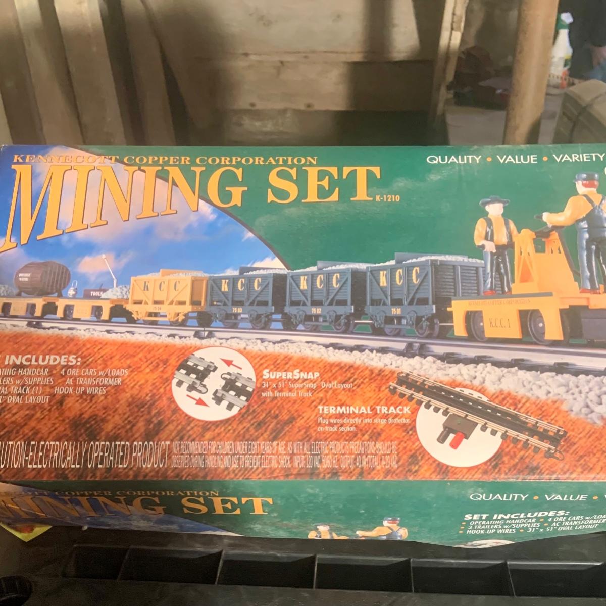 LOT:642: K-Line Kenecott Copper Corp Mining Set - K-1210 Includes Operating Handcar, Four (4) Ore Cars Three (3) Trailers, AC Transformer, Track and More