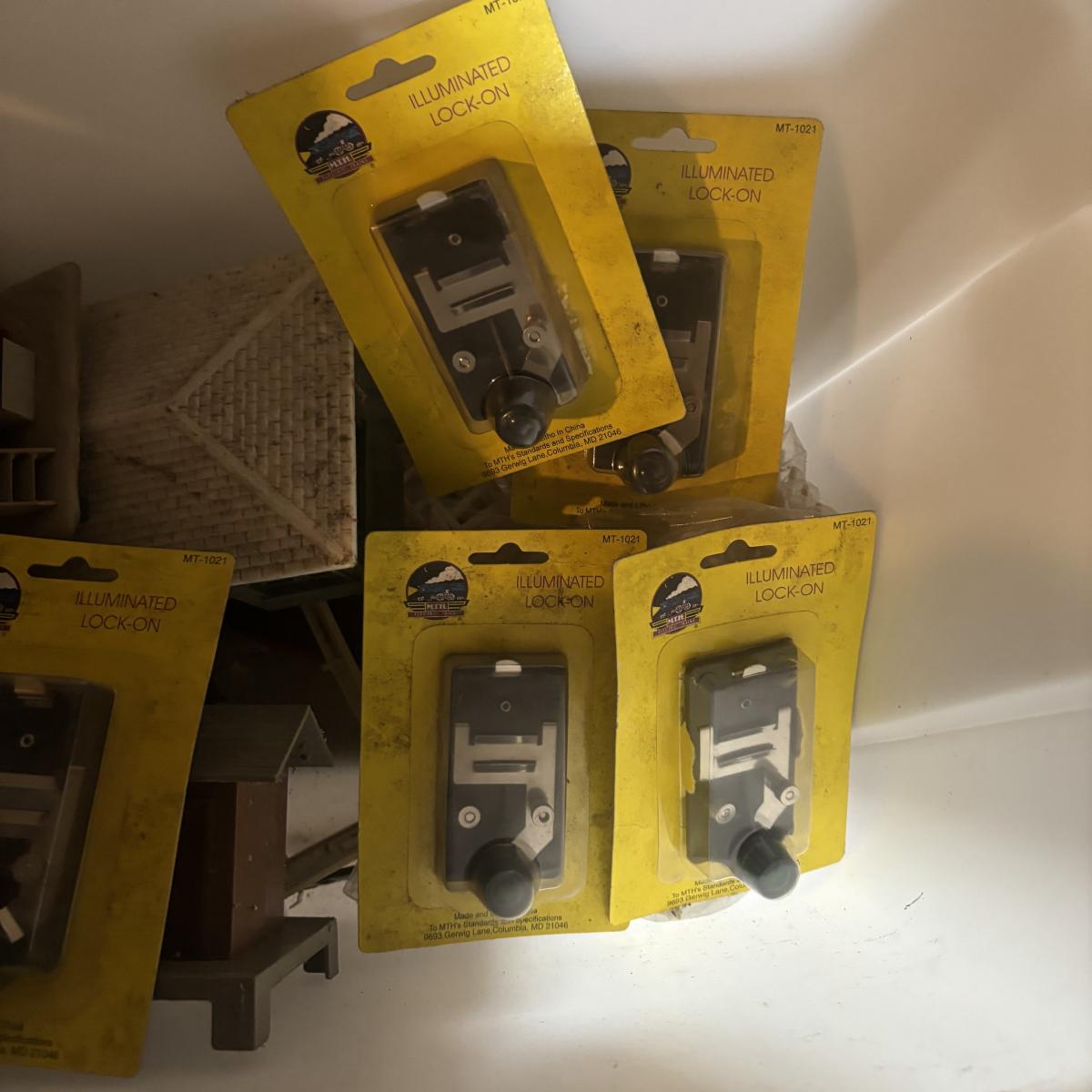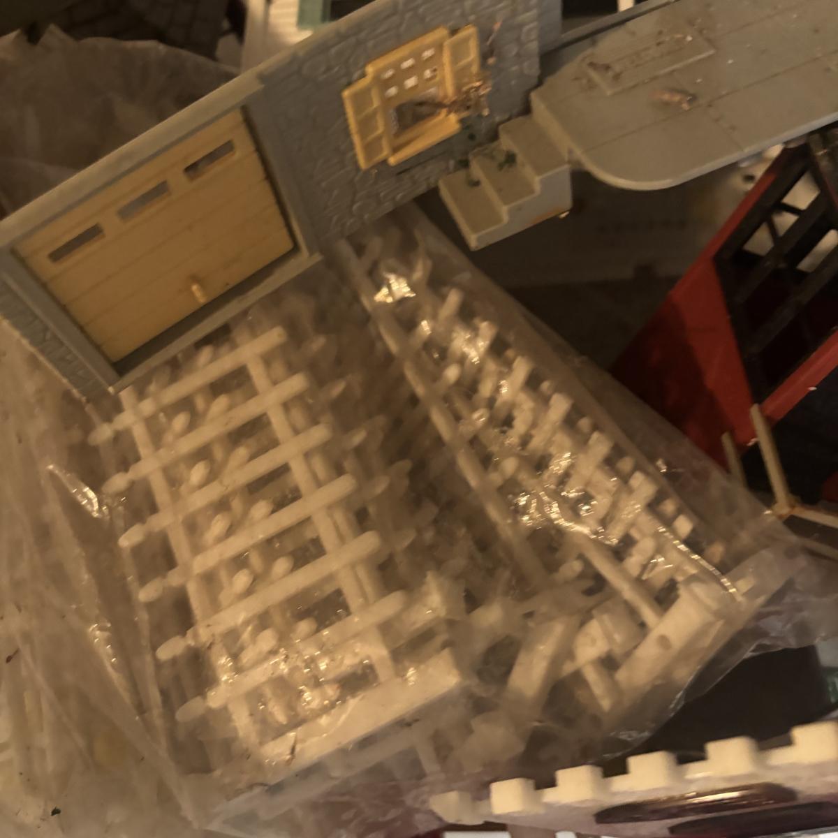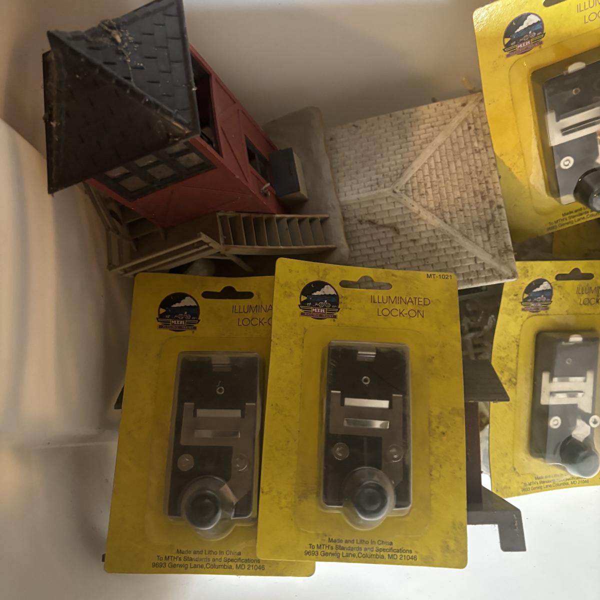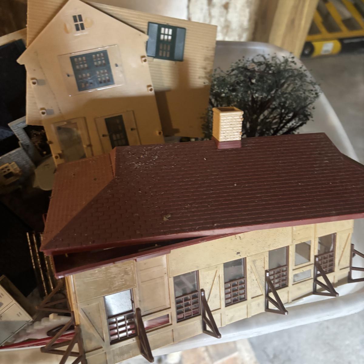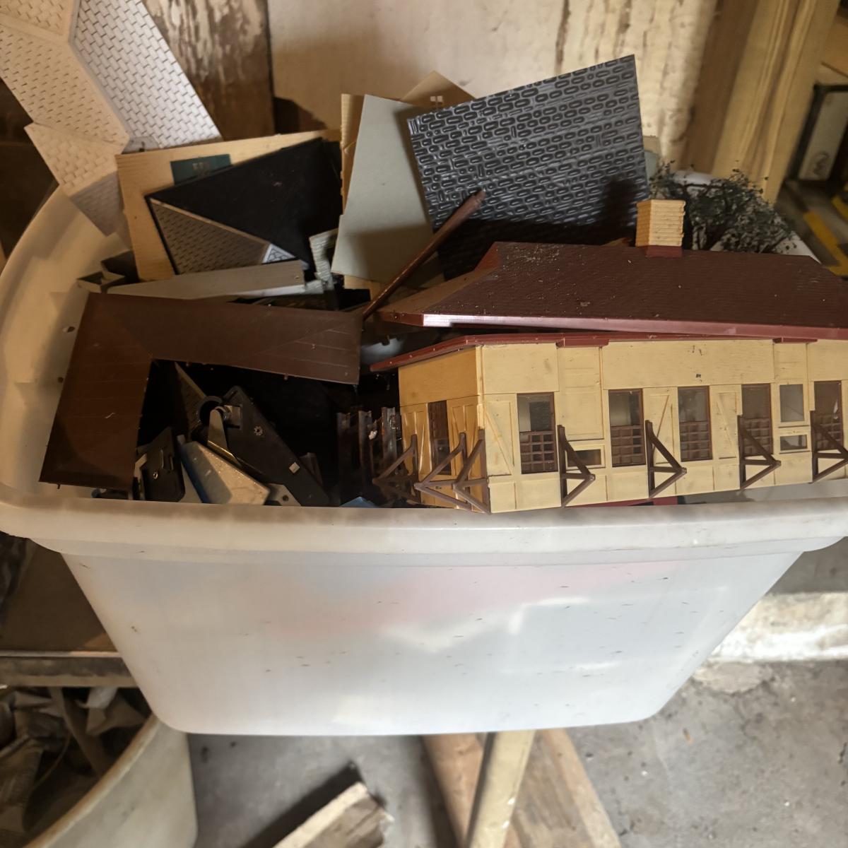 LOT 646: As Found Bin of Train Accessories: Houses, Fences etc.