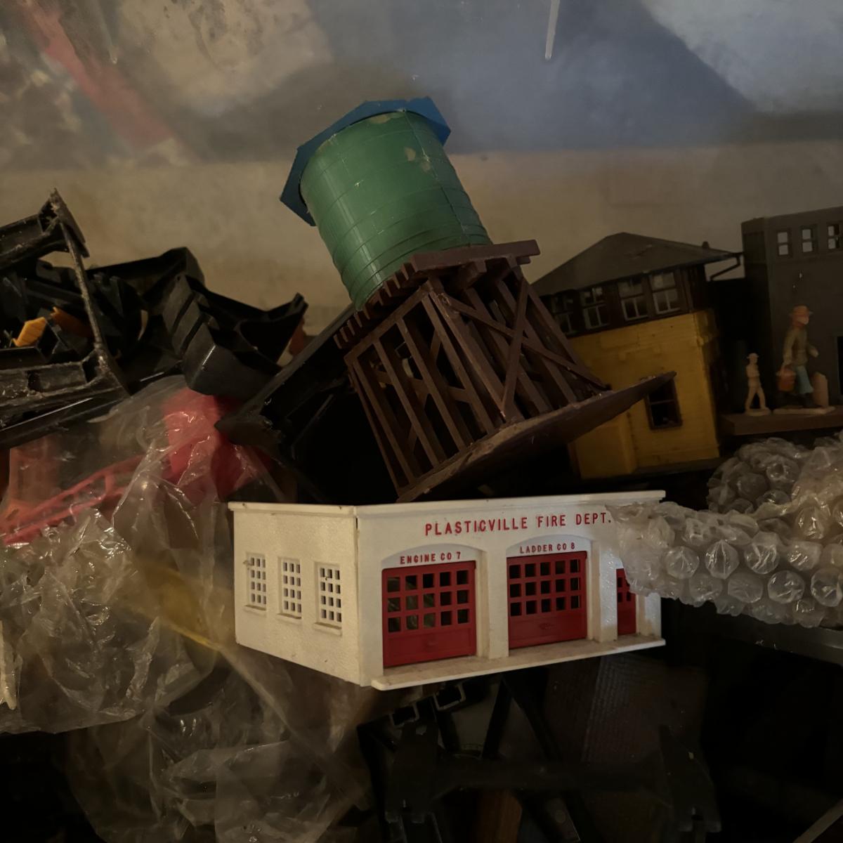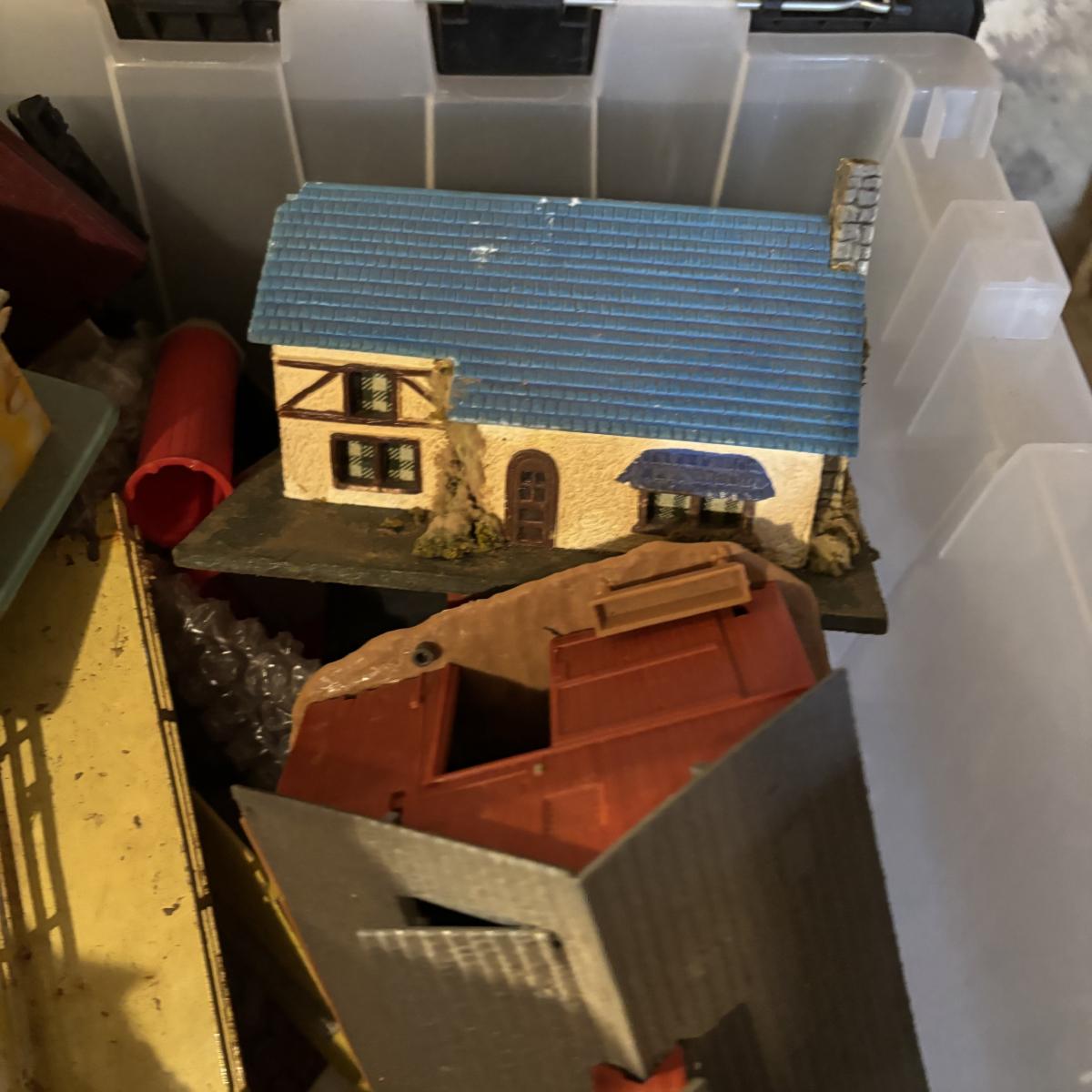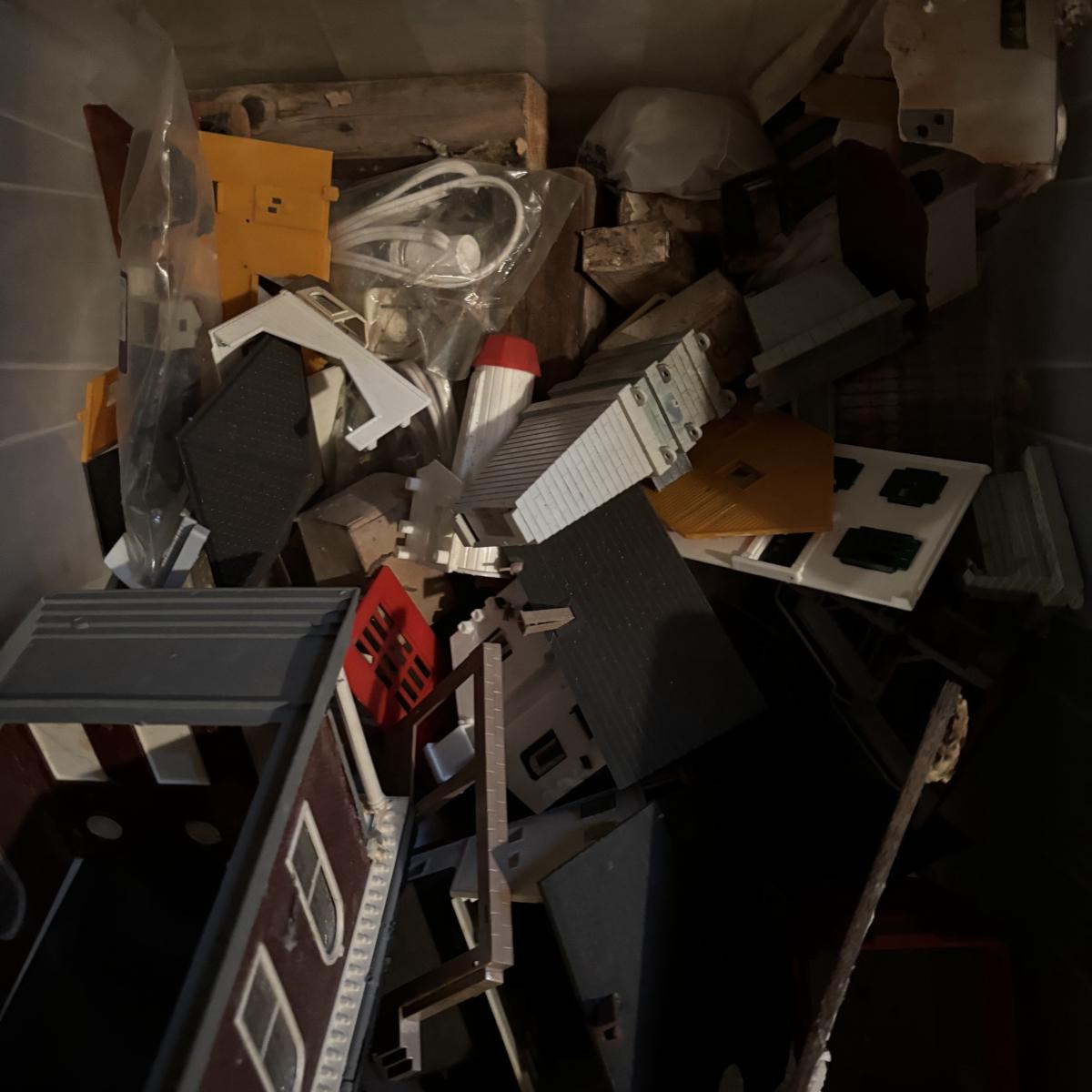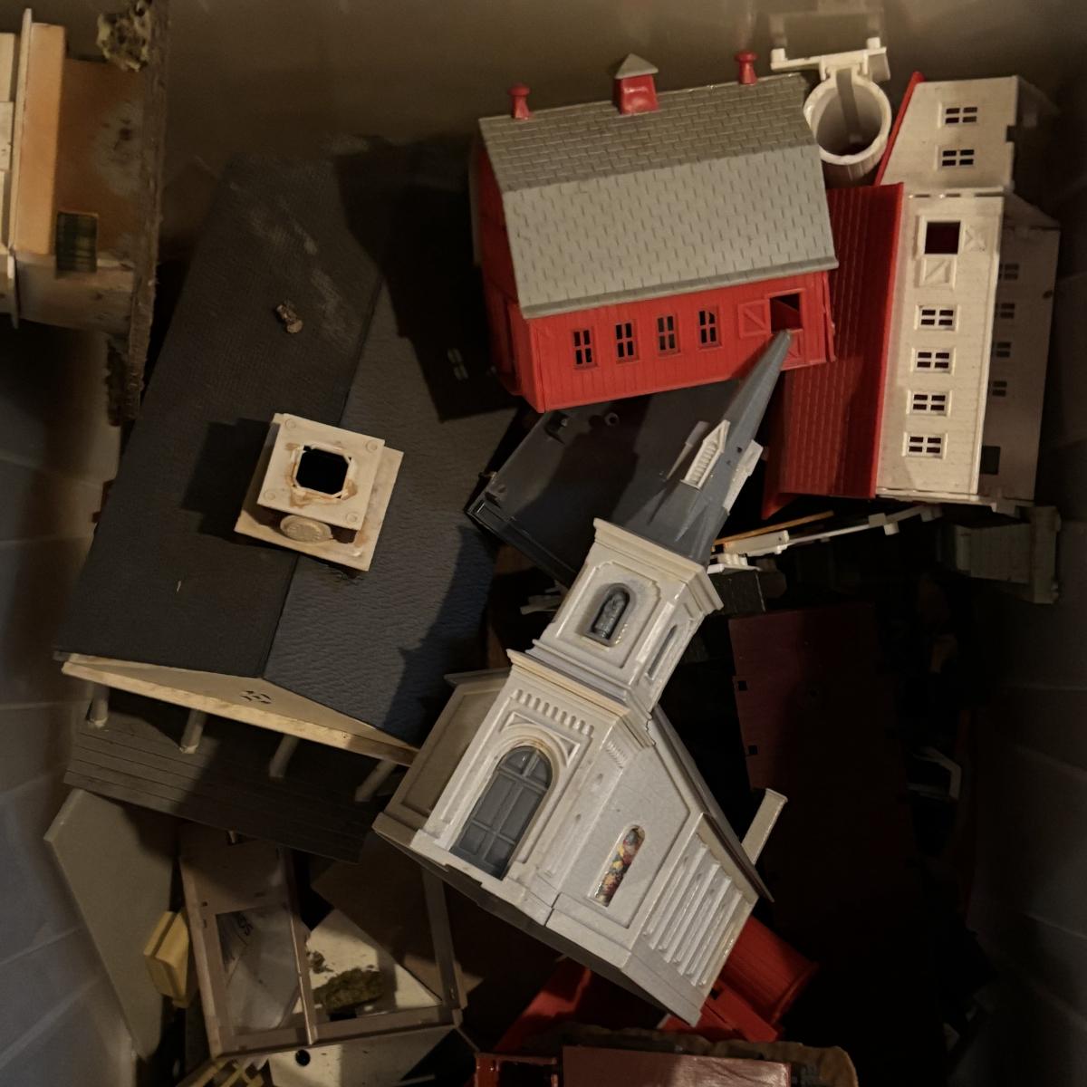 LOT 648: As Found Tote Full of Train Buildings/Accessories