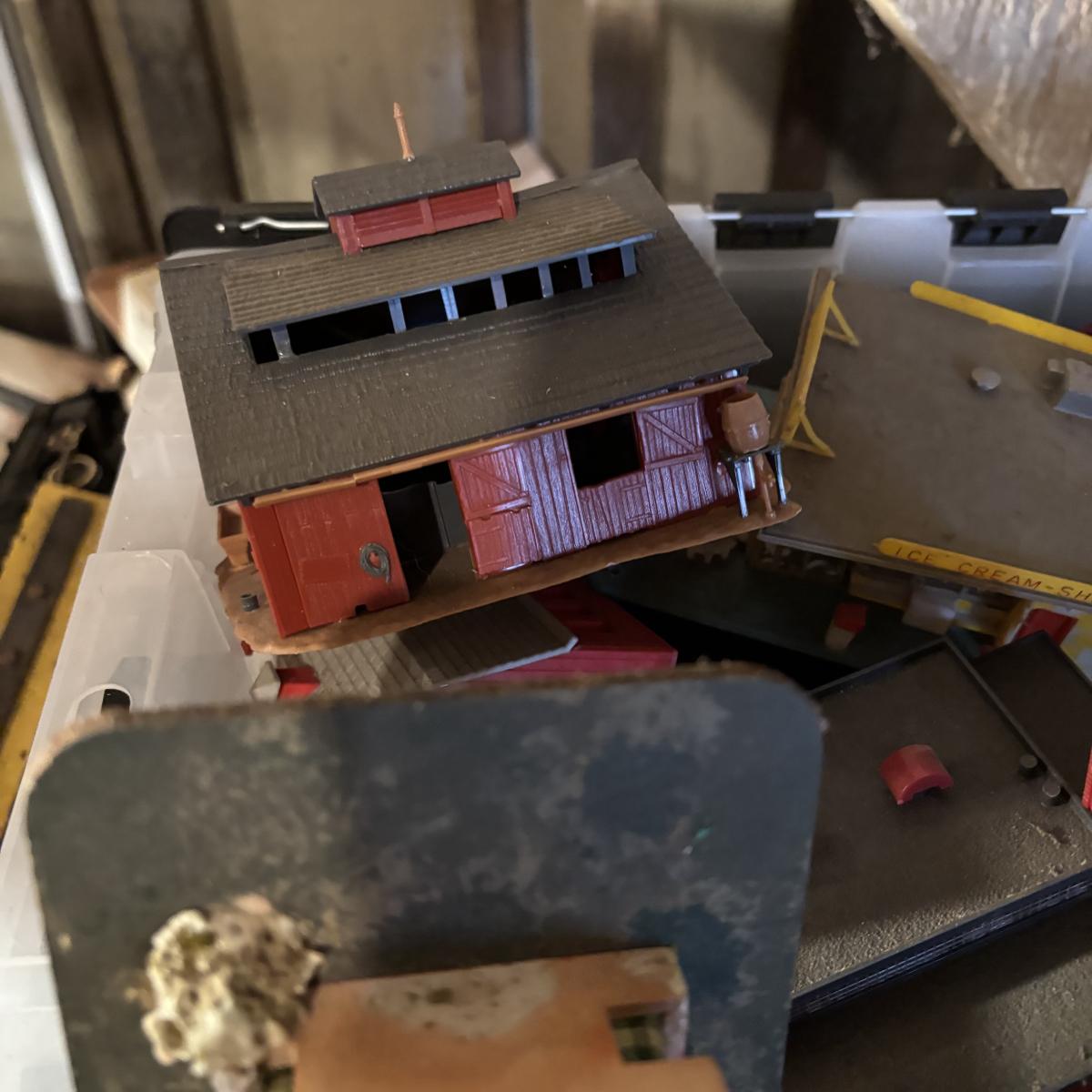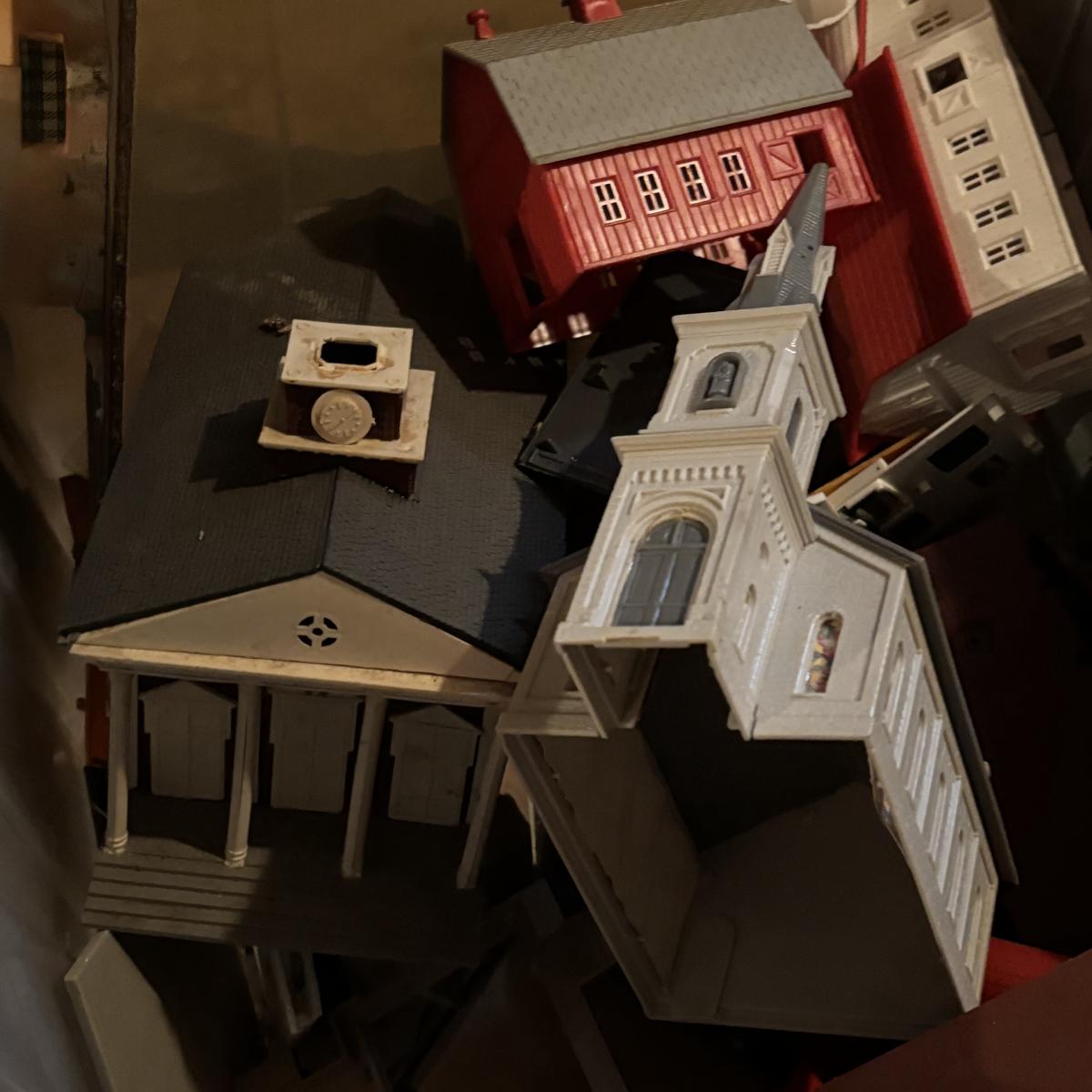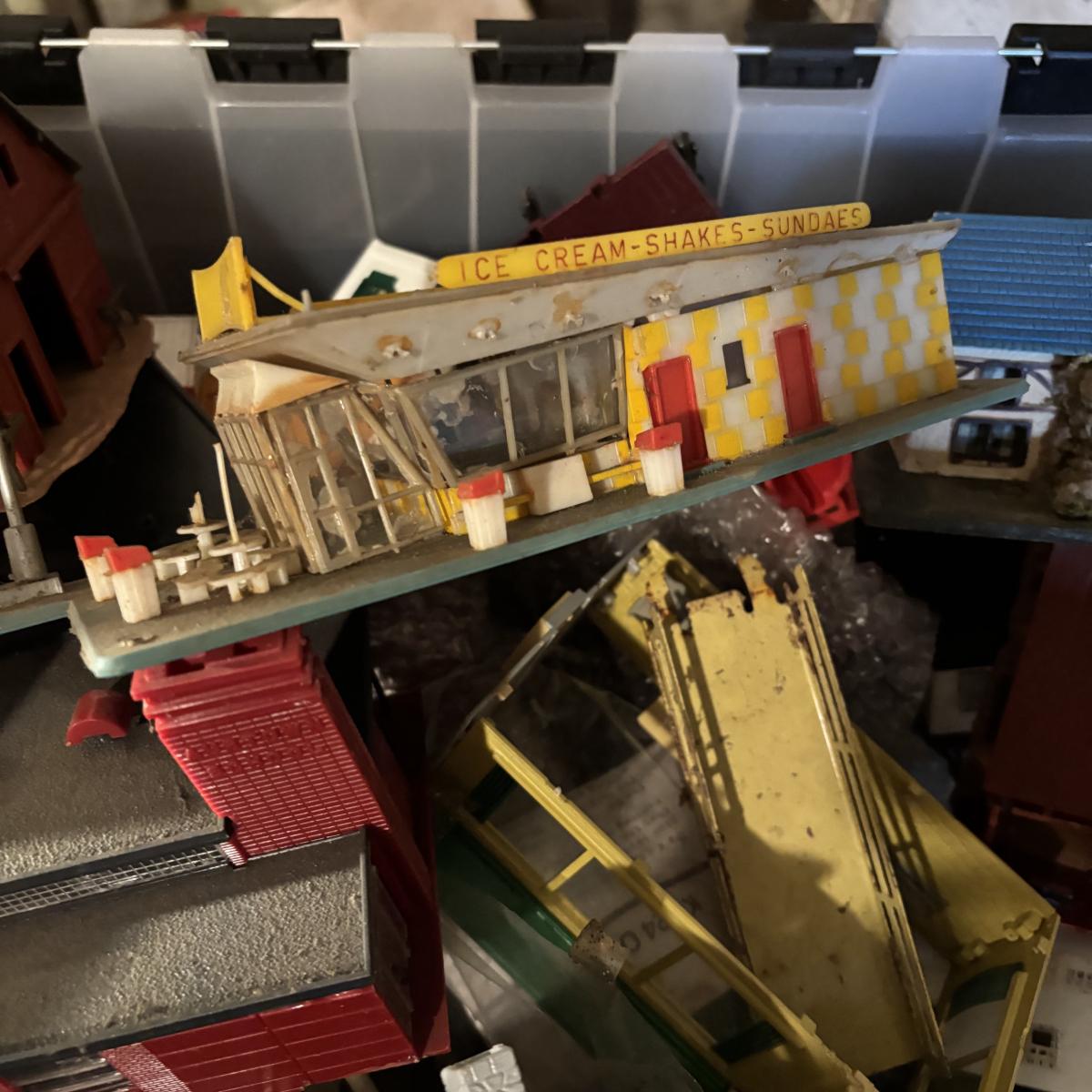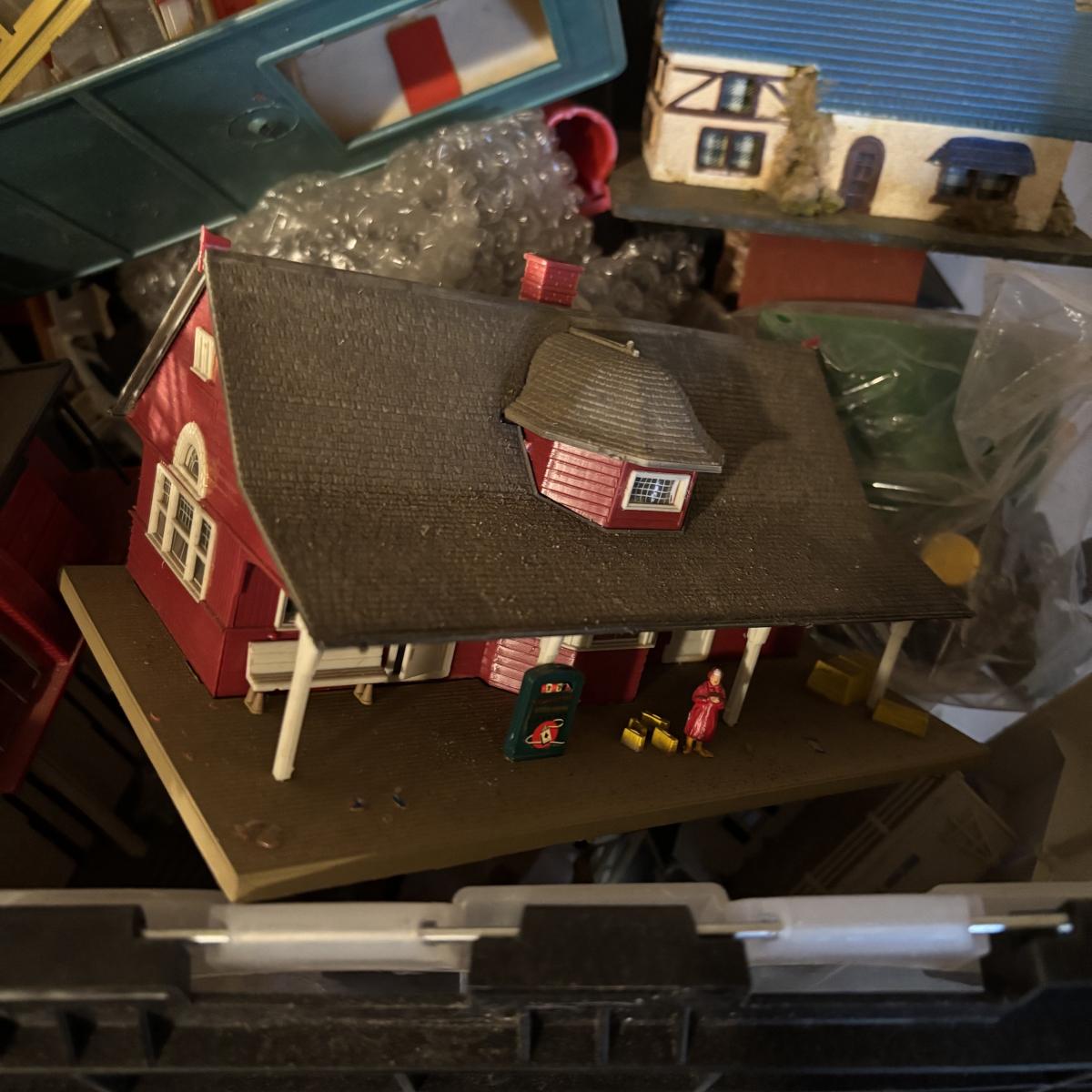 LOT 648: As Found Tote Full of Train Buildings/Accessories