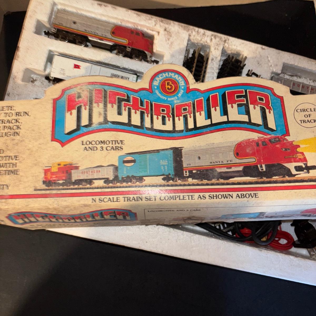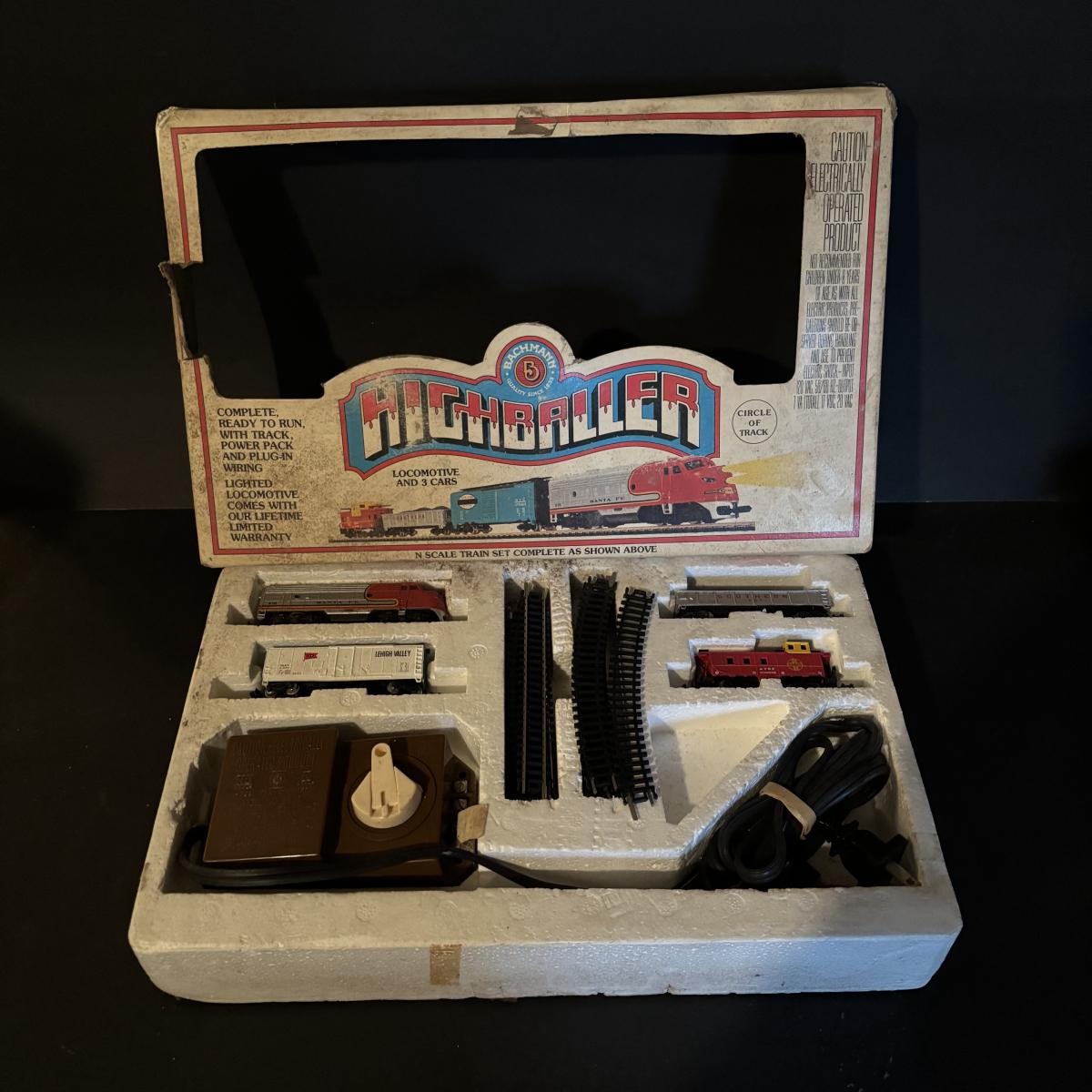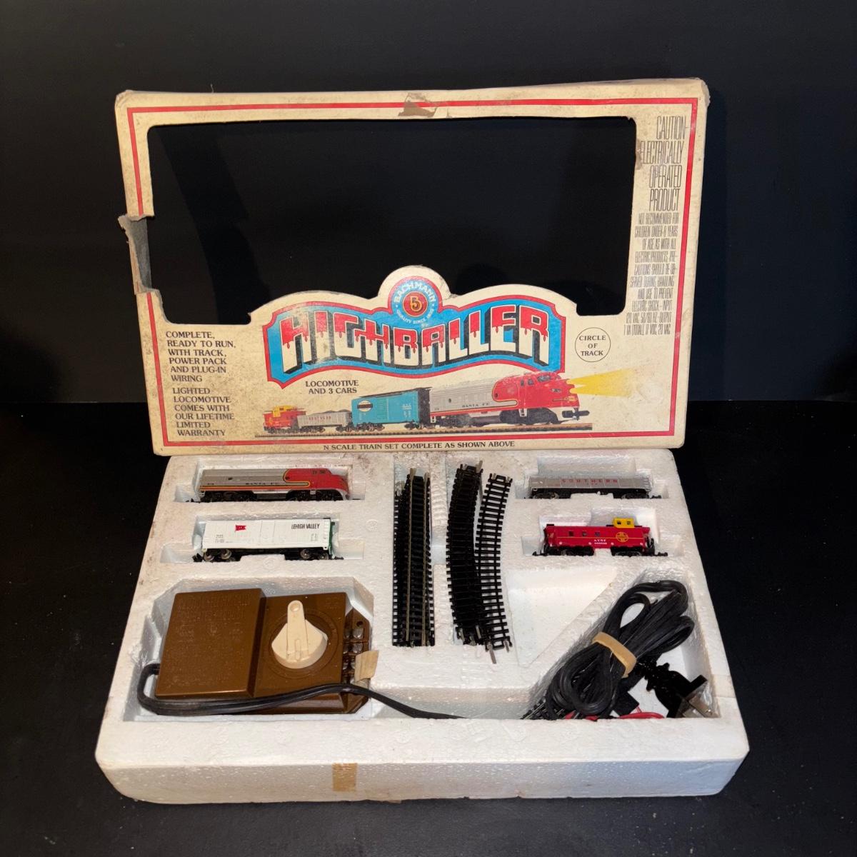 LOT 651: Bachman High Baller N Scale Train Set, K Line Watchman Shanty O/O-27 Scale & Bachman Hill Baller Super Racing Cars