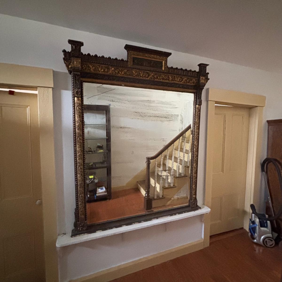 This is an EXTREMELY LARGE mirror I can only assume it will be VERY HEAVY. Help will be needed to move it will REQUIRE at LEAST 3 PEOPLE. If you win this item, please be prepared a LADDER will be necessary there will not be one available. if you do not bring 3 people you will not be allowed to remove it.