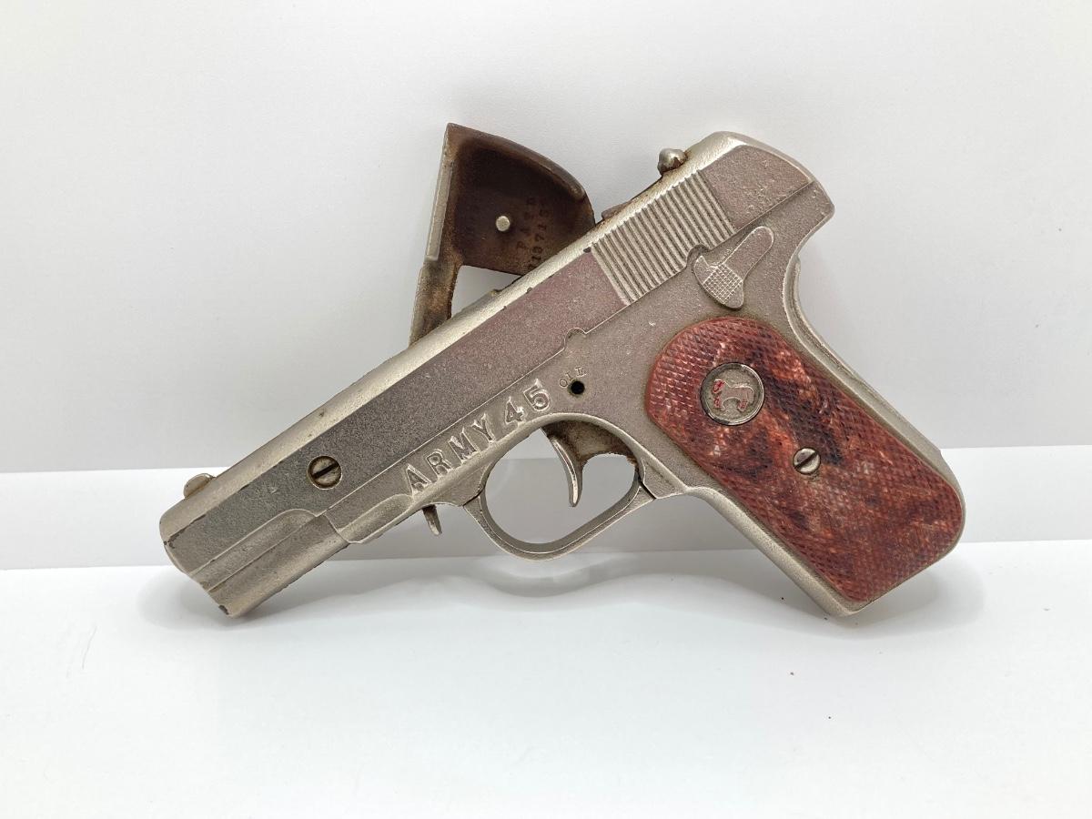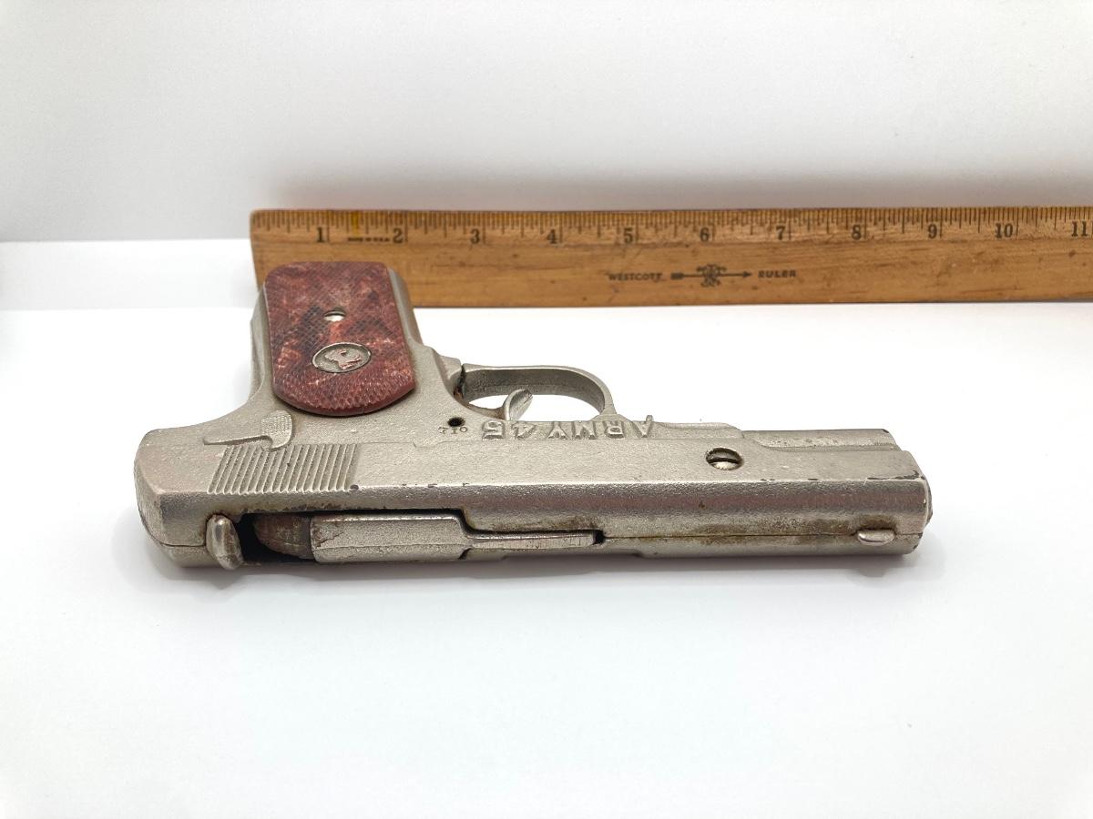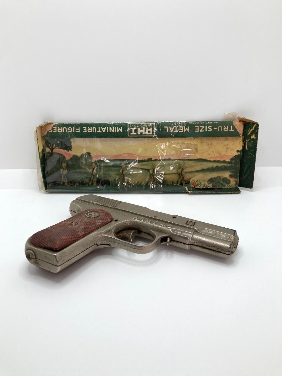 LOT 665: Vintage Toy Army 45 Cap Gun and Tru-Size Metal Miniature Toy Figurines