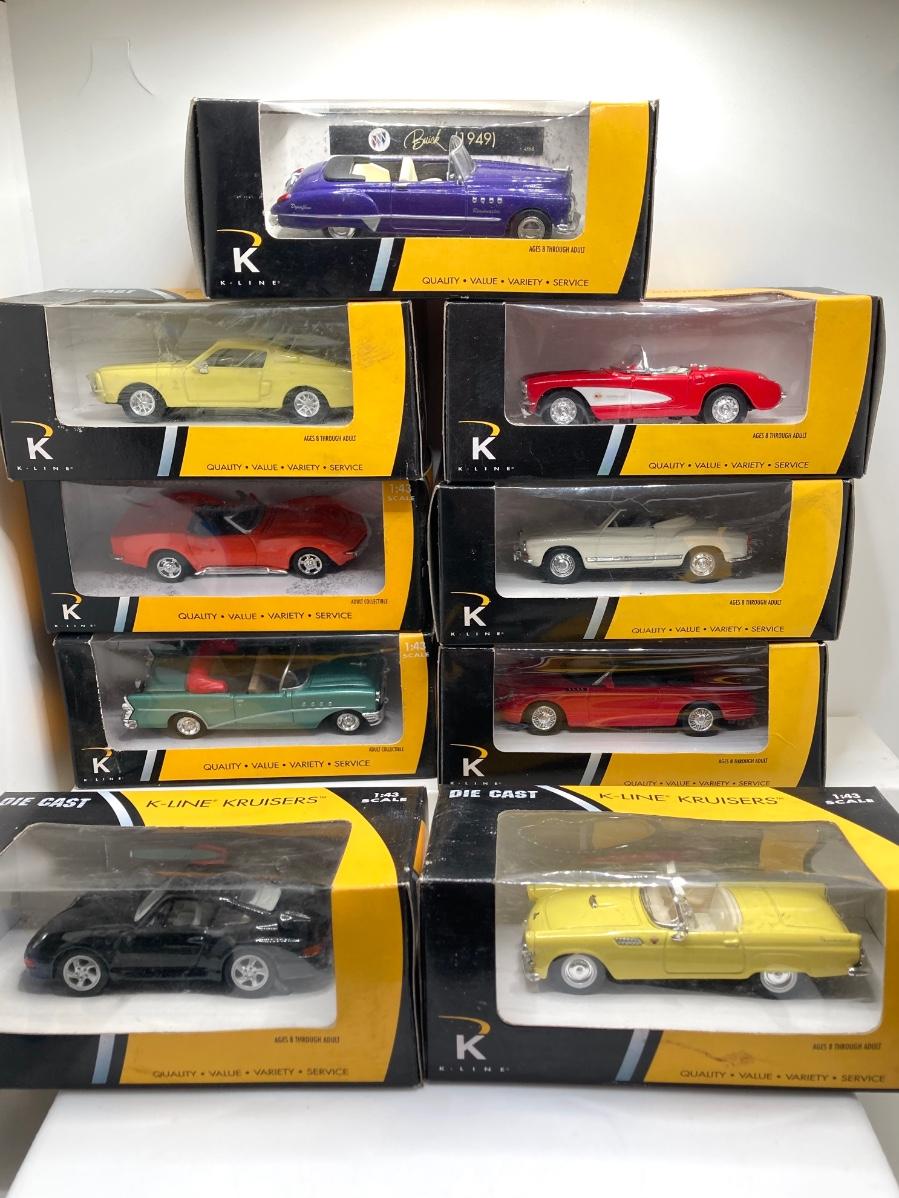 LOT 668: Nine Die Cast Toy Collector Cars by K-Line Kruisers - 1:43 Scale in Original Boxes