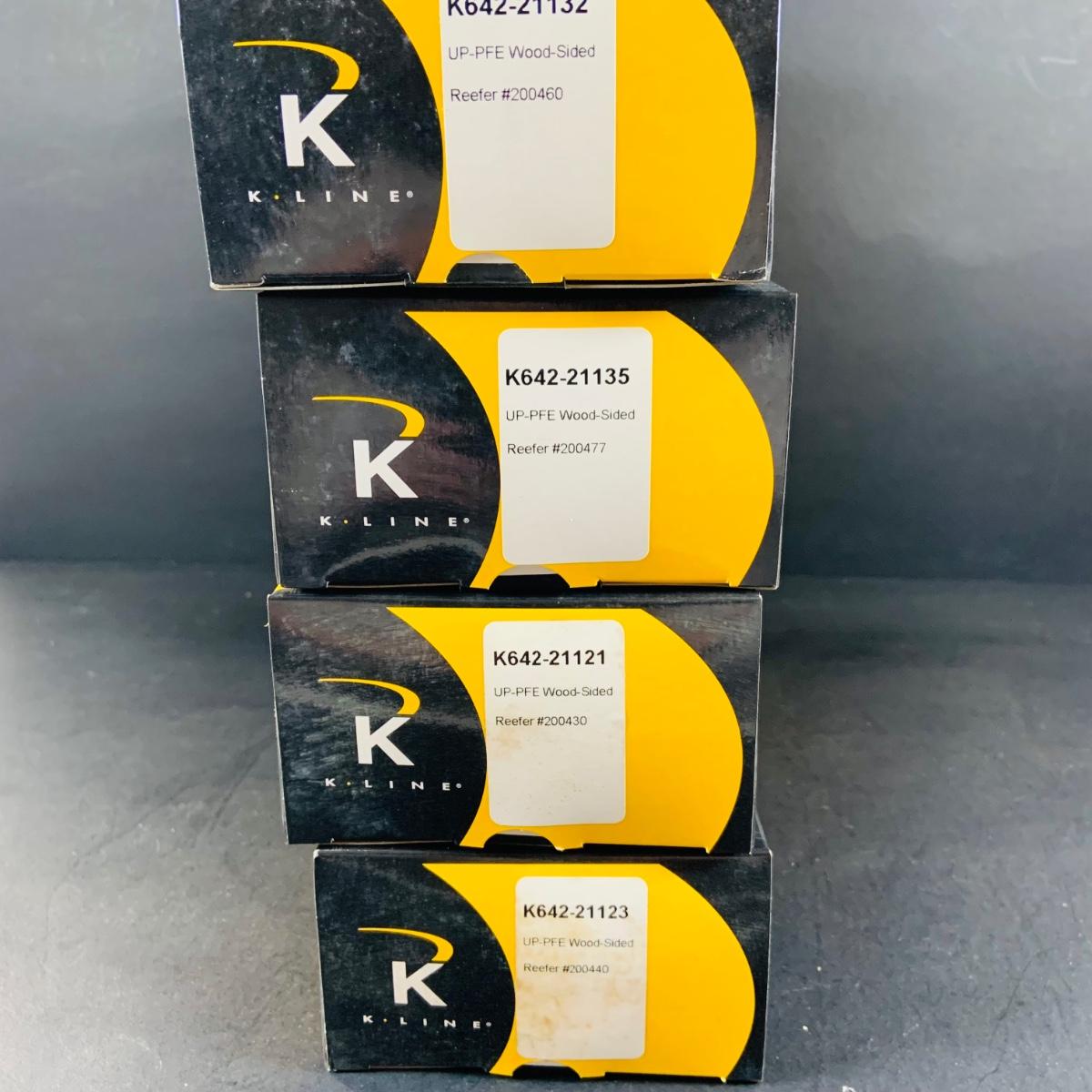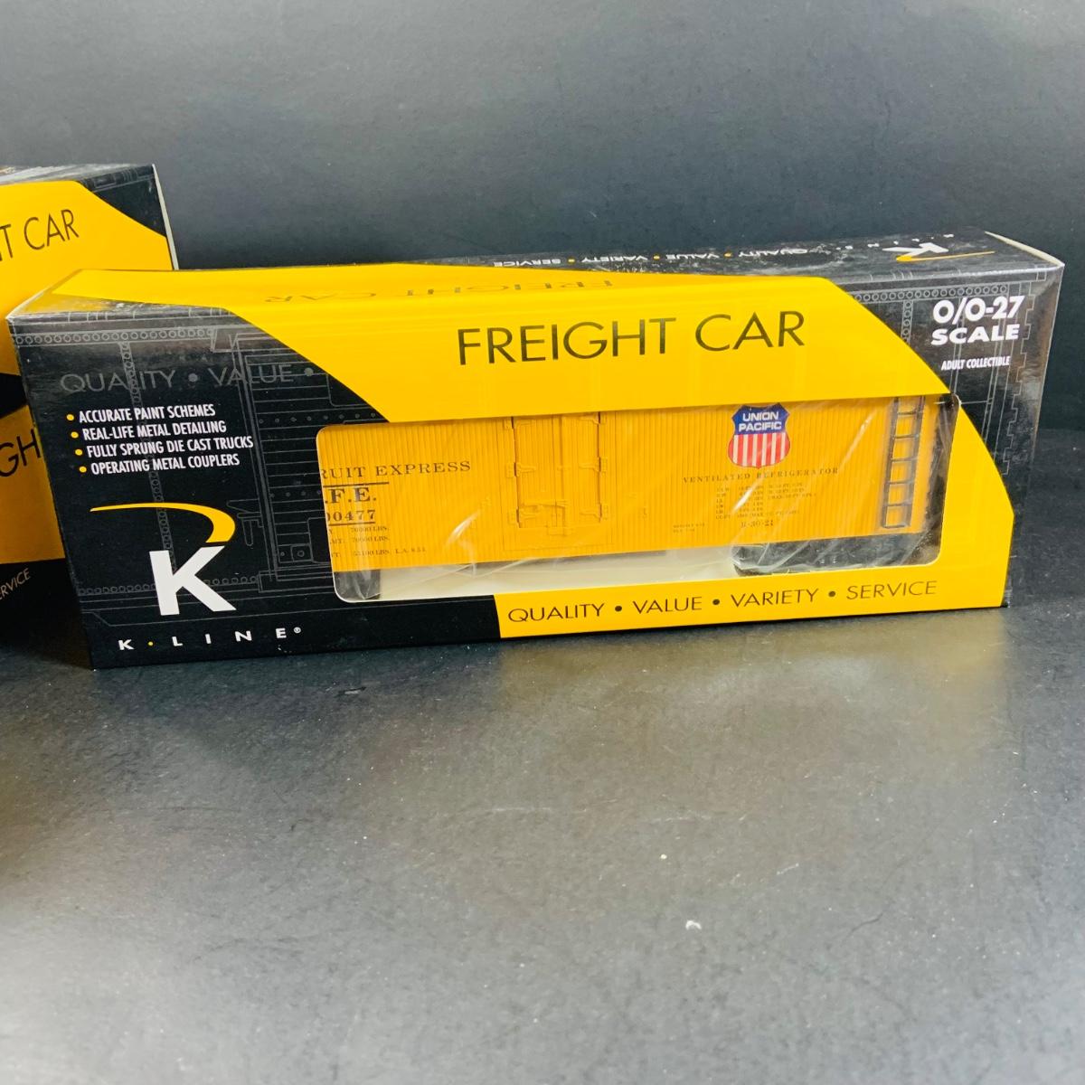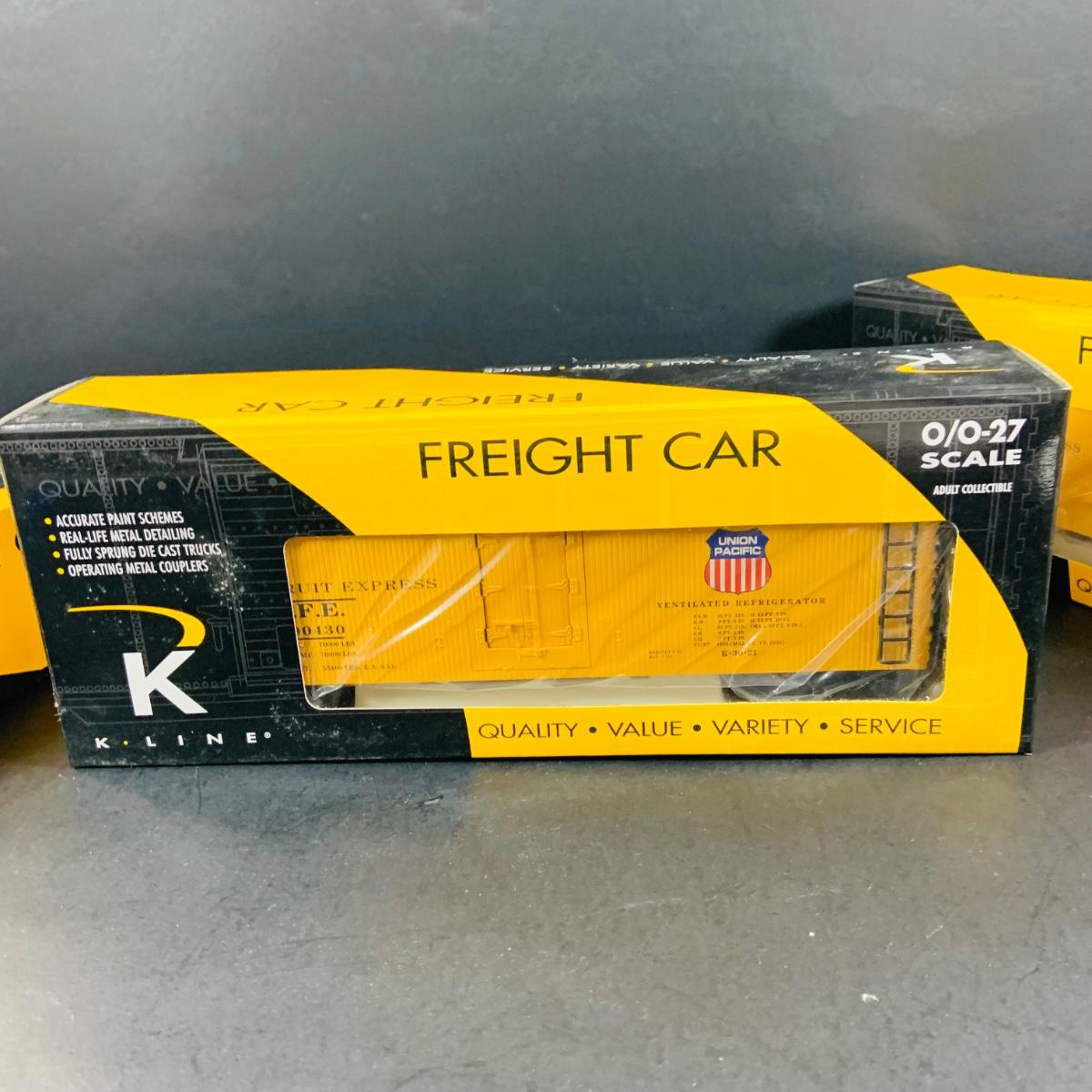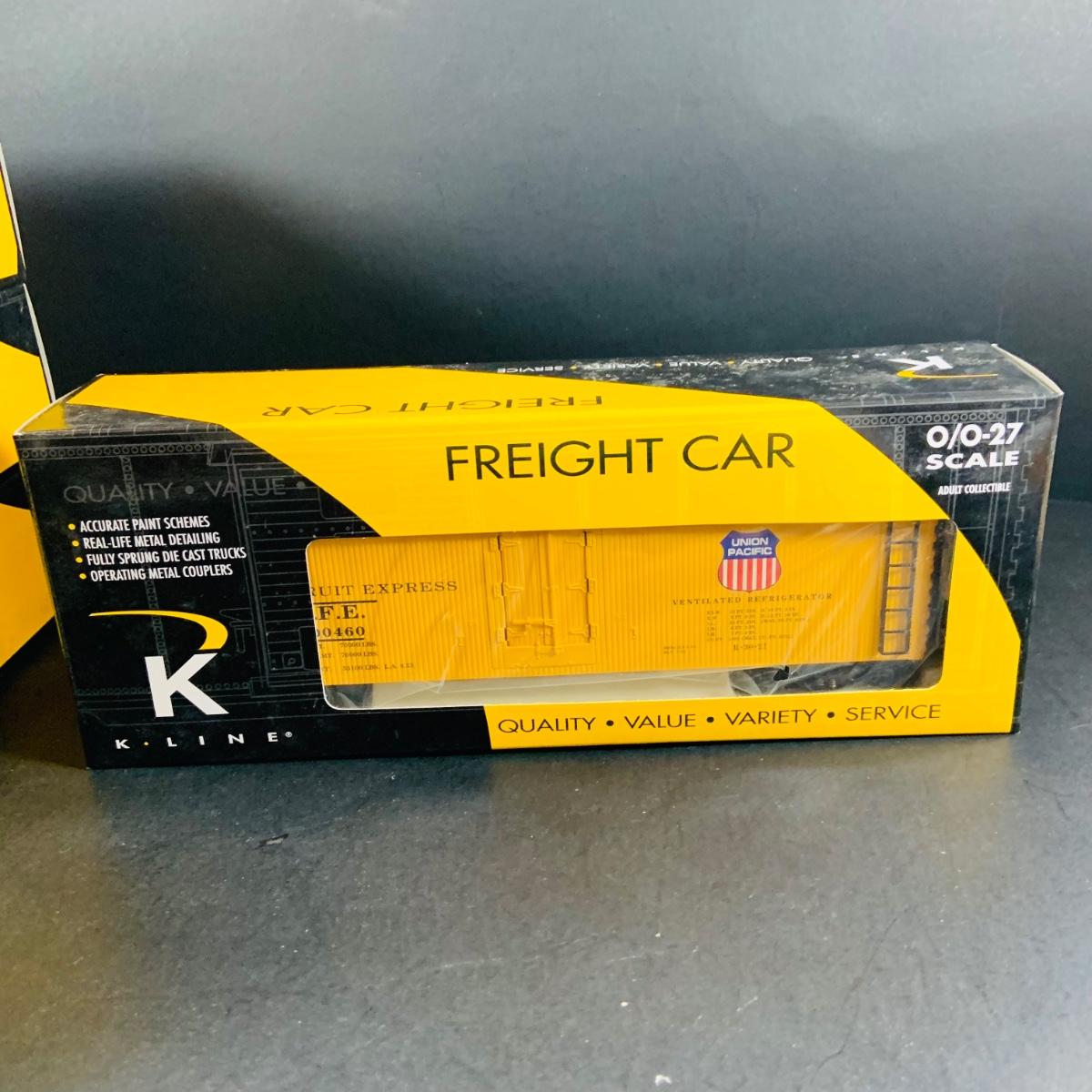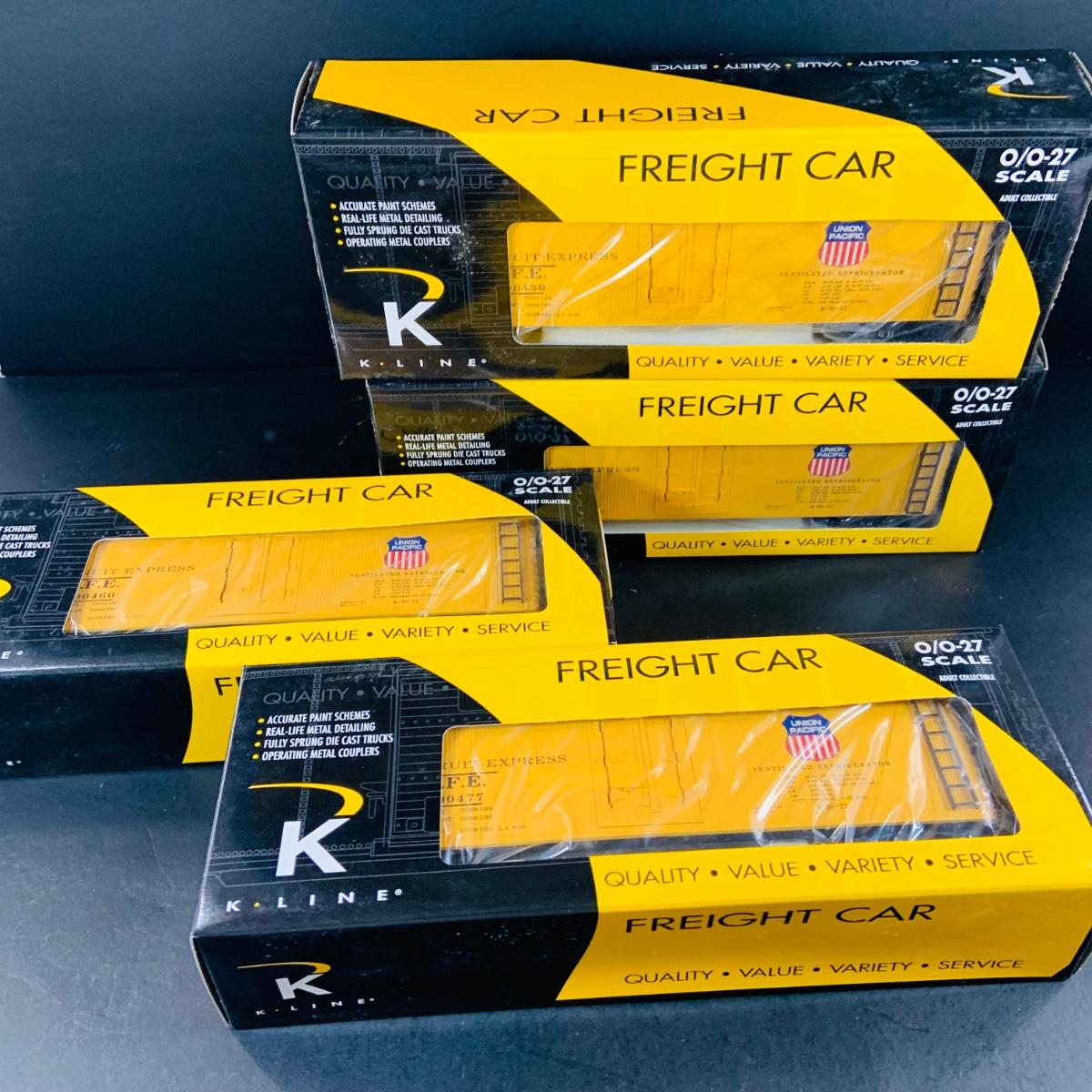 LOT 678: Set of (4) K-Line "Wood-Sided" O/0-27 Scale Union Pacific Freight Cars 200460, 200477, 200430, 200440