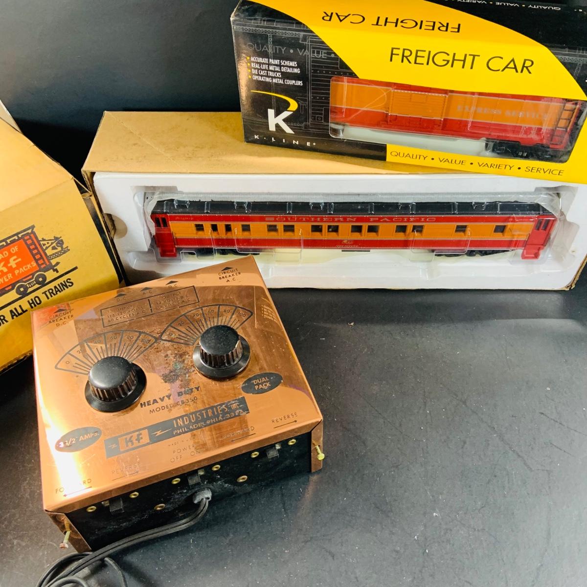 LOT 682: KF Heavy Duty Power Pack for HO Trains In Box, K Line Souther Pacific Cars - KK641-2032 SP Express Service Boxcar and K4888-0012 SK Daylight Lake Hancock Pullman