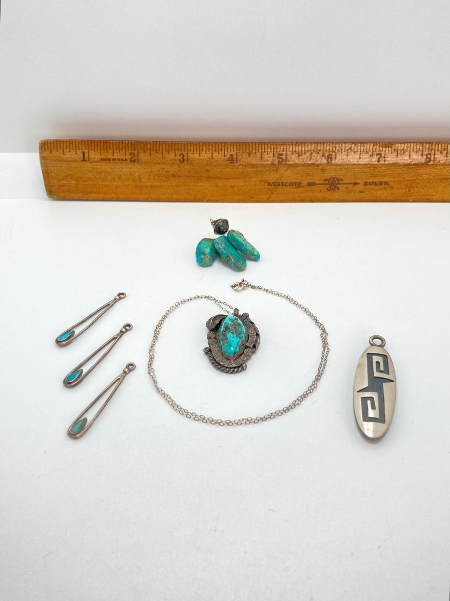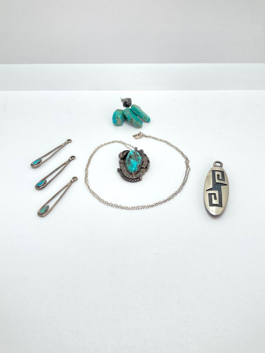 LOT 698: Turquoise and Unmarked Silver Artisan Jewelry
