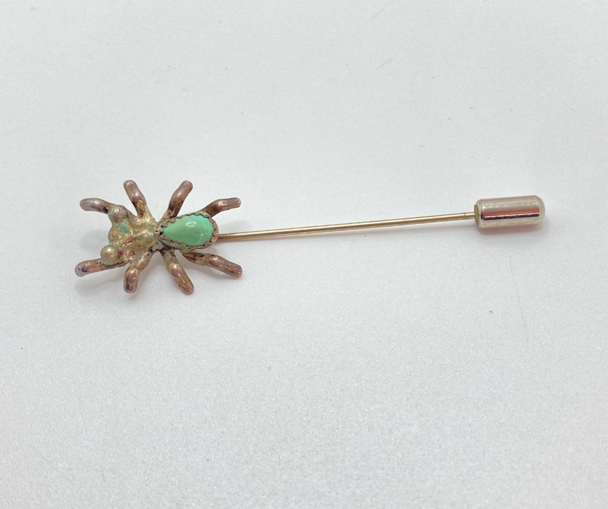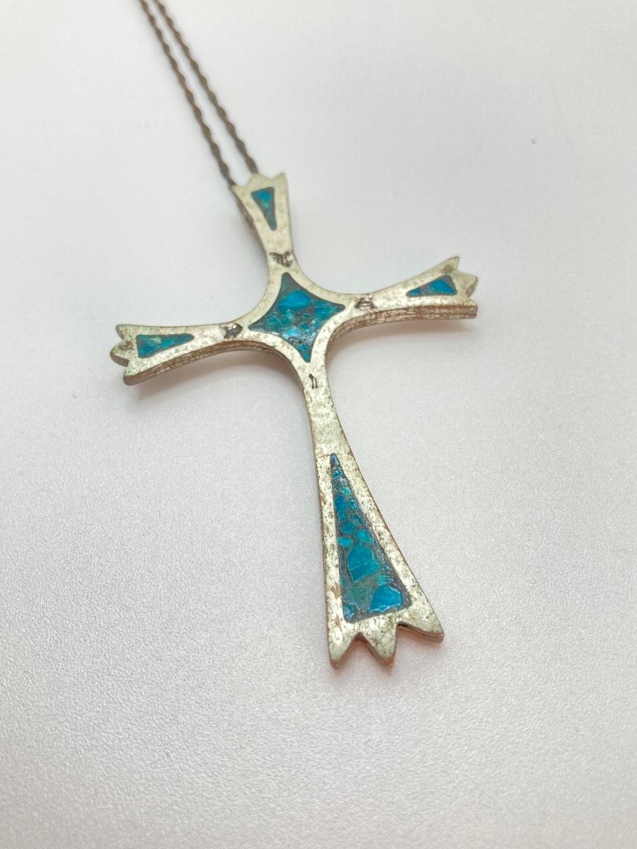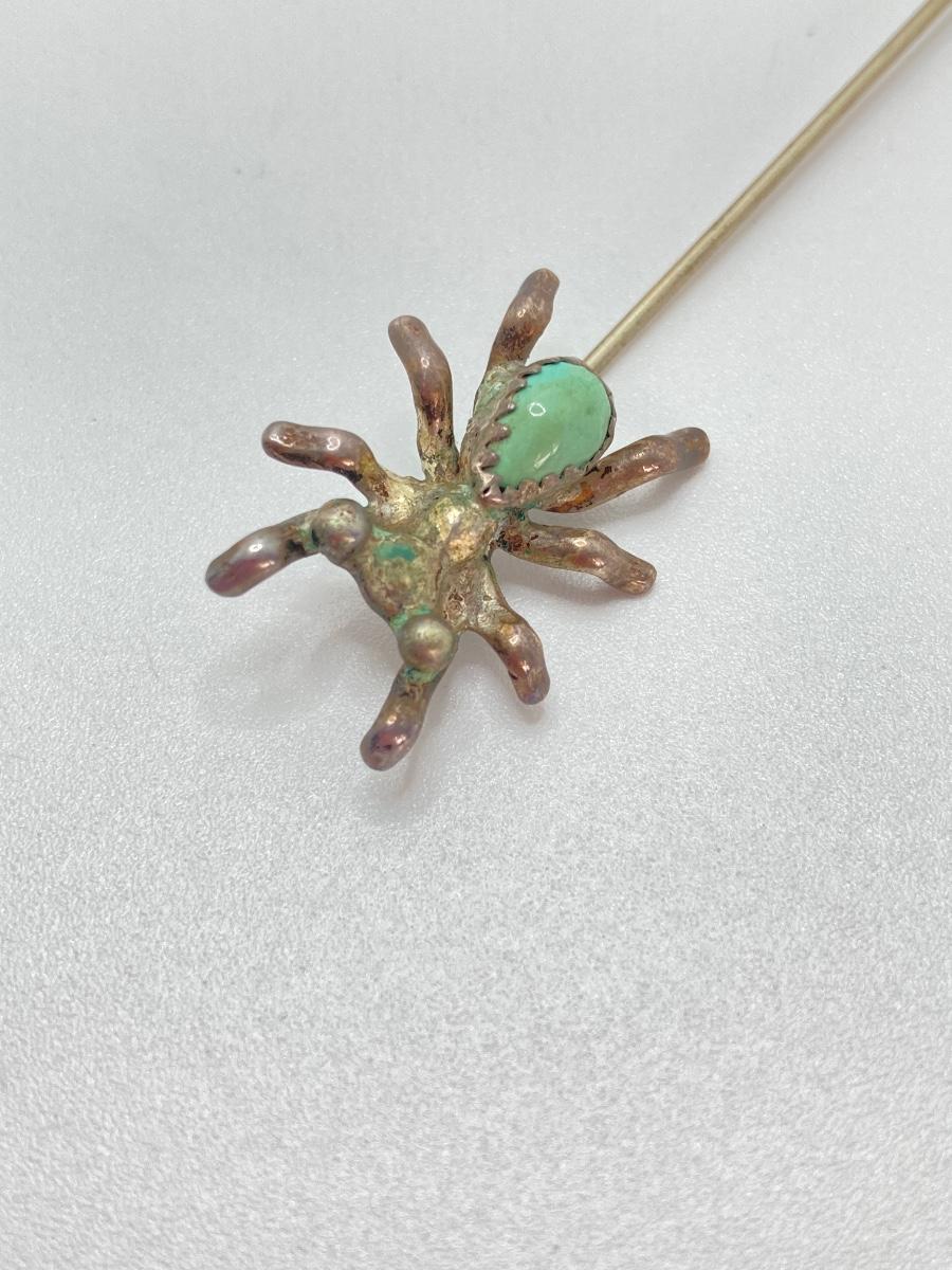 LOT 710: Turquoise and Unmarked Silver Tone Hand Crafted Jewelry - Cross, Marijuana Leaf Pendants and Spider Stick Pin