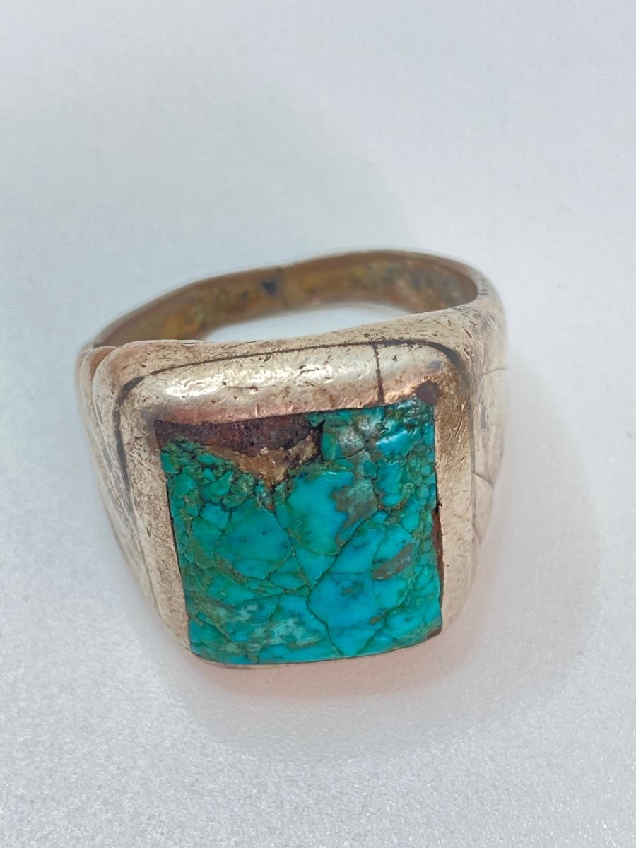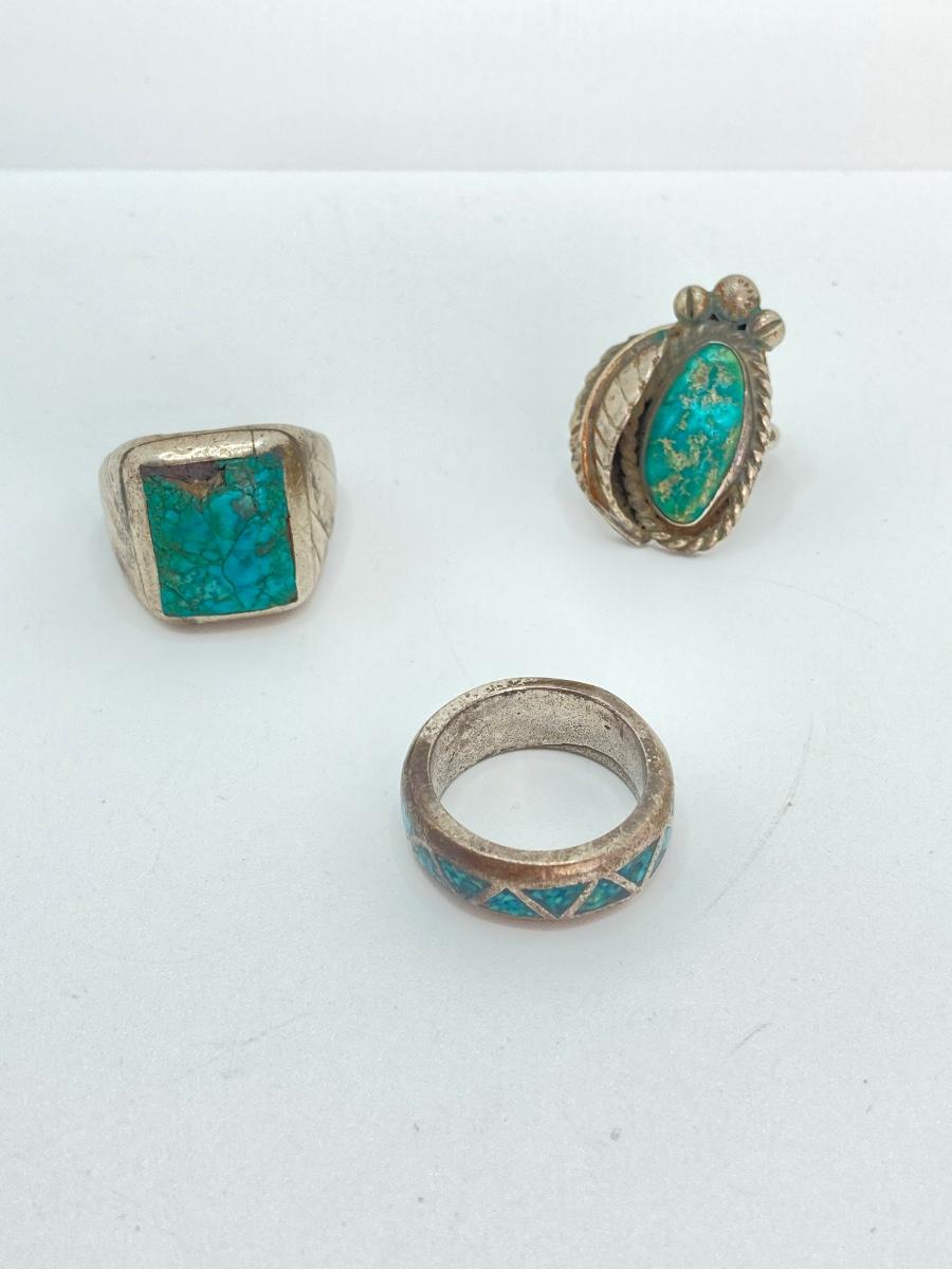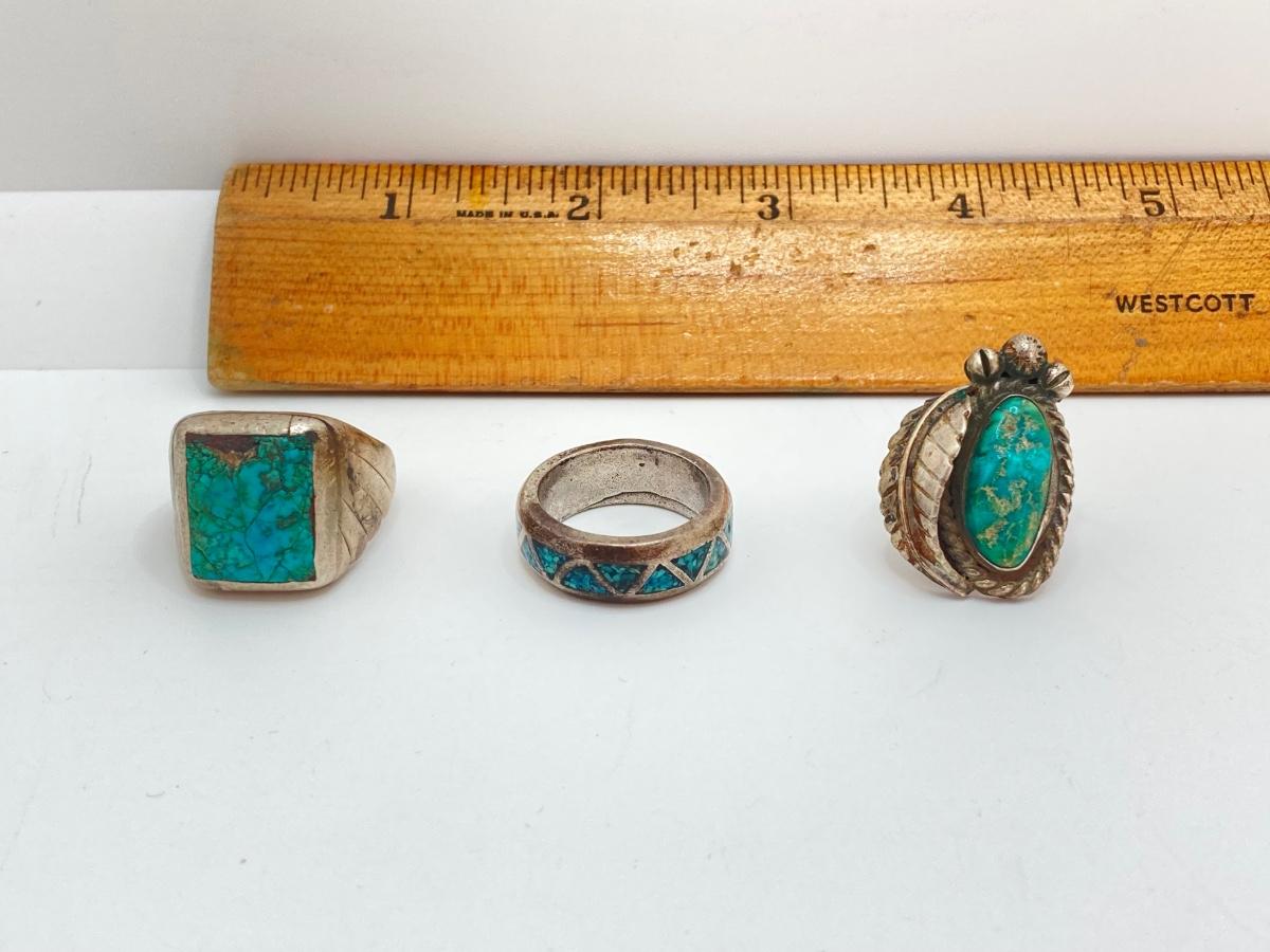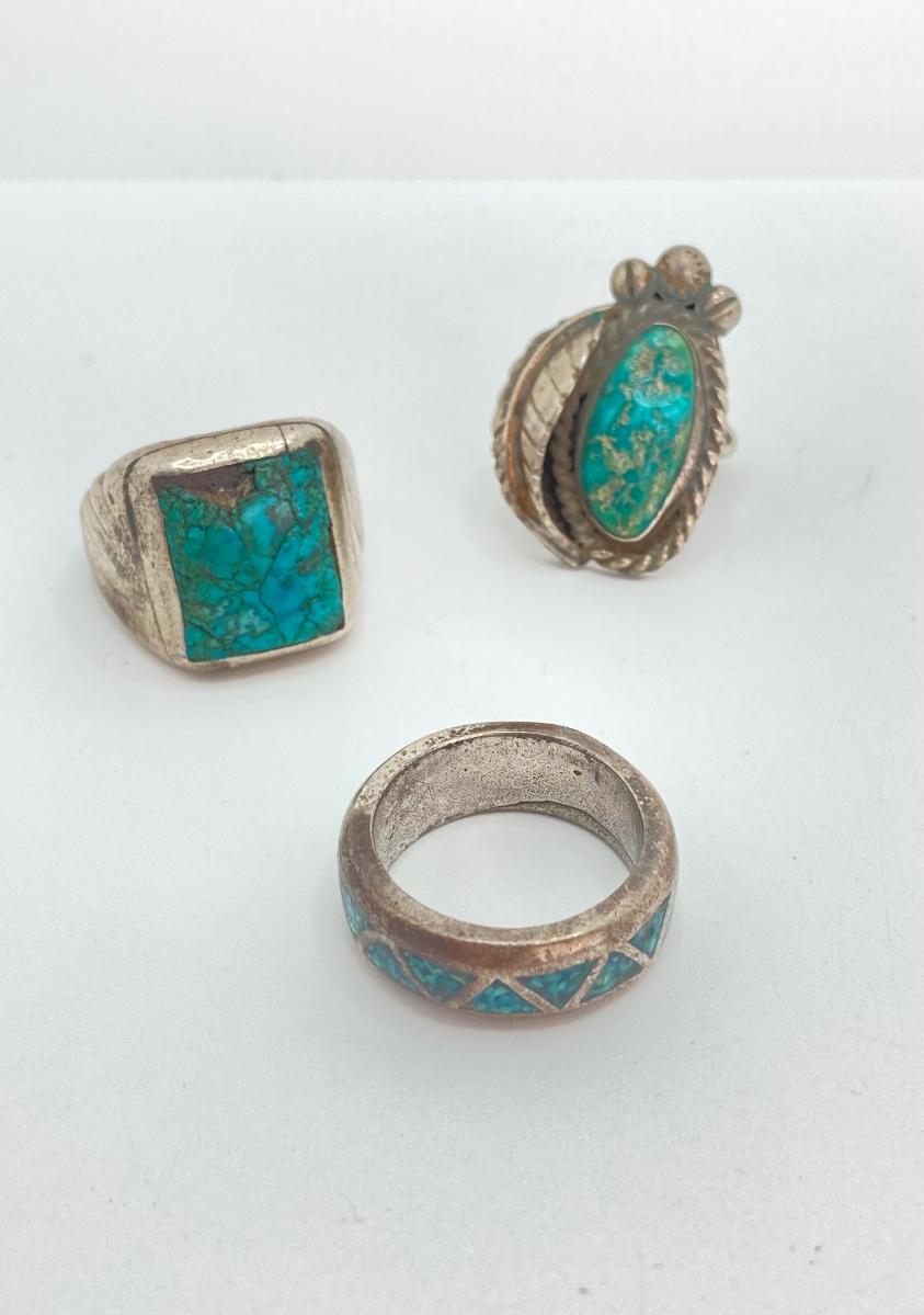 LOT 713: Three Hand Crafted Turquoise Rings - Sizes 11 to 13