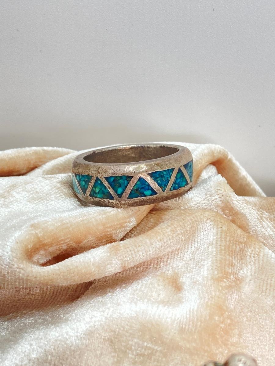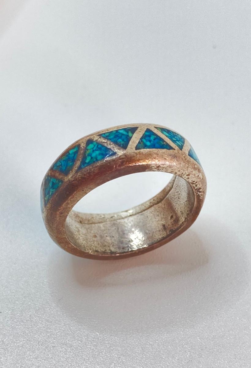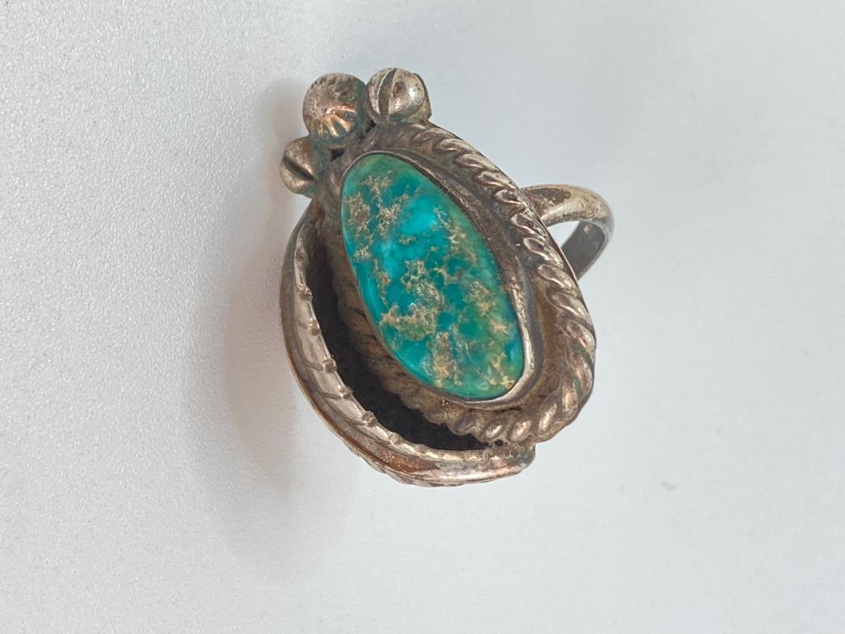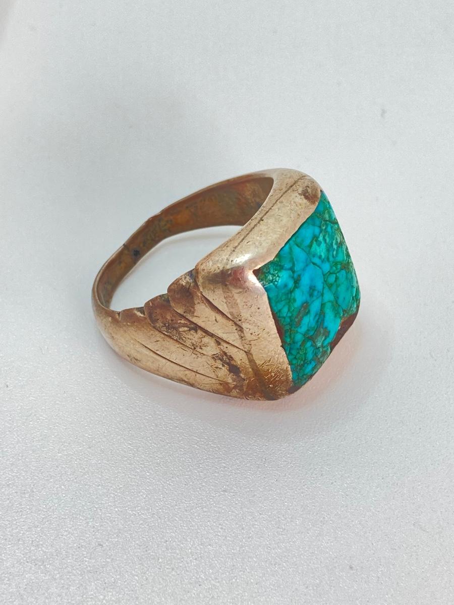 LOT 713: Three Hand Crafted Turquoise Rings - Sizes 11 to 13