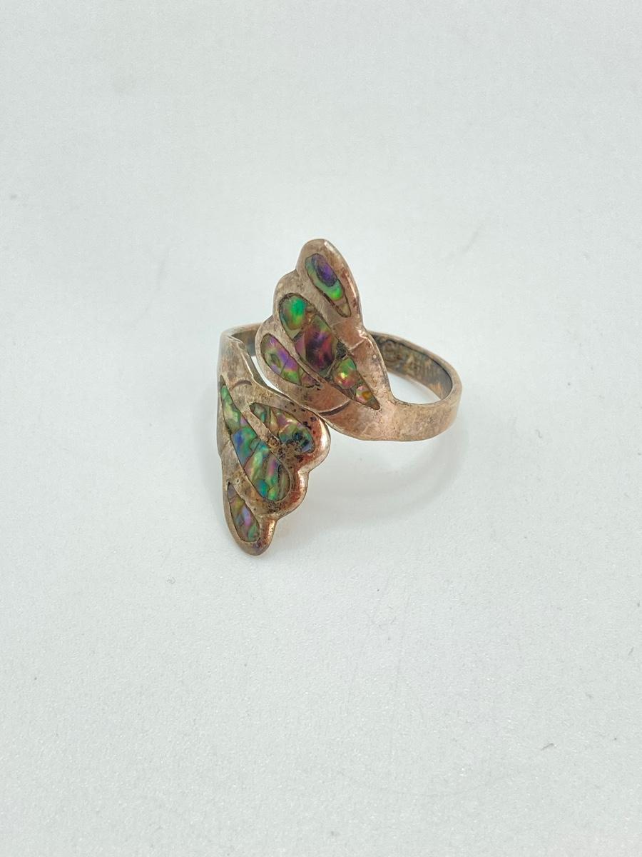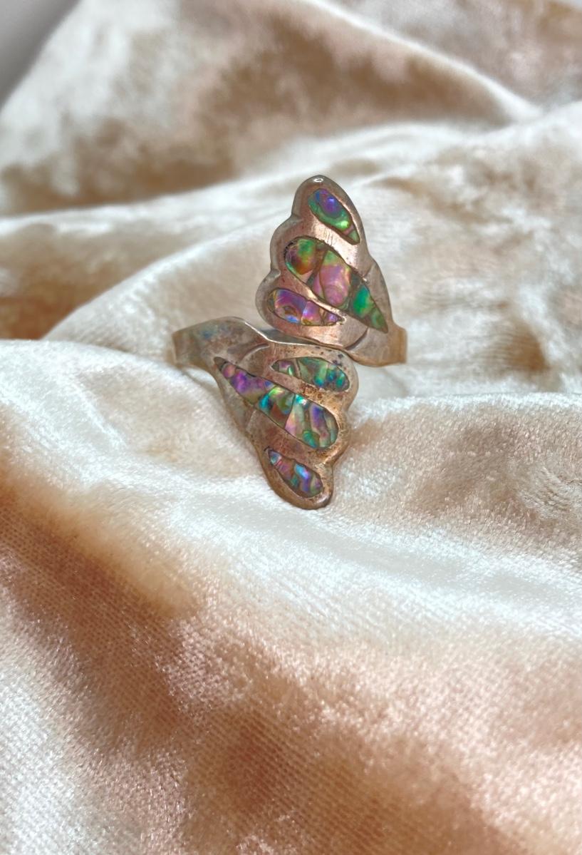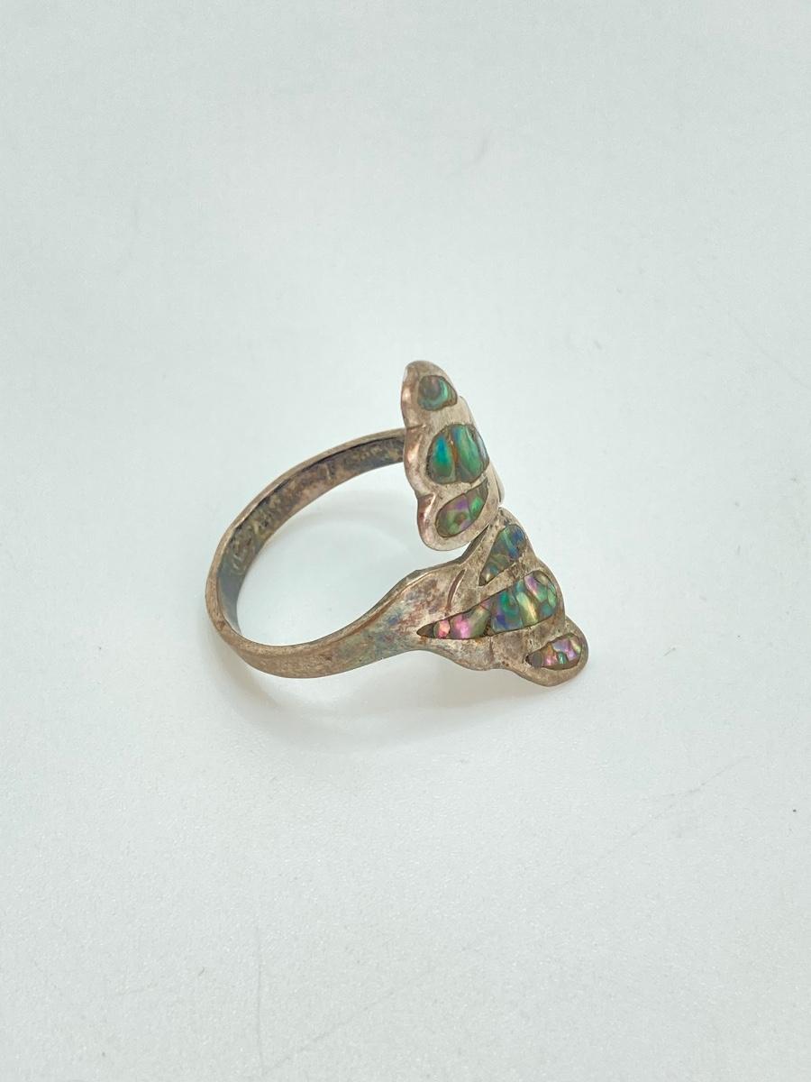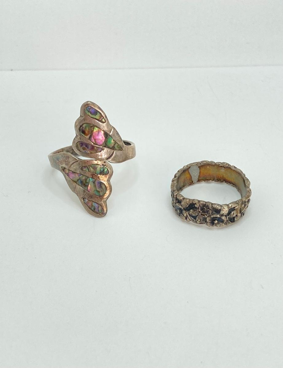 LOT 716: Vintage Abalone Adjustable Ring and Sterling Band