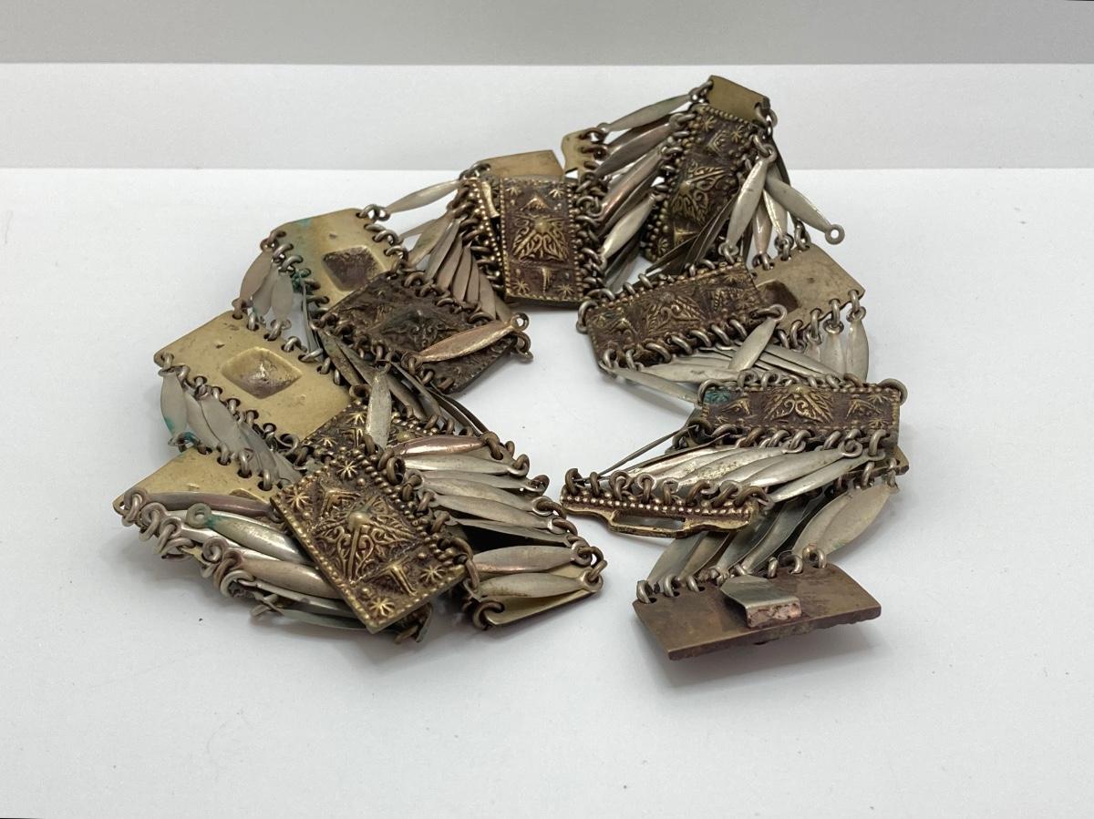 LOT 723: Sterling Silver Mexico Decorative Concho Type Link Belt - 31.5"