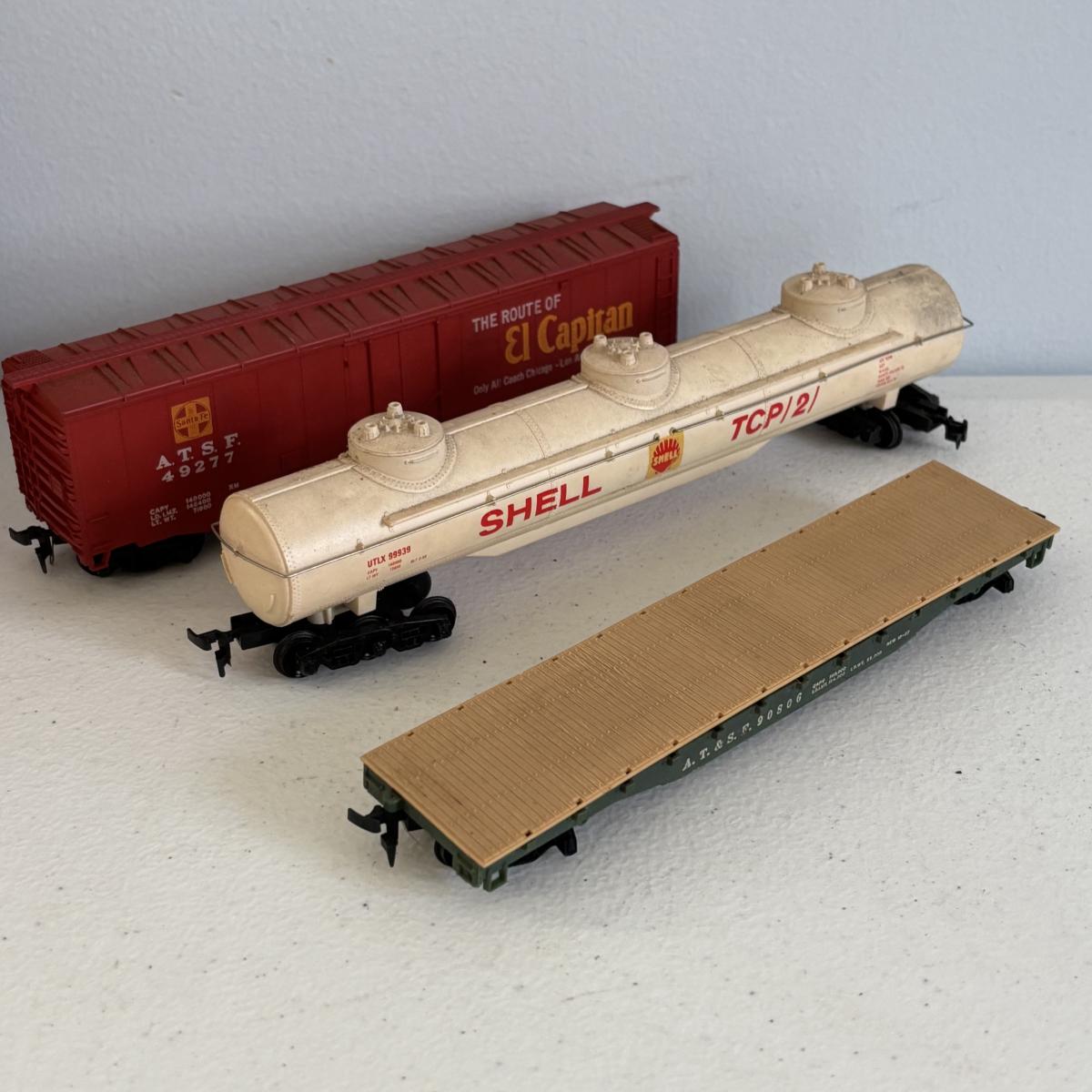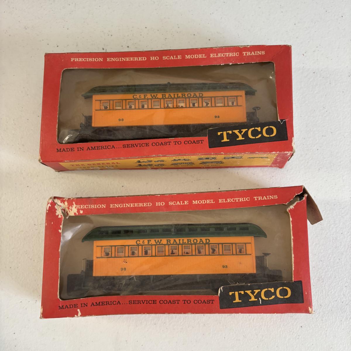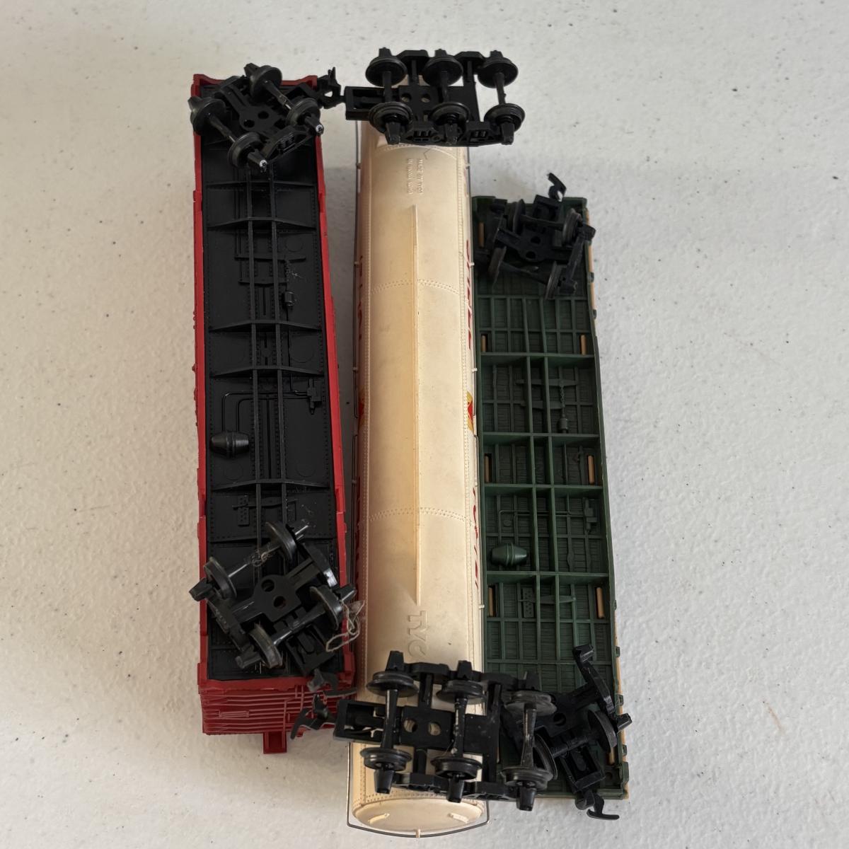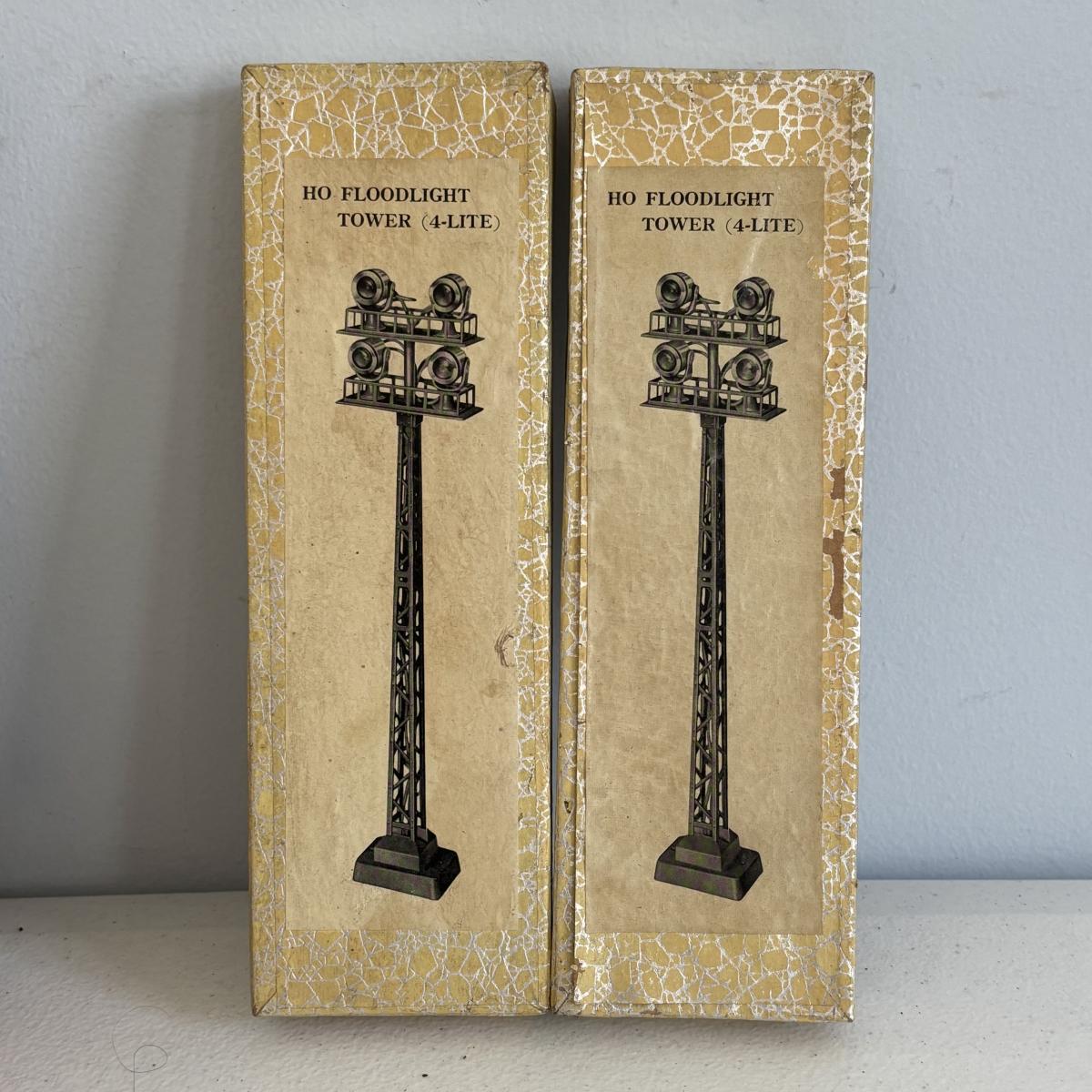 LOT 727: Tyco Car HO Scale Cars, HO Flood Light Towers. Bachman HO Union Pacific 866 Locomotive, Bachman HO Penn Central 9451, Ideal Model Crossing Gate & More