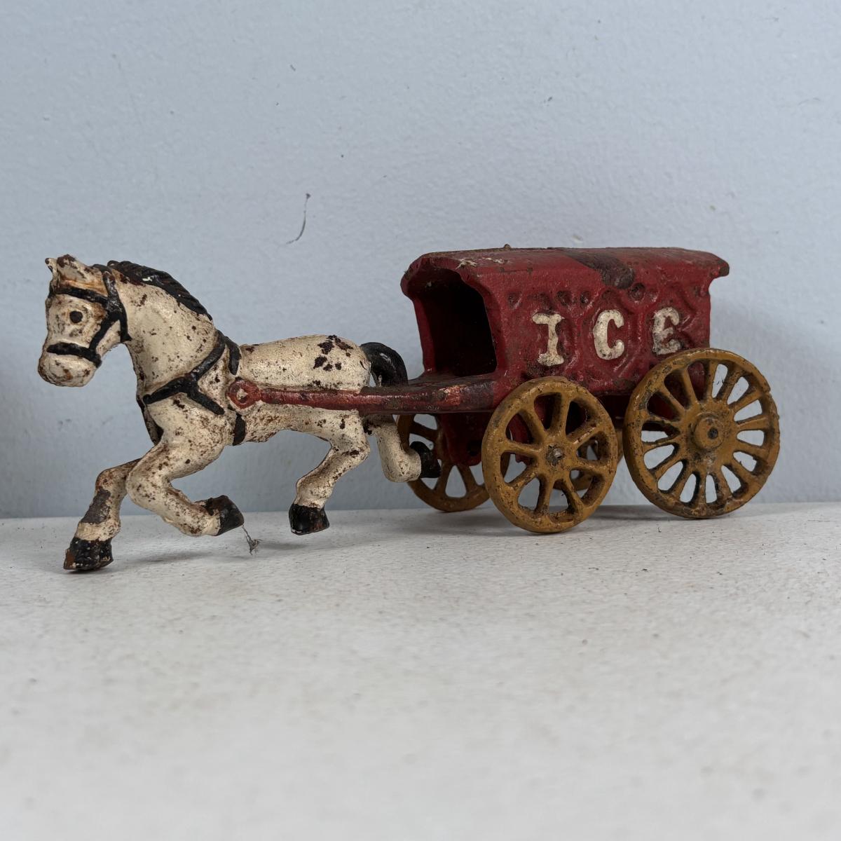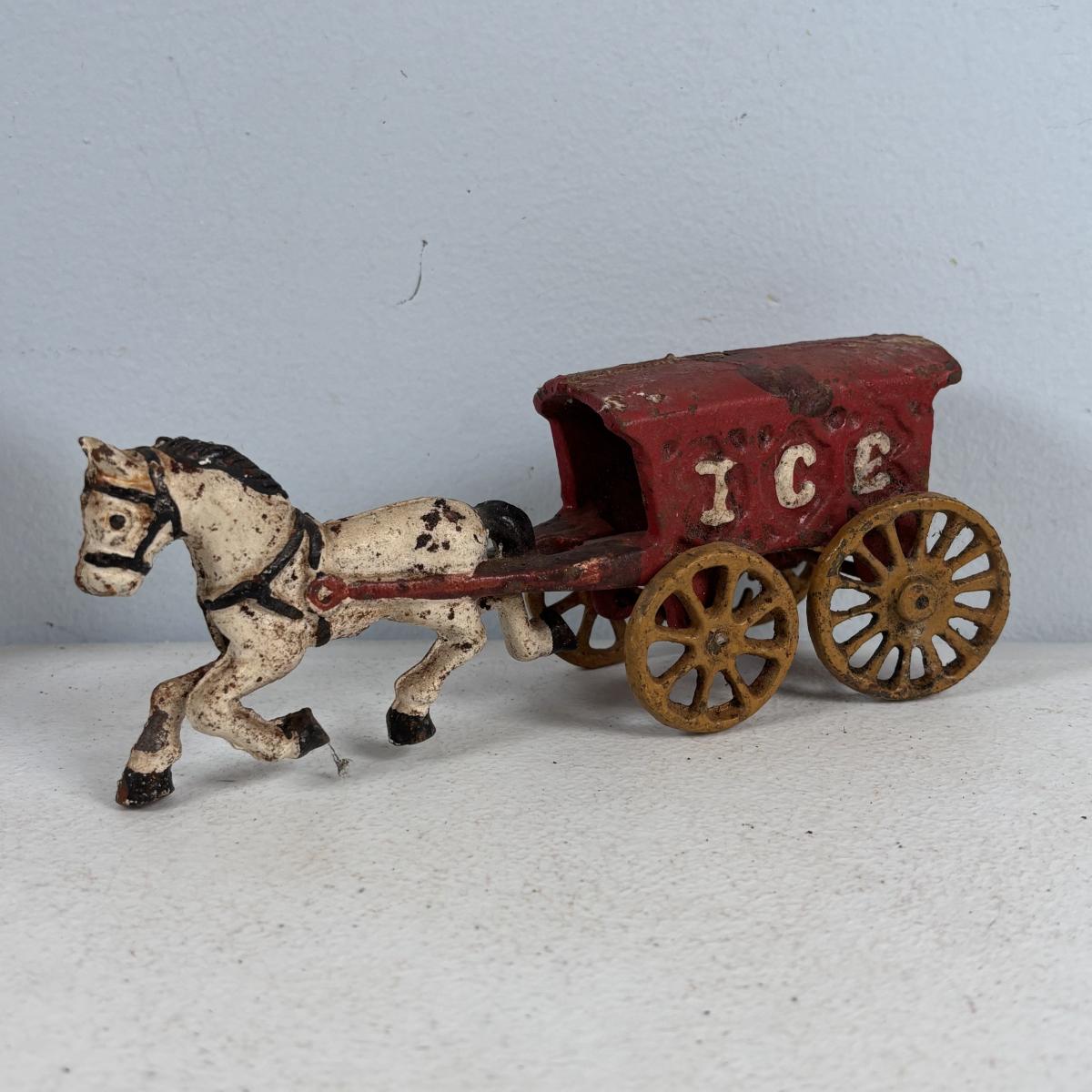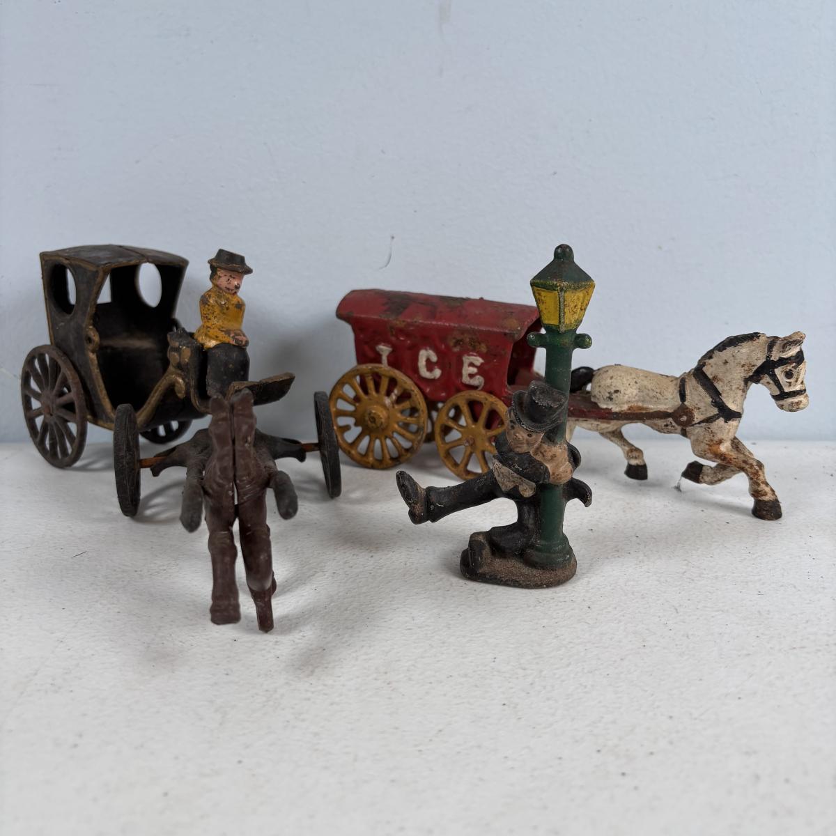 LOT 733: Vintage Cast Iron Ice Cart, Cartridge and Hobo w/Street Lantern