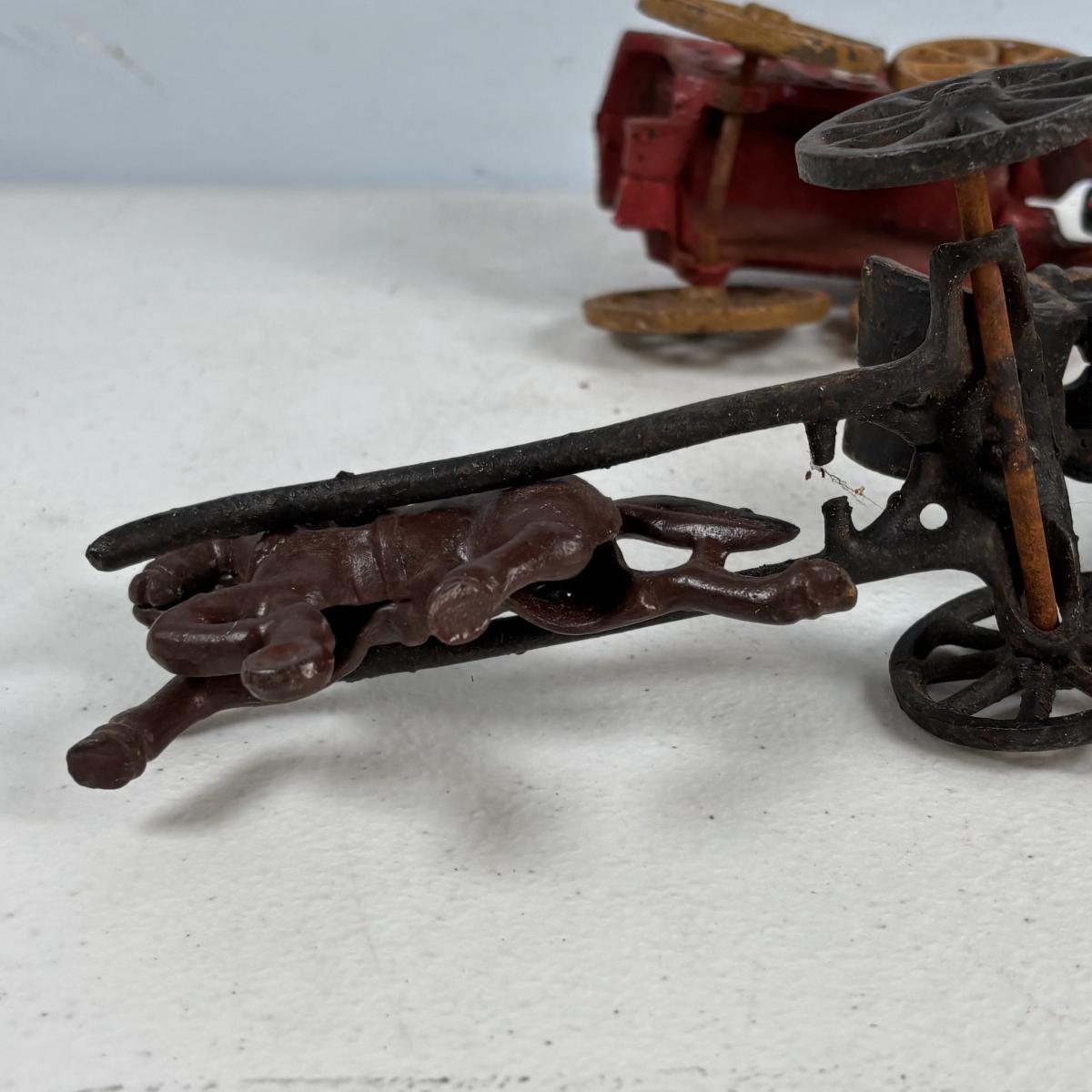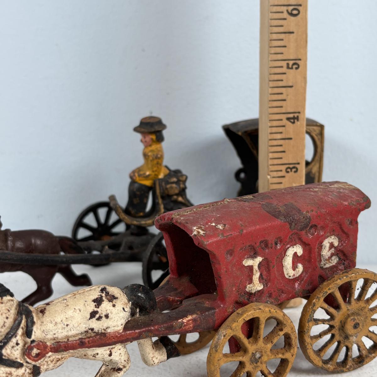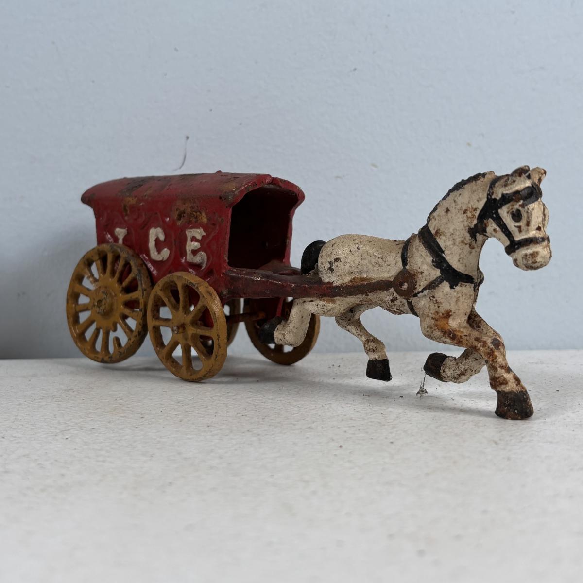 LOT 733: Vintage Cast Iron Ice Cart, Cartridge and Hobo w/Street Lantern