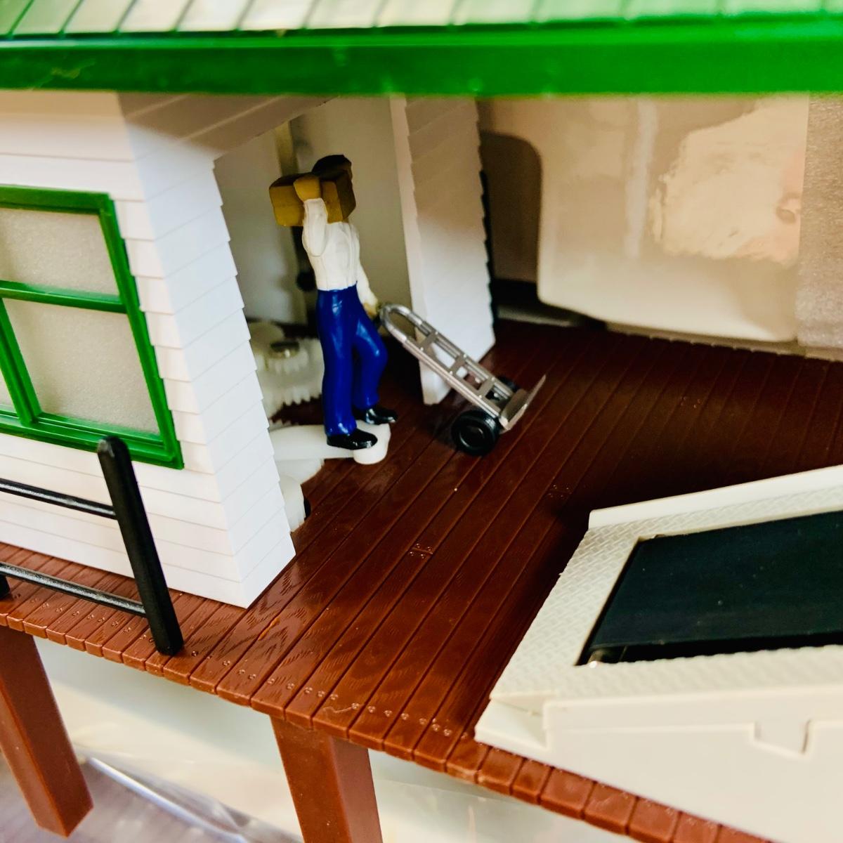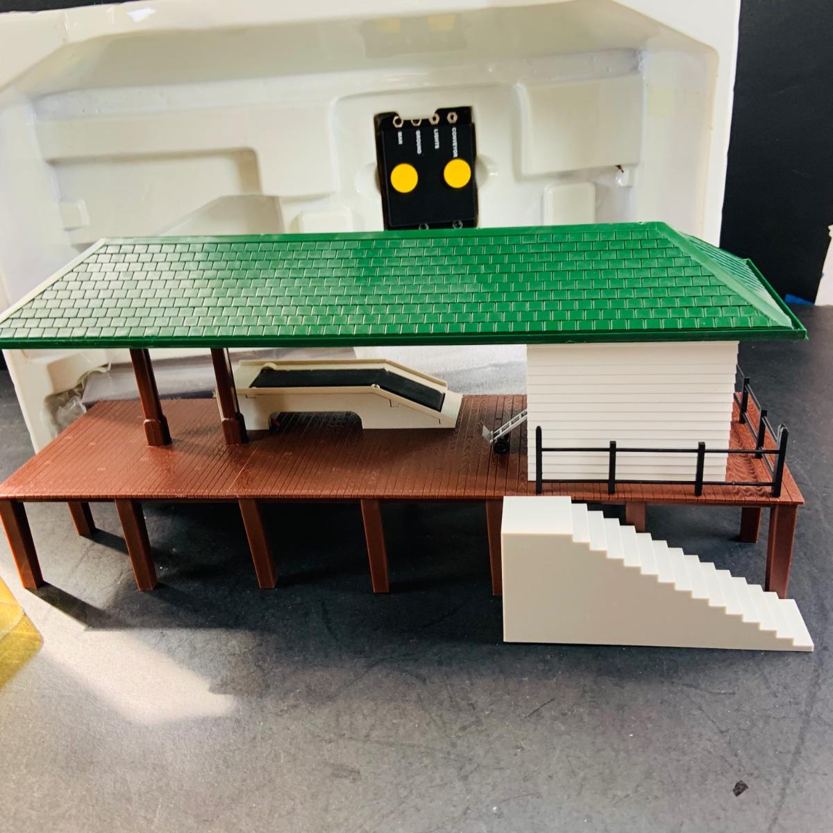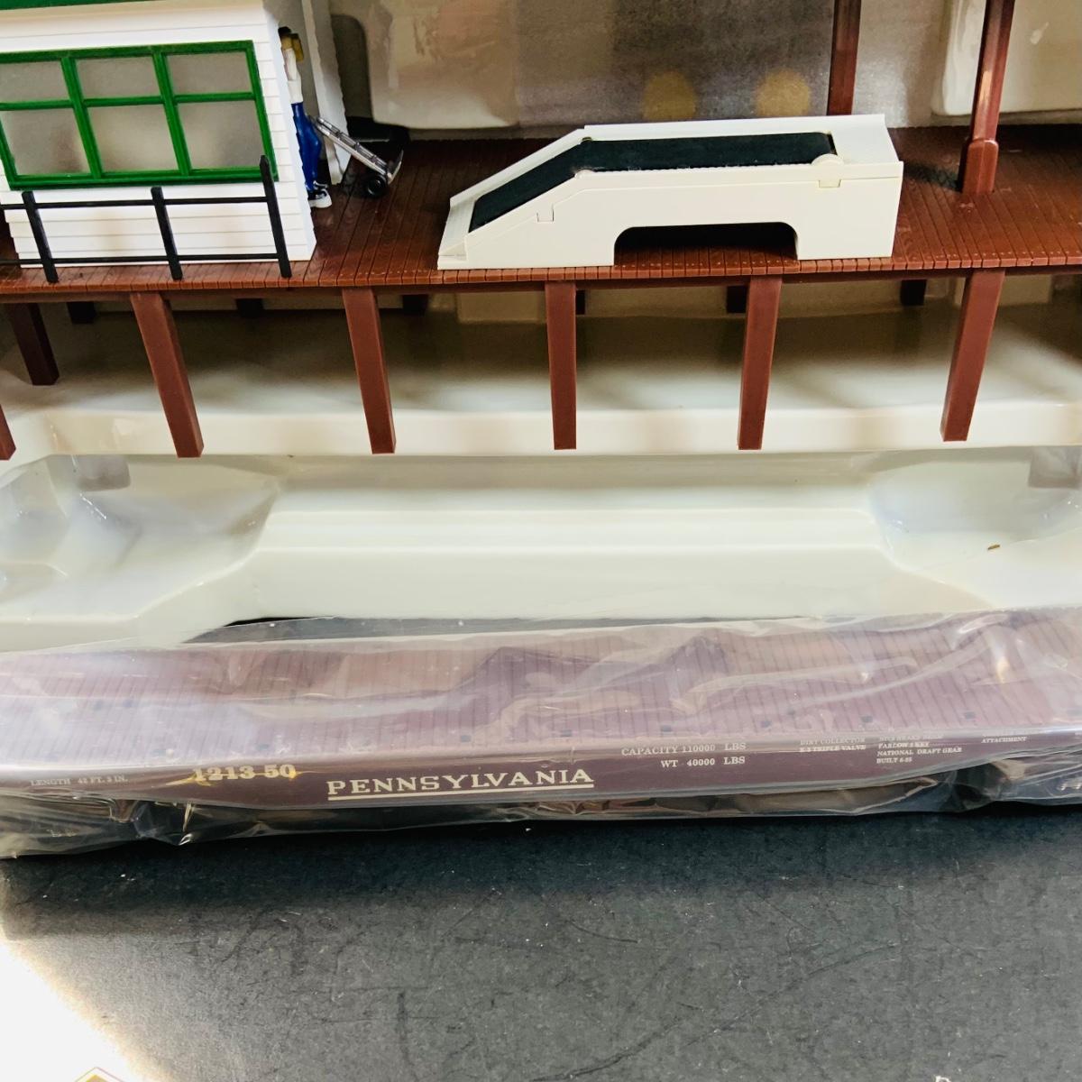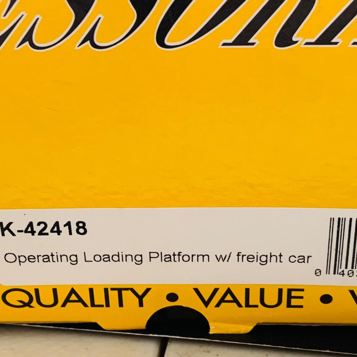 LOT 738: K-Line Action Accessory - K-Lineville Freight Depot Operating Loading Platform with Freight Car