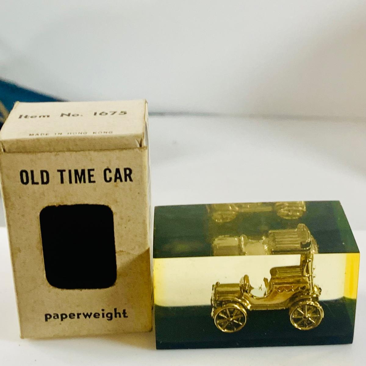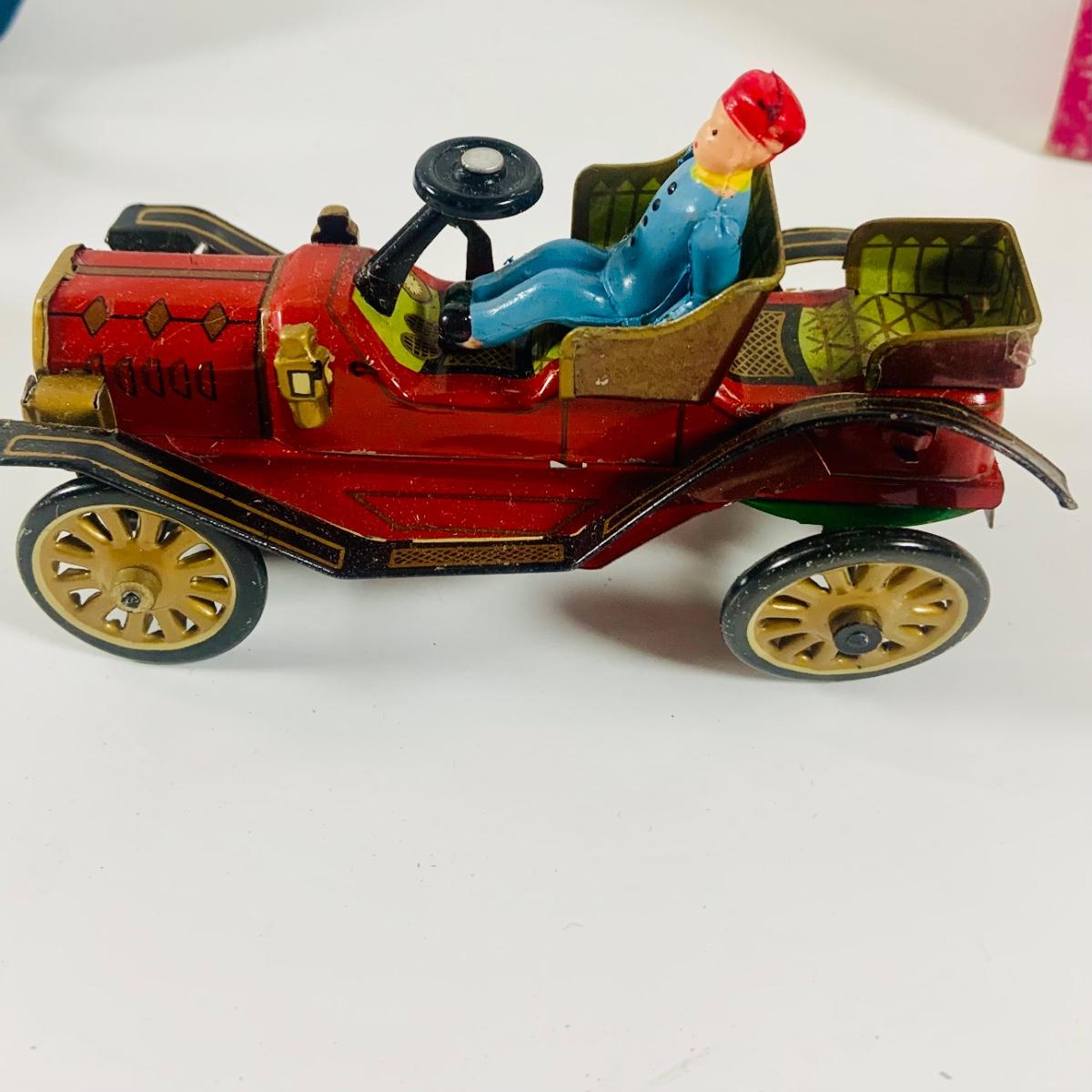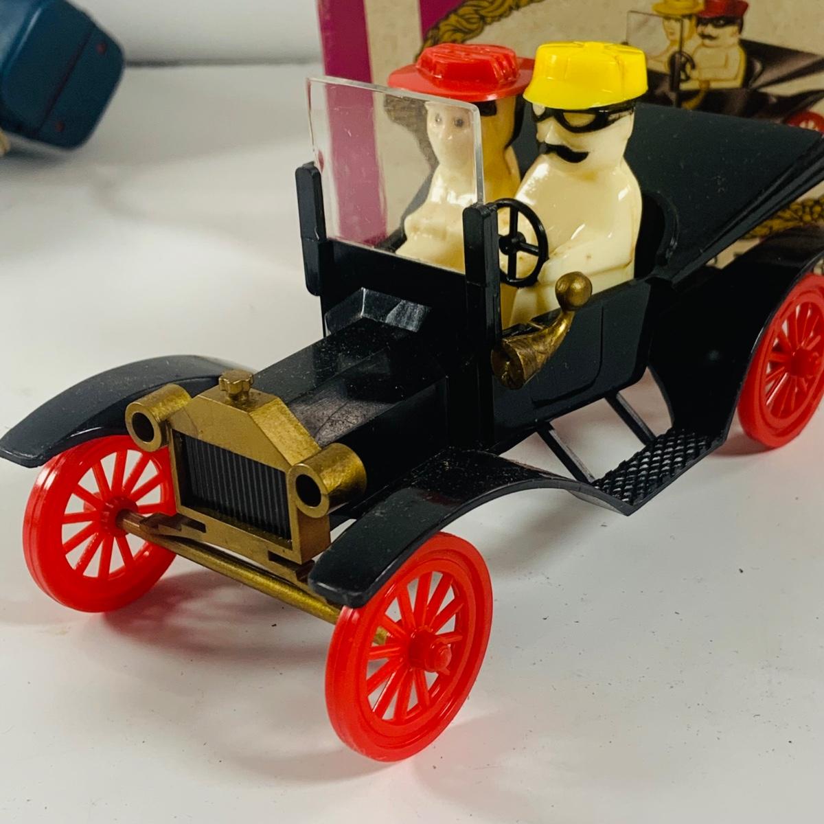 LOT 521:Vintage Collection Tin Toy Cars, Model T Plastic Salt and Pepper Shake Set, Pencil Shapener and Paperweight