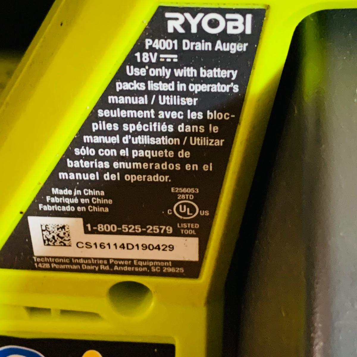 LOT524: Ryobi One Drain Auger