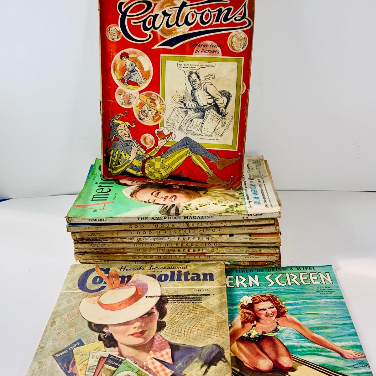 LOT526: Collection of Early 20th Century Magazines Including Cosmopolitan , Good House Keeping and Collection of Political Cartoons and More
