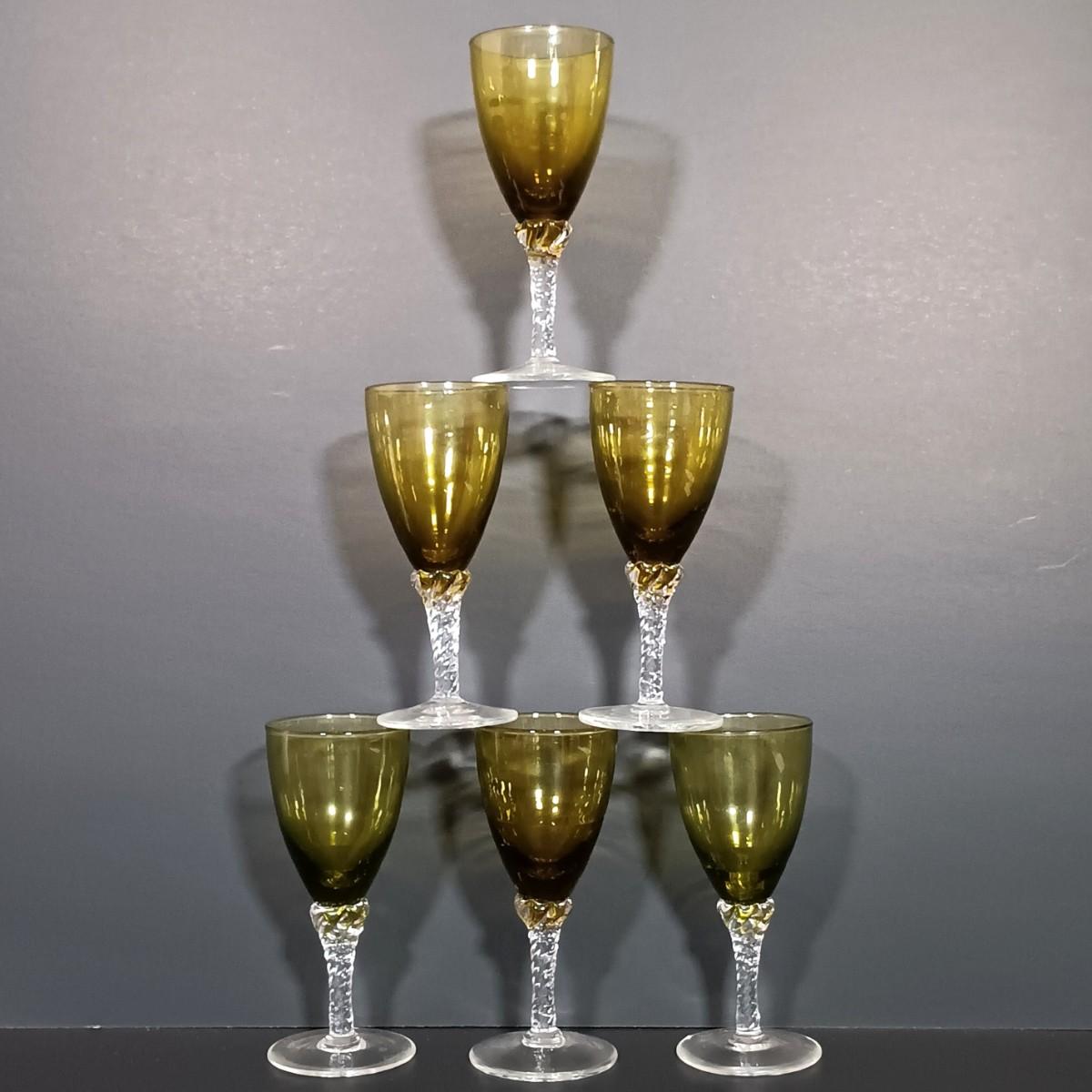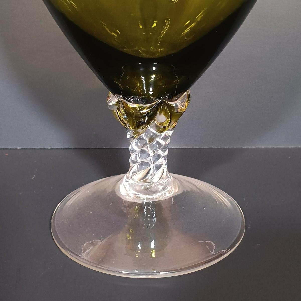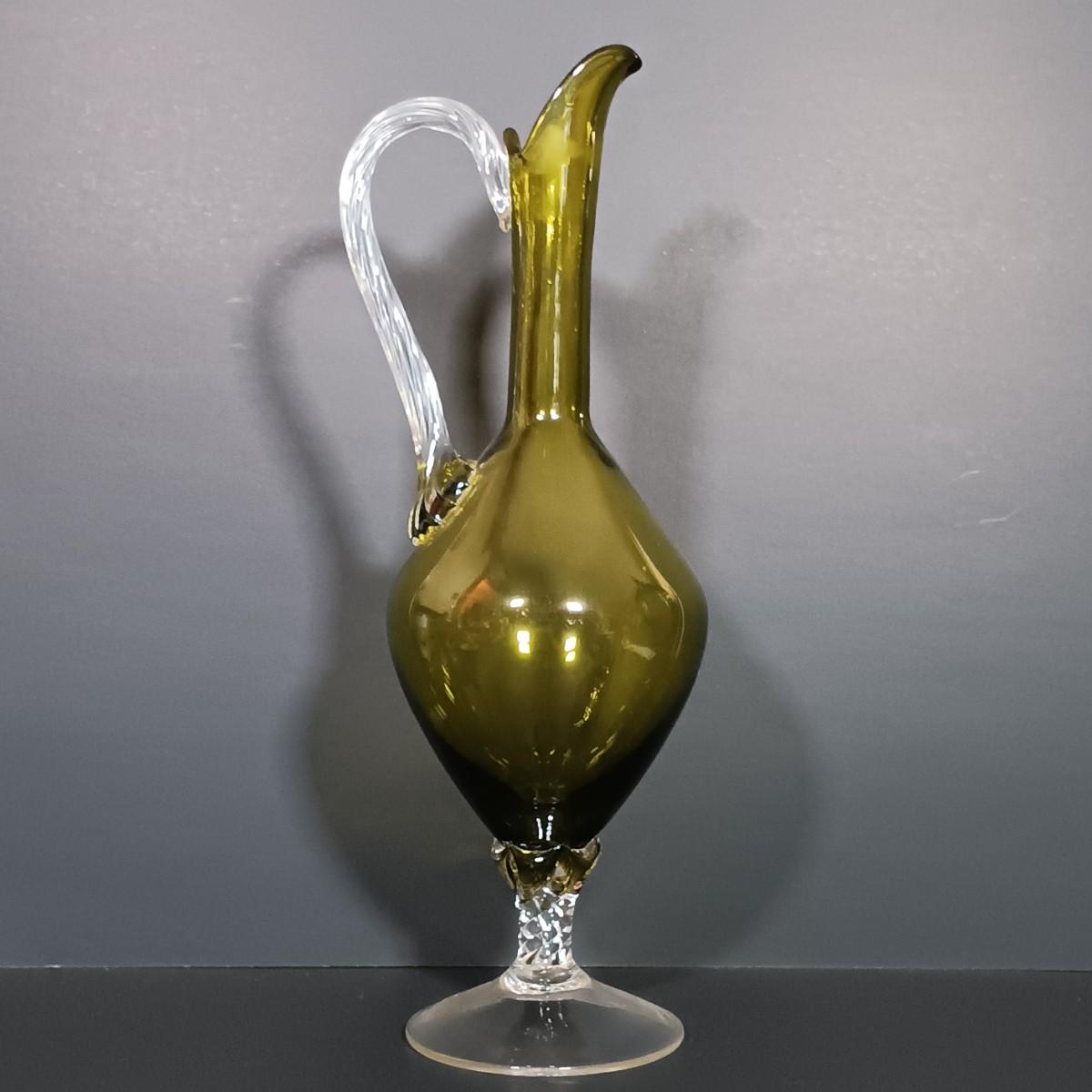 LOT 18: MCM Green Glass Decanter with Cordial Glasses